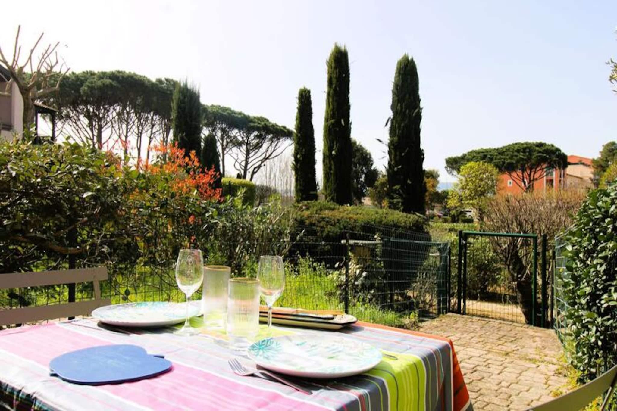Denne charmerende lejlighed i stueetagen er ideel til op til 4 gæster, og tilbyder et hyggeligt soveværelse med loftsventilator og myggenet, en kabine med en dobbelt sovesofa og et separat badeværelse og toilet. Lejligheden har en stor terrasse, perfekt til spisning under åben himmel, og er beliggende i en bolig med direkte adgang til stranden. Det er en fantastisk mulighed for familier eller venner, der leder efter en afslappende ferie ved havet. Ejendommen inkluderer også et depositum, turistskat og valgfri leje af sengetøj for ekstra komfort. Placeringen af ??denne lejlighed giver nem adgang til en række nærliggende attraktioner. Kun 150 meter fra stranden kan gæsterne nyde sandet og havet, mens restauranter kun ligger 200 meter derfra. For dem, der ønsker at udforske yderligere, ligger den pulserende by St-Tropez kun 6 kilometer væk, og den byder på masser af butikker, caféer og underholdningsmuligheder. Selve boligen har en fantastisk 650 m² lagune-swimmingpool, åben fra maj til oktober, samt to tennisbaner til gæsternes nydelse. Inde i lejligheden finder du et fuldt udstyret køkken med opvaskemaskine, mikroovn og induktionskomfur, så du kan tilberede dine egne måltider. Andre faciliteter omfatter fladskærms-tv, vaskemaskine, strygejern og strygebræt, hårtørrer og en Nespresso-kaffemaskine for ekstra bekvemmelighed. Lejligheden har også loftsventilatorer i stuen og soveværelset for optimal komfort. Der medfølger en pladsanvist parkeringsplads.