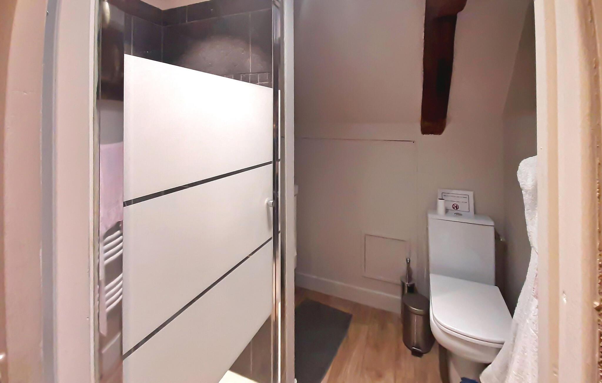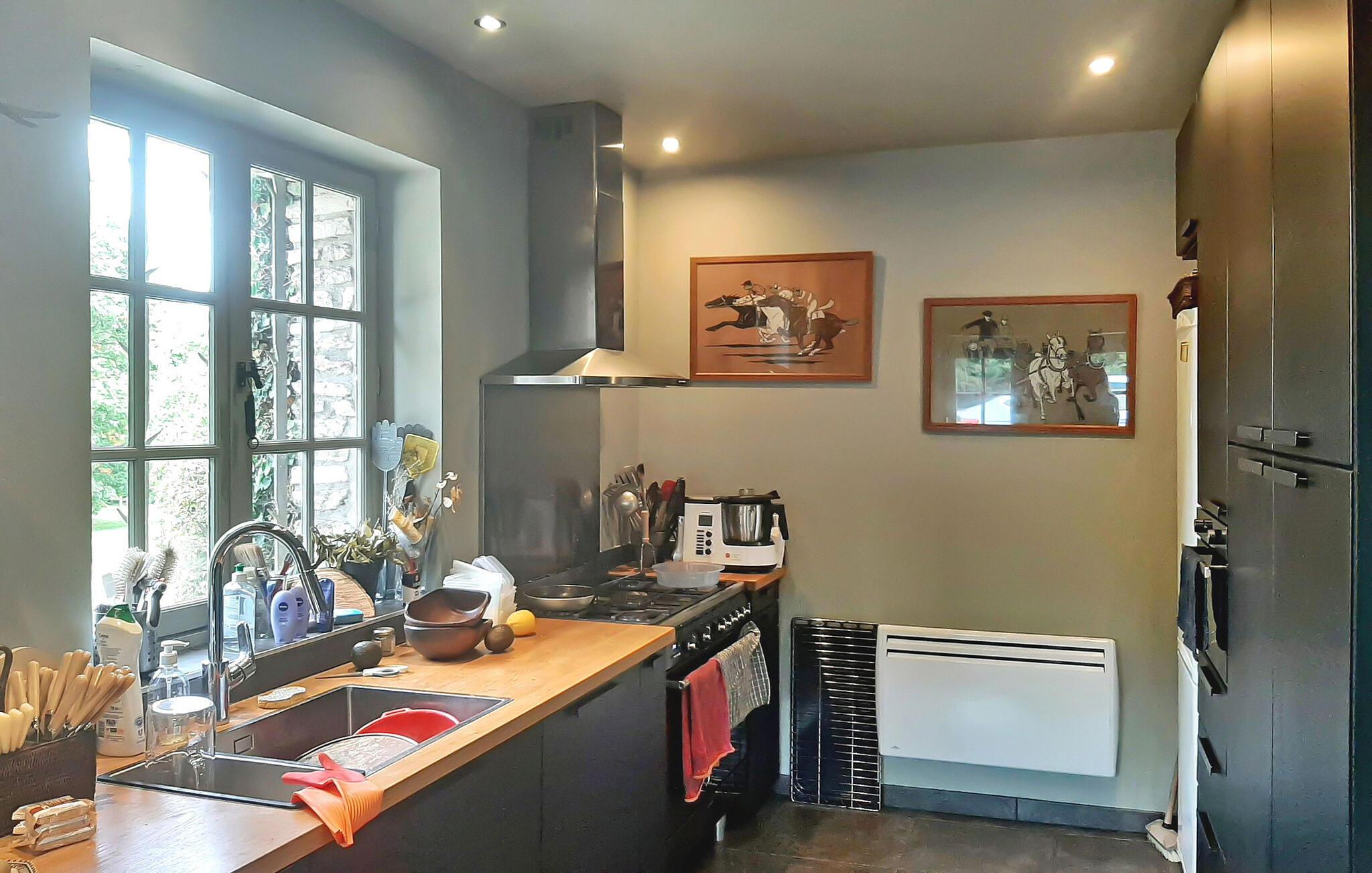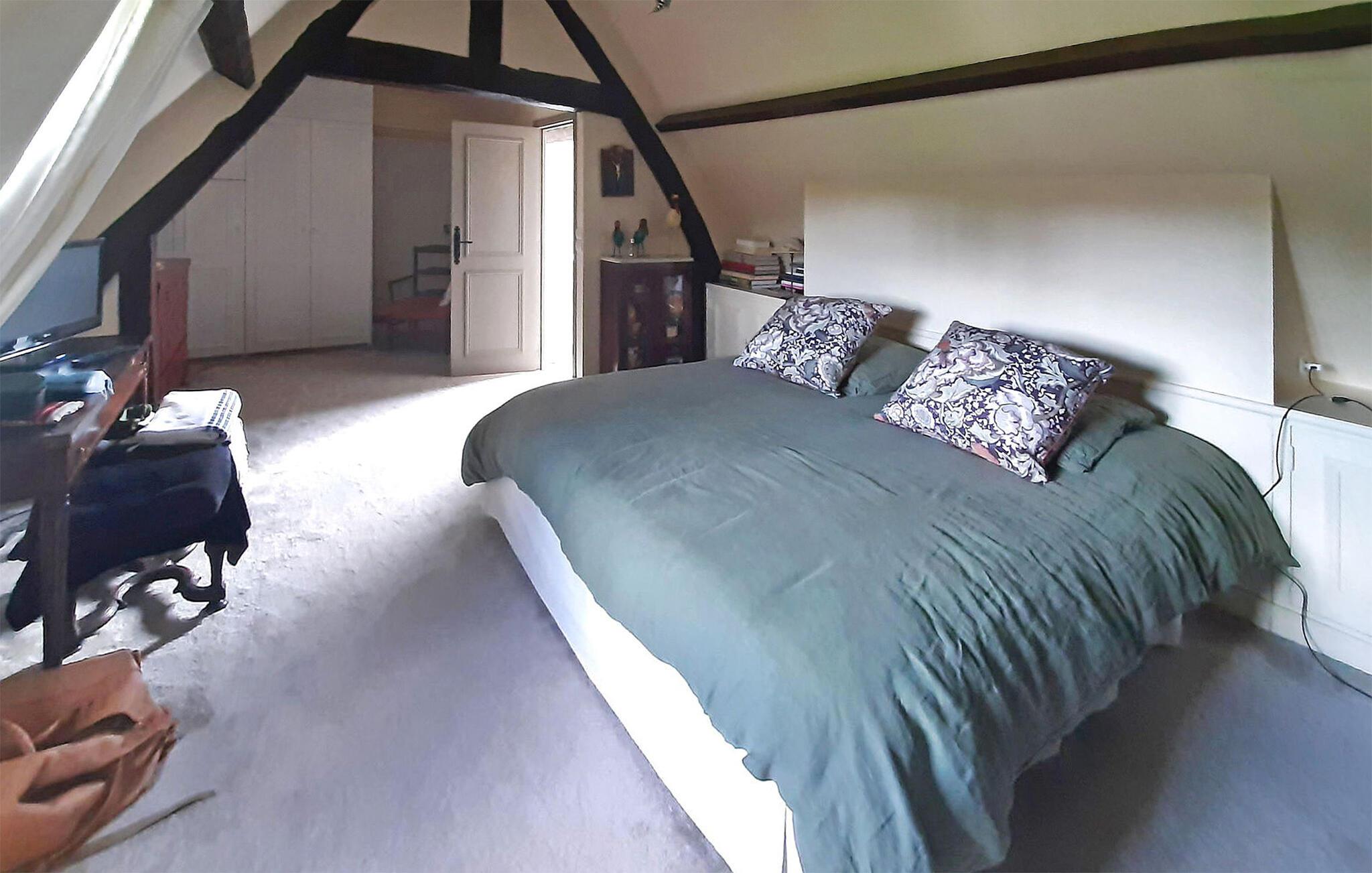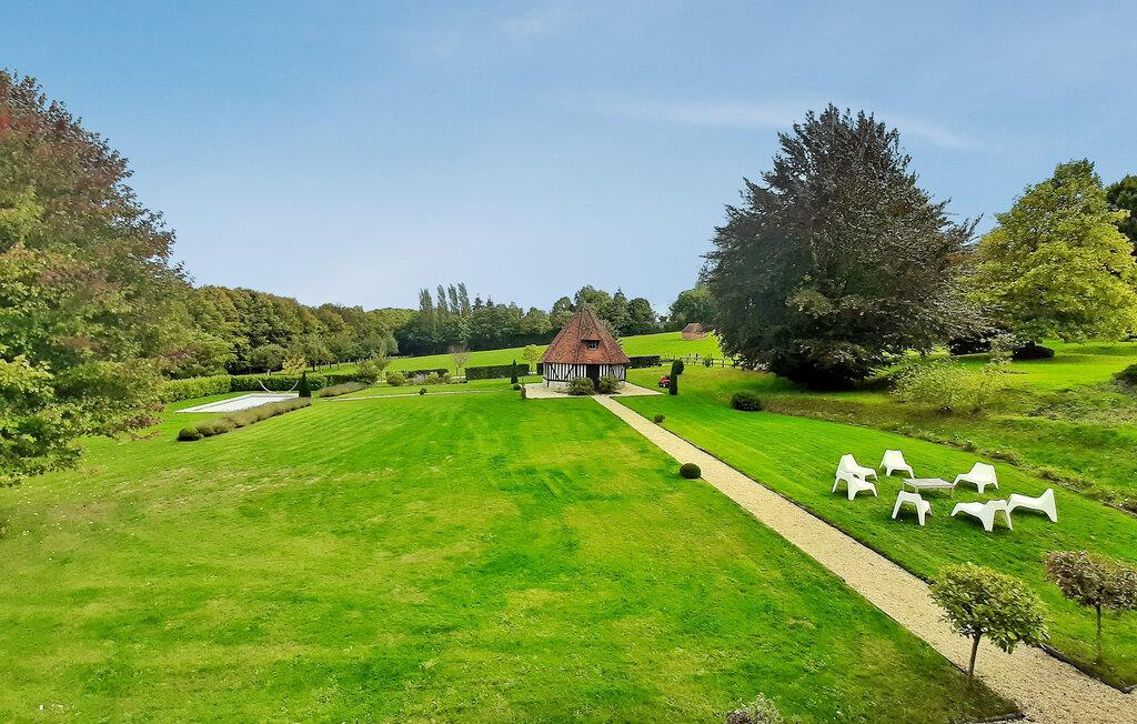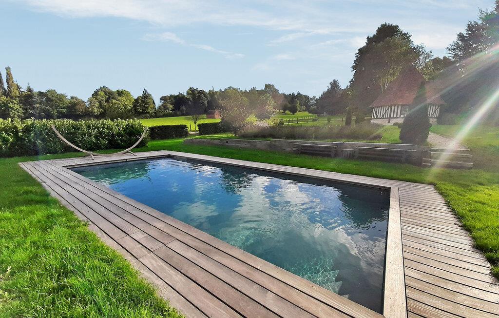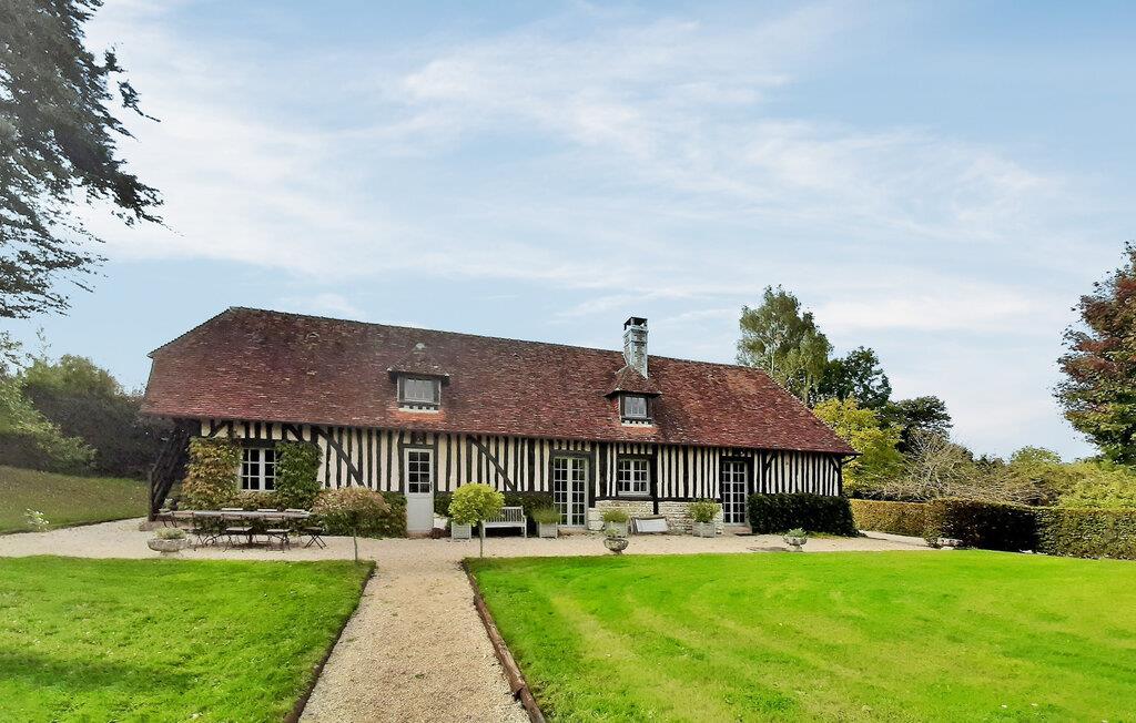 Denne bondegård fra det 18. århundrede i hjertet af Pays d'Auge i Basse-Normandiet gennemgik en komplet renovering i 2018. Sidder på en rummelig grund. Ejendommen har en privat opvarmet swimmingpool. I stueetagen består den af en entré, et soveværelse med et tilstødende brusebad, en stue, en spisestue og et fuldt udstyret køkken. Ovenpå byder den på et hovedsoveværelse med eget badeværelse, to tilstødende soveværelser, to bruserum og et ekstra soveværelse. Udenfor er der en terrasse med siddepladser, havemøbler, en opvarmet swimmingpool og et bordtennisbord. Bemærk, at selvom huset har fem soveværelser med dobbeltsenge, anbefales det til højst otte gæster for komfort. Derudover har gæsterne mulighed for at bruge en tilstødende tennisbane, afhængigt af tilgængelighed og specifikke betingelser på stedet. Stuehuset ligger på landet, midt på markerne. De nærmeste butikker ligger i Lisieux omkring 5 km væk.
