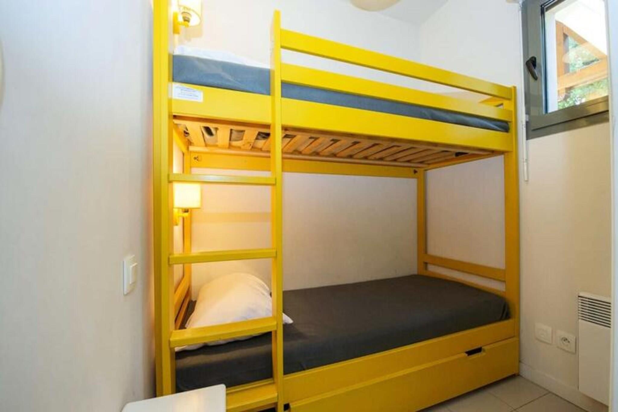 Résidence Goélia du Parc*** byder dig velkommen til hjertet af en 2,5 hektar stor skovklædt og grøn park. Mellem hav og landskab, bo i en af ??de 8 små bygninger med klassisk arkitektur. Alle lejligheder har udsigt over parken. Alle butikker og supermarkeder i nærheden af ??Honfleur. På stedet finder du en opvarmet udendørs swimmingpool, en petanquebane samt en lille legeplads. Du vil drage fordel af gratis lukket udendørs parkering (én plads pr. overnatning), et lukket cykelrum, bagageopbevaring og et morgenmadslokale (ekstra gebyr, der skal reserveres dagen før). Kun 5,5 km fra Honfleur, i hjertet af Calvados og Côté Fleurie, vil Gonneville-sur-Honfleur give dig hurtig adgang til havnen og strandene i Honfleur. Pays d'Auge vil glæde dig med sin gastronomi, sine mange museer (især Caen-mindesmærket) og regionens historiske arv, uden at glemme feriestederne i Côte Fleurie (Deauville, Trouville, Cabourg) deres kasinoer og væddeløbsbaner. Stue med udtrækssovesofa (2 sovepladser) Køkkenområde Kahyt med 2 enkelt køjesenge Brusebad, toilet Altan Bemærk venligst: højsengen er ikke egnet til børn under 6 år. Wifi-adgang - i receptionen (i receptionens åbningstid), adgang begrænset til 30 minutter/dag/voksen. Eller: 6€ per dag / 12€ 3 dage / 22€ uge / 35€ 2 uger / 33€ familietilbud 1 uge (3 enheder) / 42€ 2 ugers familietilbud Kæledyr tilladt - EURO10,50/nat, EURO49/uge. Bemærk venligst ved tilmelding (anti-rabies certifikat påkrævet). Angrebshunde (pitbull) og 2. kat. (vagt/forsvar) er forbudt. 1 dyr pr overnatning Depositum (ekstra) - 250 Slutrengøringspakke - mellem 60€ og 109€ afhængig af boligtype (ekskl. tekøkken) Babykit - seng / stol / bad: 5 EURO/ophold (angives ved reservation) Sengelinned - 12,50 EURO/seng/uge. Betales på stedet Håndklæder - 10EURO/sæt/uge (1 stort håndklæde, 1 lille håndklæde). Betales på stedet Parkering - Udendørs parkering, afhængig af tilgængelighed. At forudbestille Morgenmad - EURO13/voksen/dag og EURO7,50/barn/dag (fra 6 til 12 år) for at forudbestille Swimmingpool - opvarmet udendørs med svømmebane og børnebassin fra 04/06 til 09/21 afhængig af vejret Sauna - pris på stedet Turistskat (ekstra gebyr) - betales på stedet i henhold til gældende takster Fjernsyn - i alle boliger