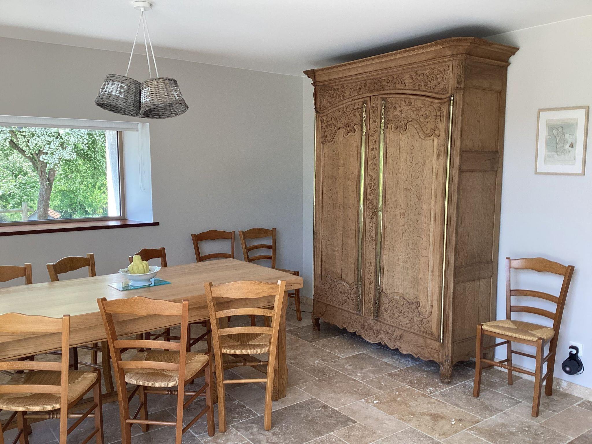 Surrounded by greenery, La Maison de Léontine is an address remarkable for its comfort and the quality of its materials. Everything has been carefully thought out for your relaxation and your holidays. You can enjoy your meals outside, with a choice of the XXL picnic table or the covered courtyard. In terms of leisure activities, the children can let off steam on the trampoline and enjoy a lively game of football on the lovely green space available. The gîte is also a great place to relax, with spacious bedrooms and a net hanging over the living room, the perfect place for a nap or a spot of reading! The gîte is the starting point for a number of beautiful walks and mountain bike trails, offering stunning views over the Normandy bocage and the Vire valley.