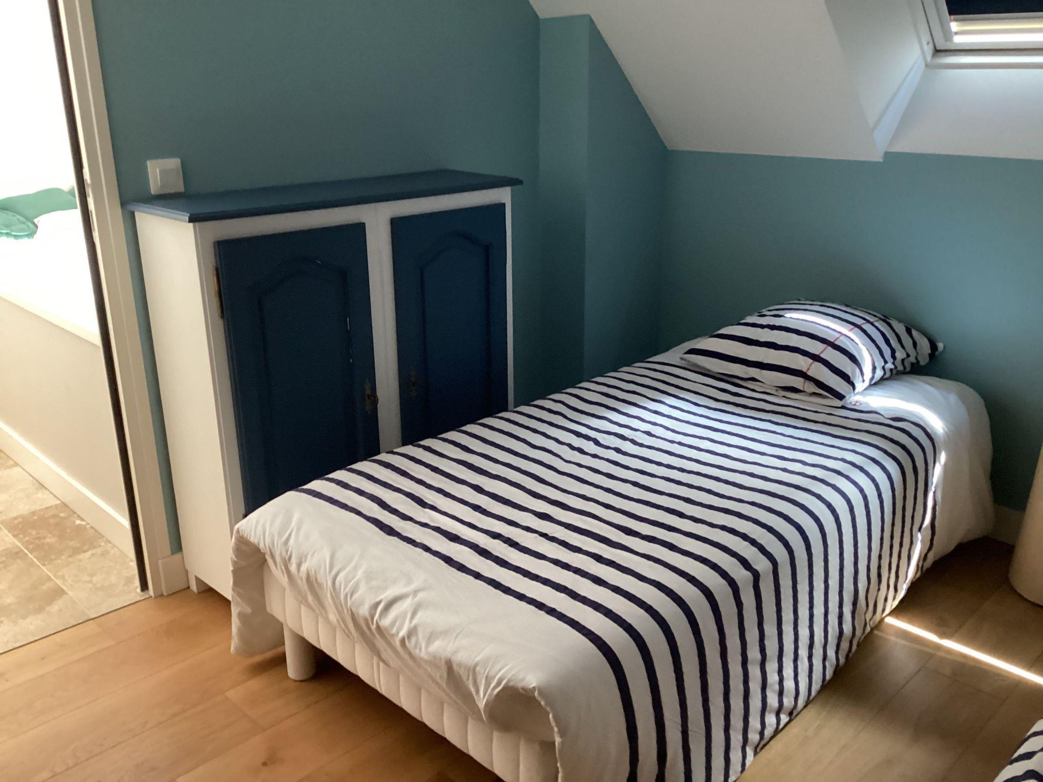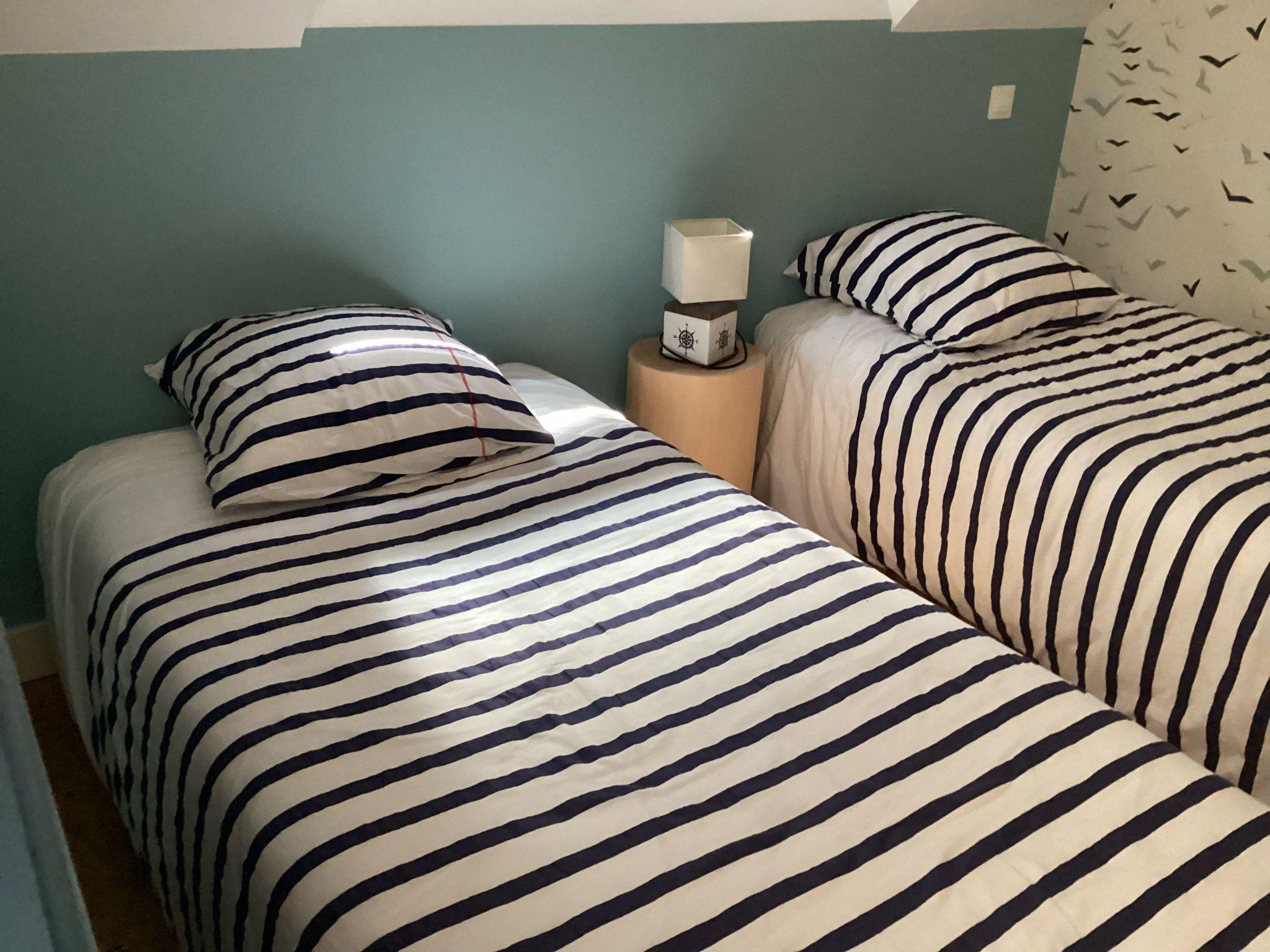Detached house. Entrance hall. Shower room. WC. Bedroom 1 (bed 140x190). Living room with open-plan kitchen (central island, oven, fridge with freezer, dishwasher, microwave). Sitting room (TV, fibre internet, connected speaker). Upstairs (stairs from kitchen) bedroom 2 (bed 140x190), bedroom 3 (bed 140x190 + 2 beds 90x190), bathroom with shower and wc. Upstairs (stairs from living room) bedroom 4 (bed 140x190) and shower room with wc. Baby facilities. Central heating included. Bed linen provided. Towels not provided. Cleaning service extra. Unenclosed private grounds. Terrace. Picnic table. Awning with garden furniture. Barbecue. Deckchairs. Trampoline. Petanque pitch. Football goals for children. Laundry room (washing machine, tumble dryer). Car park.