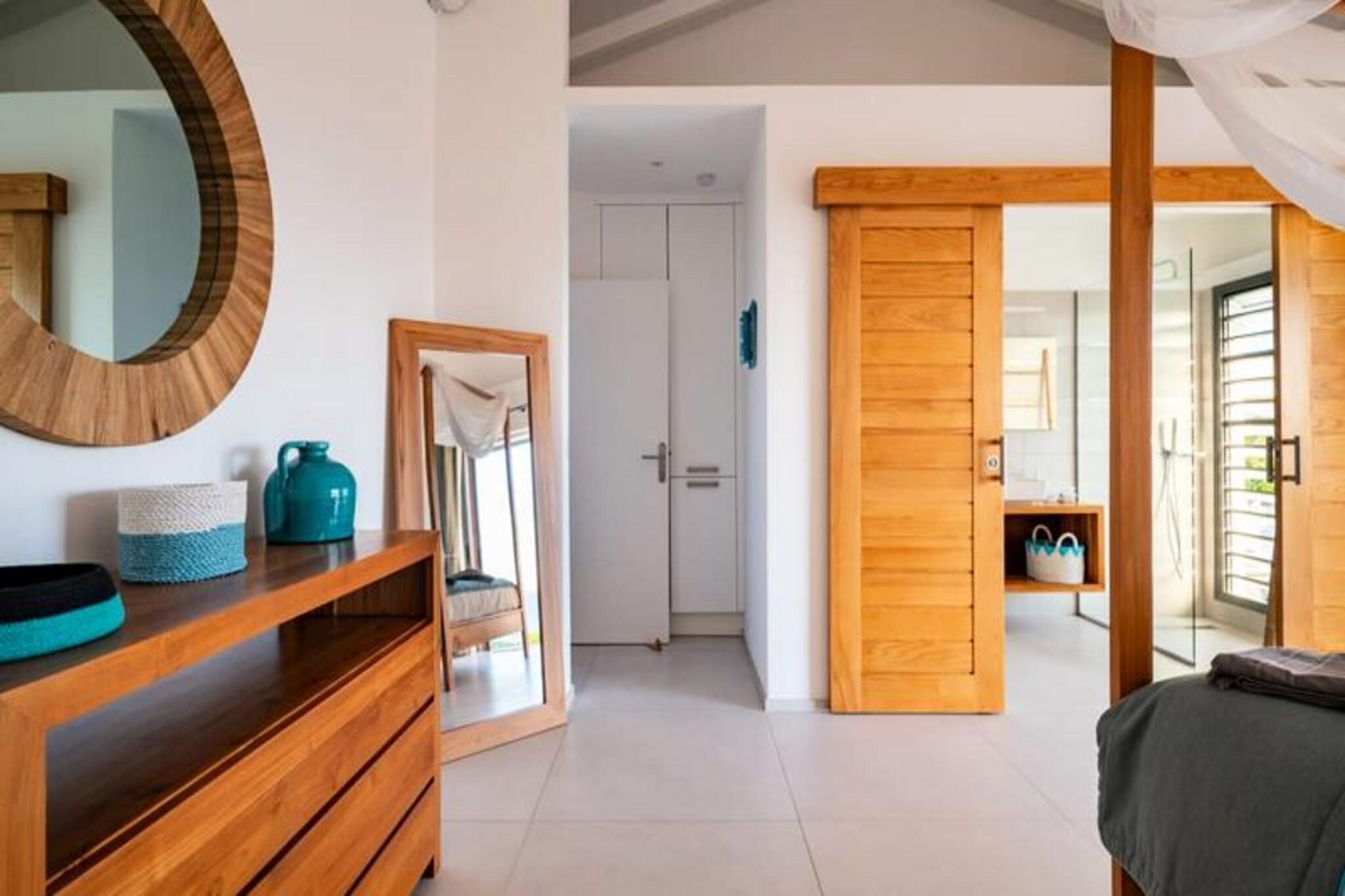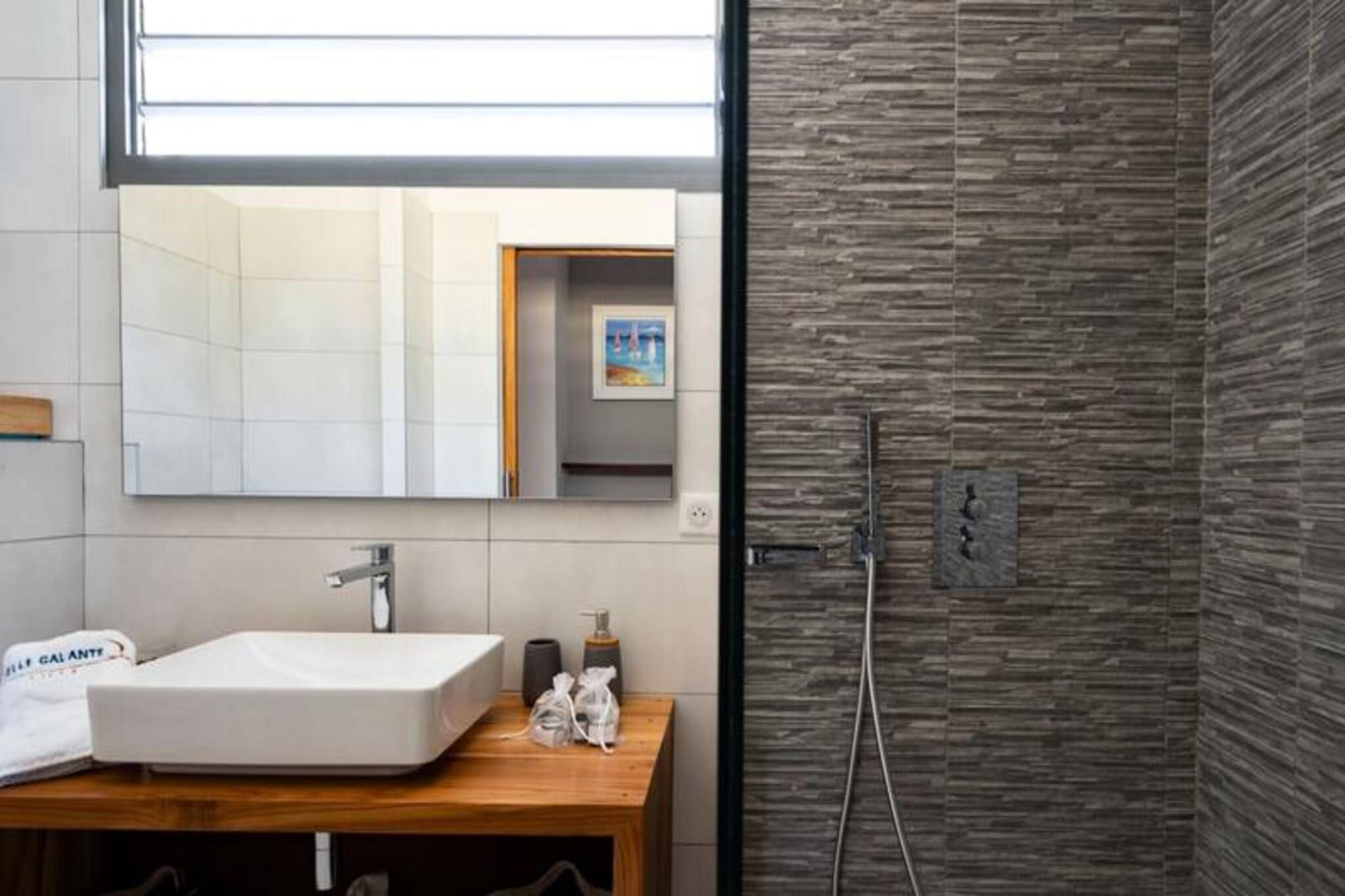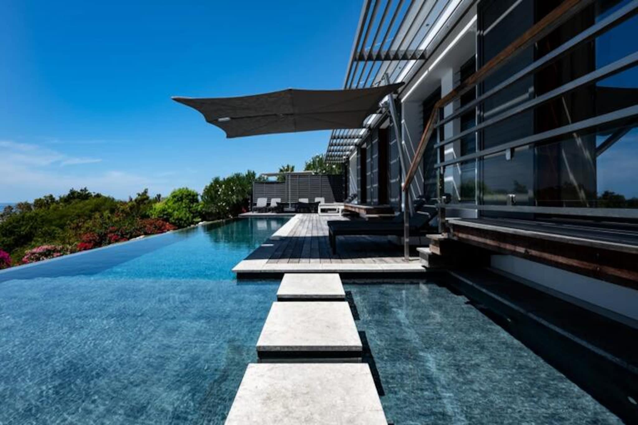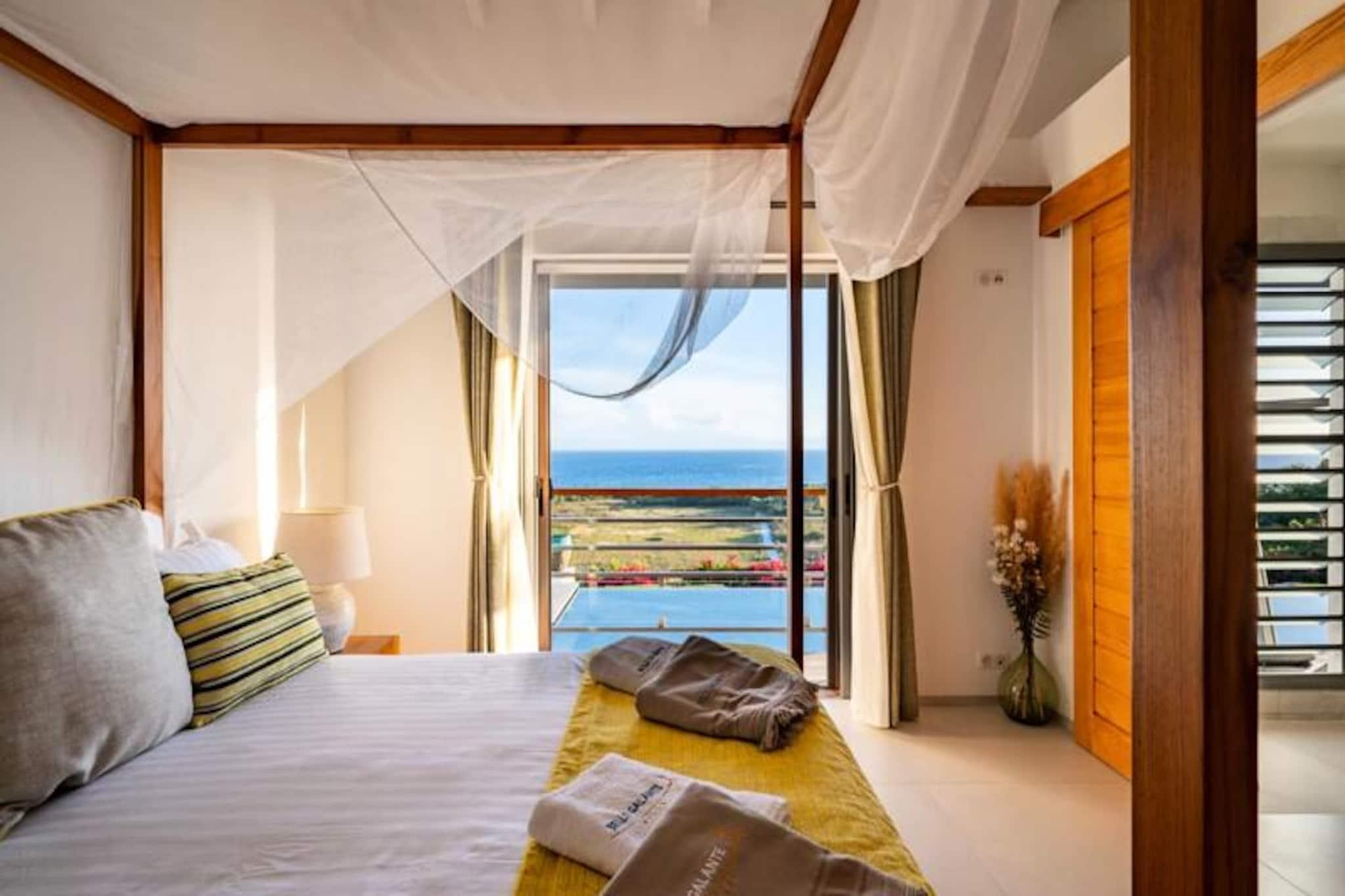 Beliggende på de fredfyldte højder i Les Basses, er Villa Belle Galante et fristed for moderne luksus og caribisk charme. Med sin betagende panoramaudsigt over det turkisblå hav og en infinity-pool, der synes at smelte sammen med horisonten, inviterer denne villa dig til at slappe af i absolut ro. De blide passatvinde og frodige omgivelser skaber en perfekt kulisse for din drømmeferie. Denne moderne villa strækker sig over imponerende 246 m² og har plads til op til 11 gæster fordelt på fem smukt designede soveværelser, der hver har eget badeværelse med bruseniche. Fire af soveværelserne er udstyret med 160 cm senge, mens det femte tilbyder en 140 cm seng og en ekstra 90 cm seng, hvilket gør den ideel til familier eller vennegrupper. Det fuldt udstyrede køkken med sin centrale køkkenø flyder problemfrit over i spiseområdet på den overdækkede terrasse, hvor op til tolv gæster kan nyde måltider, mens de kigger ud over Det Caribiske Hav. Villaens træmøbler og moderne arkitektur tilføjer et strejf af elegance til den indbydende atmosfære. Villaen ligger kun fem minutter fra den charmerende by Grand-Bourg og tilbyder nem adgang til supermarkeder, livlige markeder og dejlige kreolske restauranter. De nærliggende strande Anse Canot og La Feuillère er et must-see, uanset om du ønsker at svømme i krystalklart vand eller prøve kræfter med kitesurfing. For dem, der søger eventyr, kan du udforske lokale romdestillerier, vandre gennem sukkerrørsmarker eller deltage i strandkoncerter under stjernerne. Med sin blanding af komfort, stil og nærhed til det bedste af Marie-Galante lover Villa Belle Galante en uforglemmelig caribisk flugt. Uanset om du slapper af ved infinity-poolen, nyder solnedgange på terrassen eller opdager øens skatte, er denne villa din port til paradis.