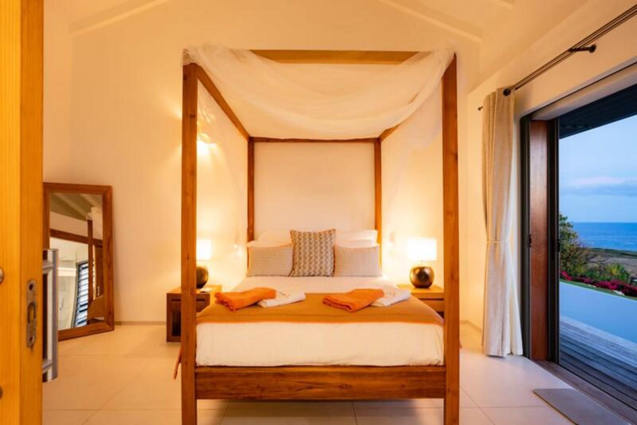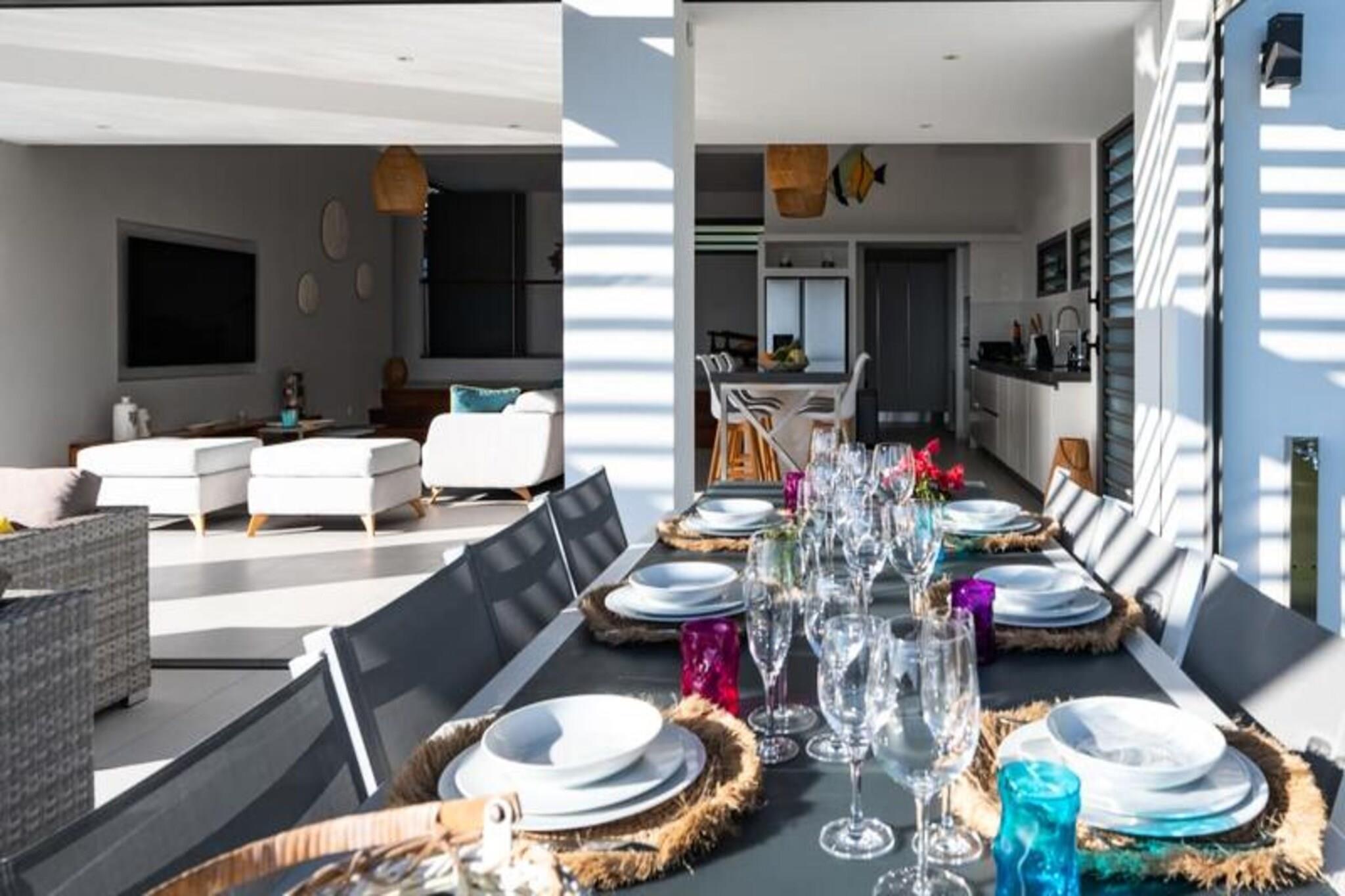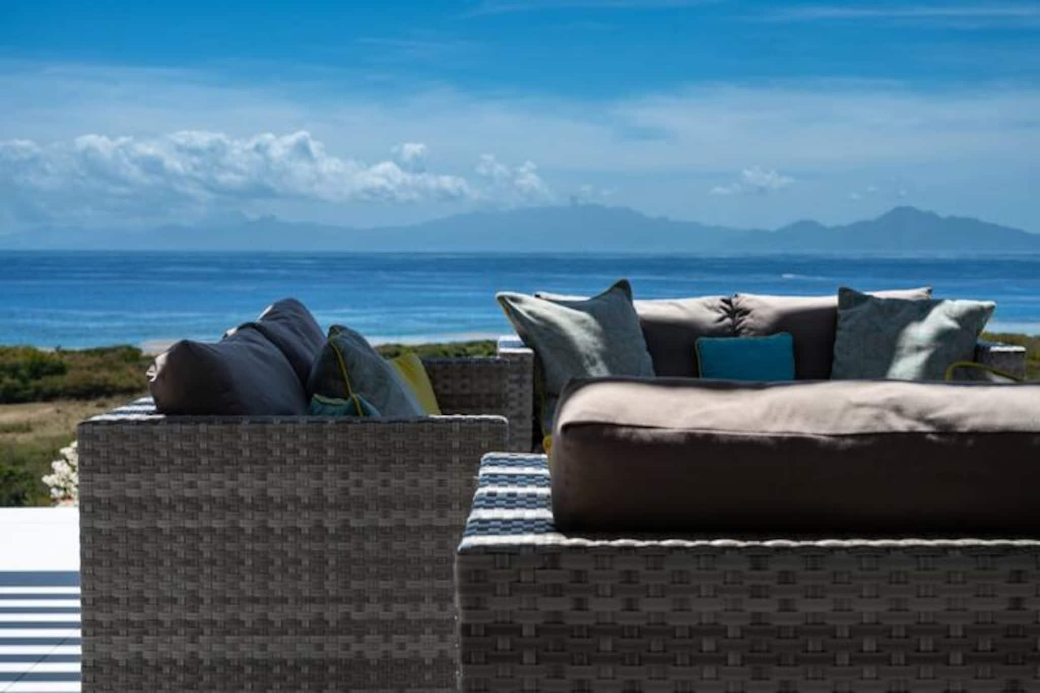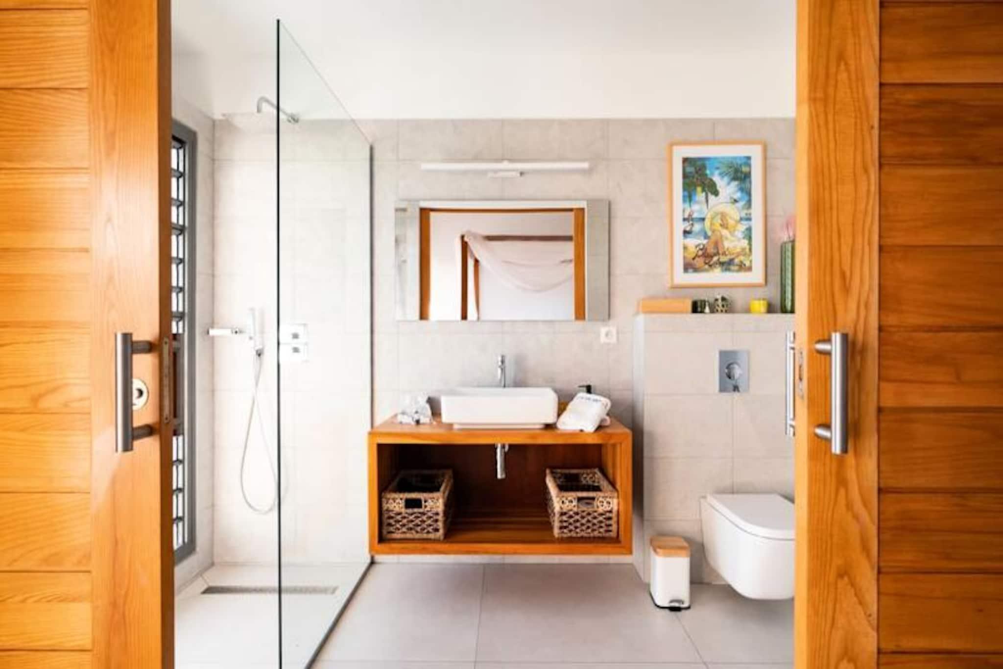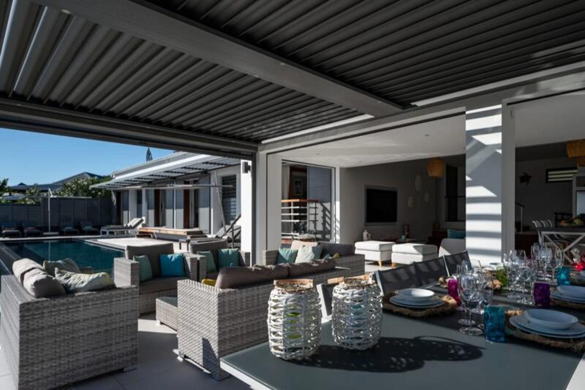 Beliggende på de fredfyldte højder i Les Basses, er Villa Belle Galante et fristed for moderne luksus og caribisk charme. Med sin betagende panoramaudsigt over det turkisblå hav og en infinity-pool, der synes at smelte sammen med horisonten, inviterer denne villa dig til at slappe af i absolut ro. De blide passatvinde og frodige omgivelser skaber en perfekt kulisse for din drømmeferie. Denne moderne villa strækker sig over imponerende 246 m² og har plads til op til 11 gæster fordelt på fem smukt designede soveværelser, der hver har eget badeværelse med bruseniche. Fire af soveværelserne er udstyret med 160 cm senge, mens det femte tilbyder en 140 cm seng og en ekstra 90 cm seng, hvilket gør den ideel til familier eller vennegrupper. Det fuldt udstyrede køkken med sin centrale køkkenø flyder problemfrit over i spiseområdet på den overdækkede terrasse, hvor op til tolv gæster kan nyde måltider, mens de kigger ud over Det Caribiske Hav. Villaens træmøbler og moderne arkitektur tilføjer et strejf af elegance til den indbydende atmosfære. Villaen ligger kun fem minutter fra den charmerende by Grand-Bourg og tilbyder nem adgang til supermarkeder, livlige markeder og dejlige kreolske restauranter. De nærliggende strande Anse Canot og La Feuillère er et must-see, uanset om du ønsker at svømme i krystalklart vand eller prøve kræfter med kitesurfing. For dem, der søger eventyr, kan du udforske lokale romdestillerier, vandre gennem sukkerrørsmarker eller deltage i strandkoncerter under stjernerne. Med sin blanding af komfort, stil og nærhed til det bedste af Marie-Galante lover Villa Belle Galante en uforglemmelig caribisk flugt. Uanset om du slapper af ved infinity-poolen, nyder solnedgange på terrassen eller opdager øens skatte, er denne villa din port til paradis.
