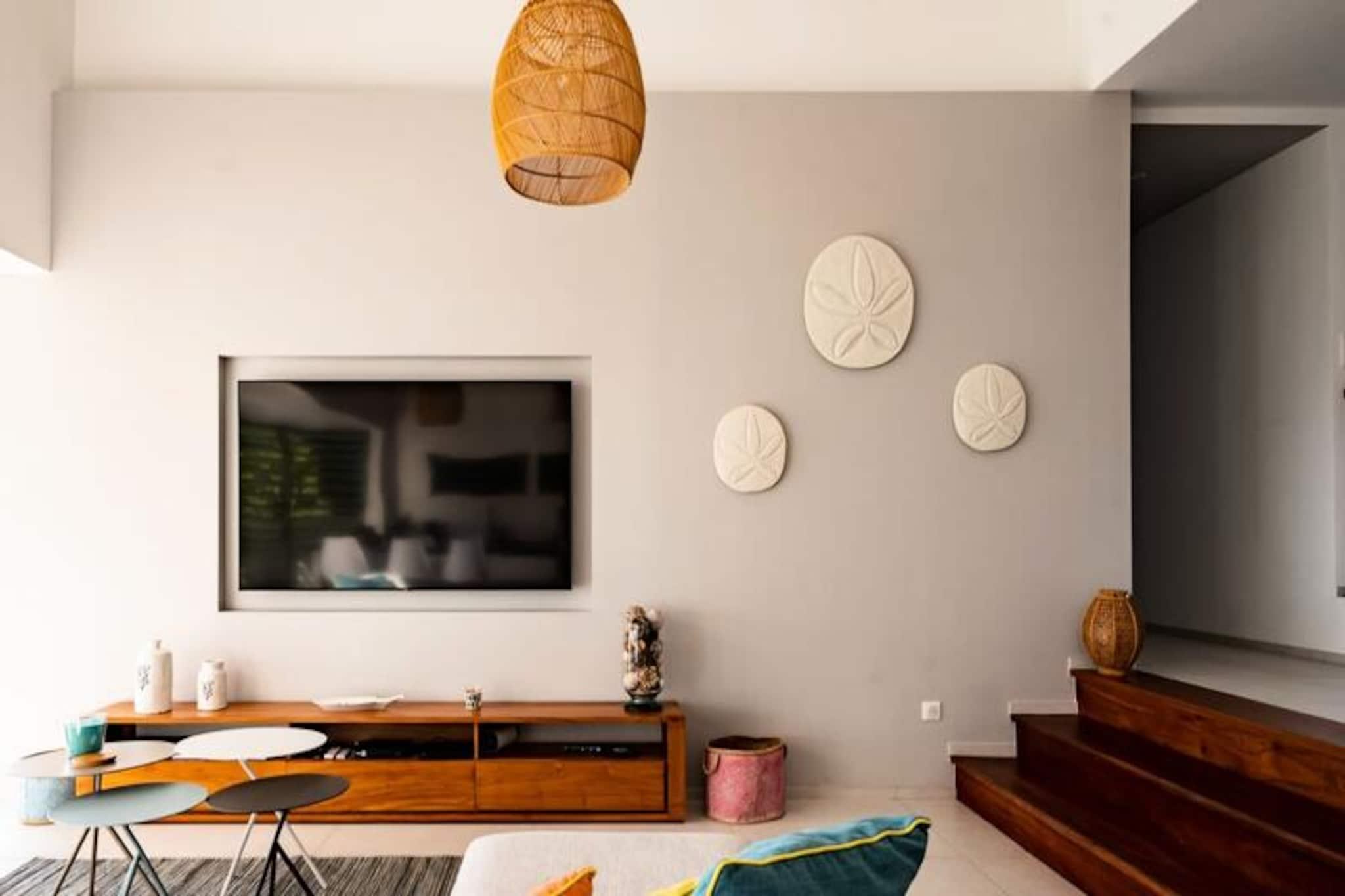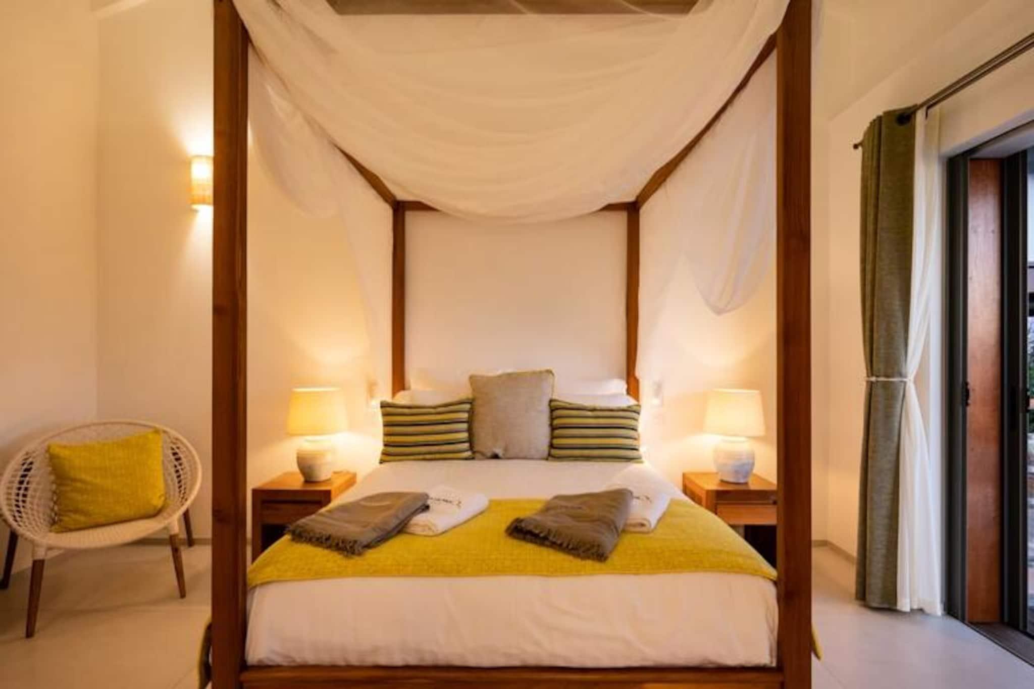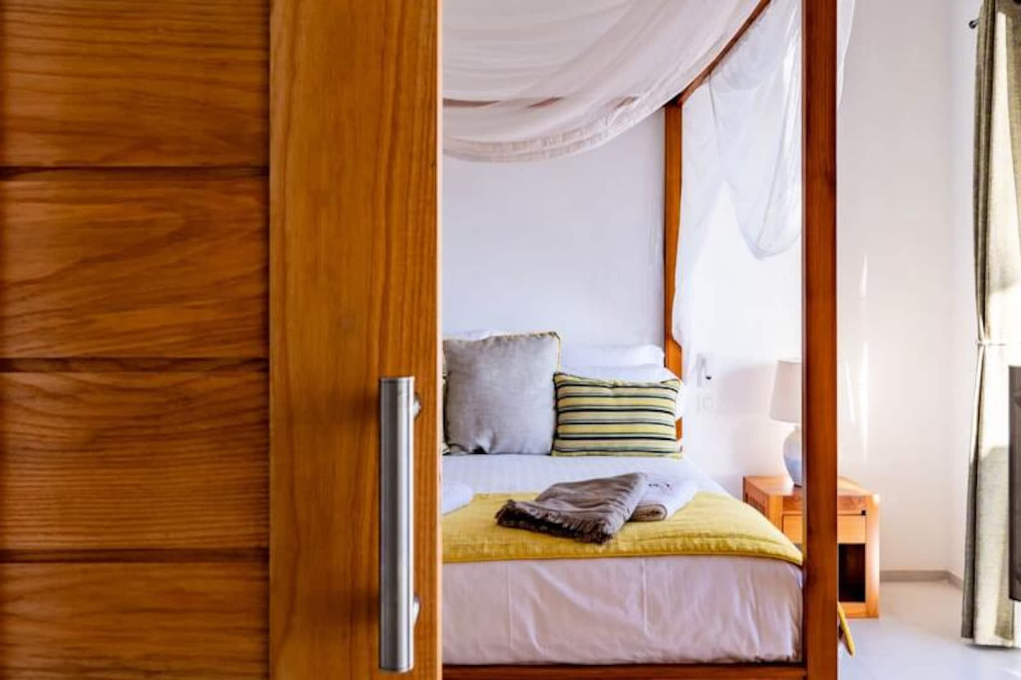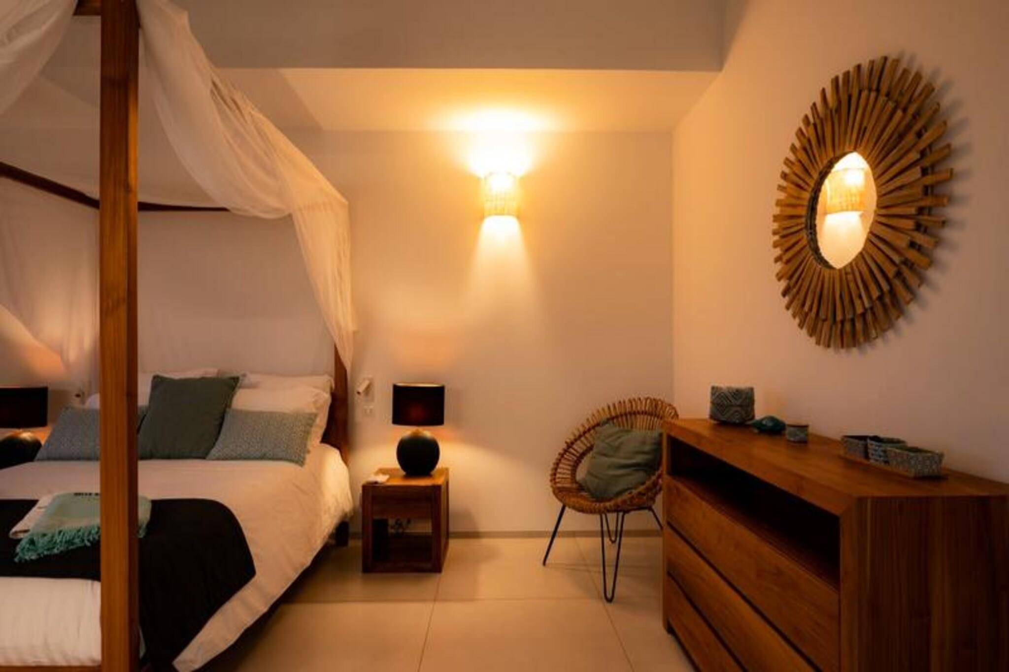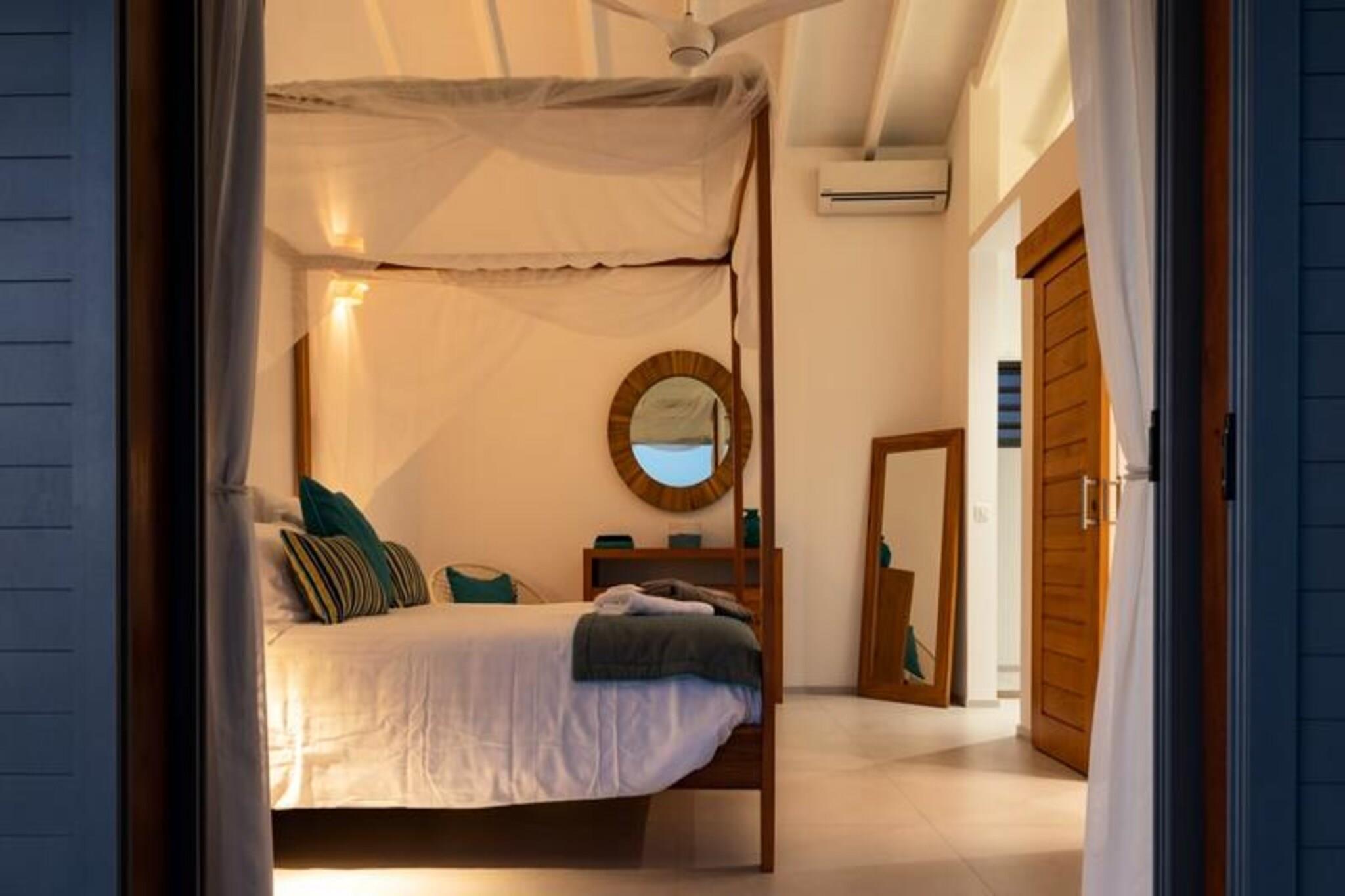 Beliggende på de fredfyldte højder i Les Basses, er Villa Belle Galante et fristed for moderne luksus og caribisk charme. Med sin betagende panoramaudsigt over det turkisblå hav og en infinity-pool, der synes at smelte sammen med horisonten, inviterer denne villa dig til at slappe af i absolut ro. De blide passatvinde og frodige omgivelser skaber en perfekt kulisse for din drømmeferie. Denne moderne villa strækker sig over imponerende 246 m² og har plads til op til 11 gæster fordelt på fem smukt designede soveværelser, der hver har eget badeværelse med bruseniche. Fire af soveværelserne er udstyret med 160 cm senge, mens det femte tilbyder en 140 cm seng og en ekstra 90 cm seng, hvilket gør den ideel til familier eller vennegrupper. Det fuldt udstyrede køkken med sin centrale køkkenø flyder problemfrit over i spiseområdet på den overdækkede terrasse, hvor op til tolv gæster kan nyde måltider, mens de kigger ud over Det Caribiske Hav. Villaens træmøbler og moderne arkitektur tilføjer et strejf af elegance til den indbydende atmosfære. Villaen ligger kun fem minutter fra den charmerende by Grand-Bourg og tilbyder nem adgang til supermarkeder, livlige markeder og dejlige kreolske restauranter. De nærliggende strande Anse Canot og La Feuillère er et must-see, uanset om du ønsker at svømme i krystalklart vand eller prøve kræfter med kitesurfing. For dem, der søger eventyr, kan du udforske lokale romdestillerier, vandre gennem sukkerrørsmarker eller deltage i strandkoncerter under stjernerne. Med sin blanding af komfort, stil og nærhed til det bedste af Marie-Galante lover Villa Belle Galante en uforglemmelig caribisk flugt. Uanset om du slapper af ved infinity-poolen, nyder solnedgange på terrassen eller opdager øens skatte, er denne villa din port til paradis.