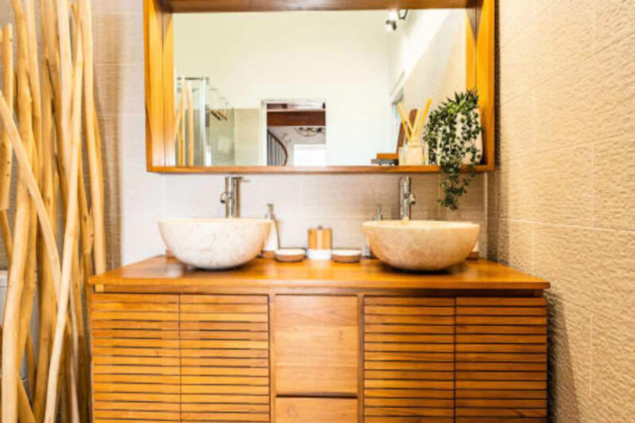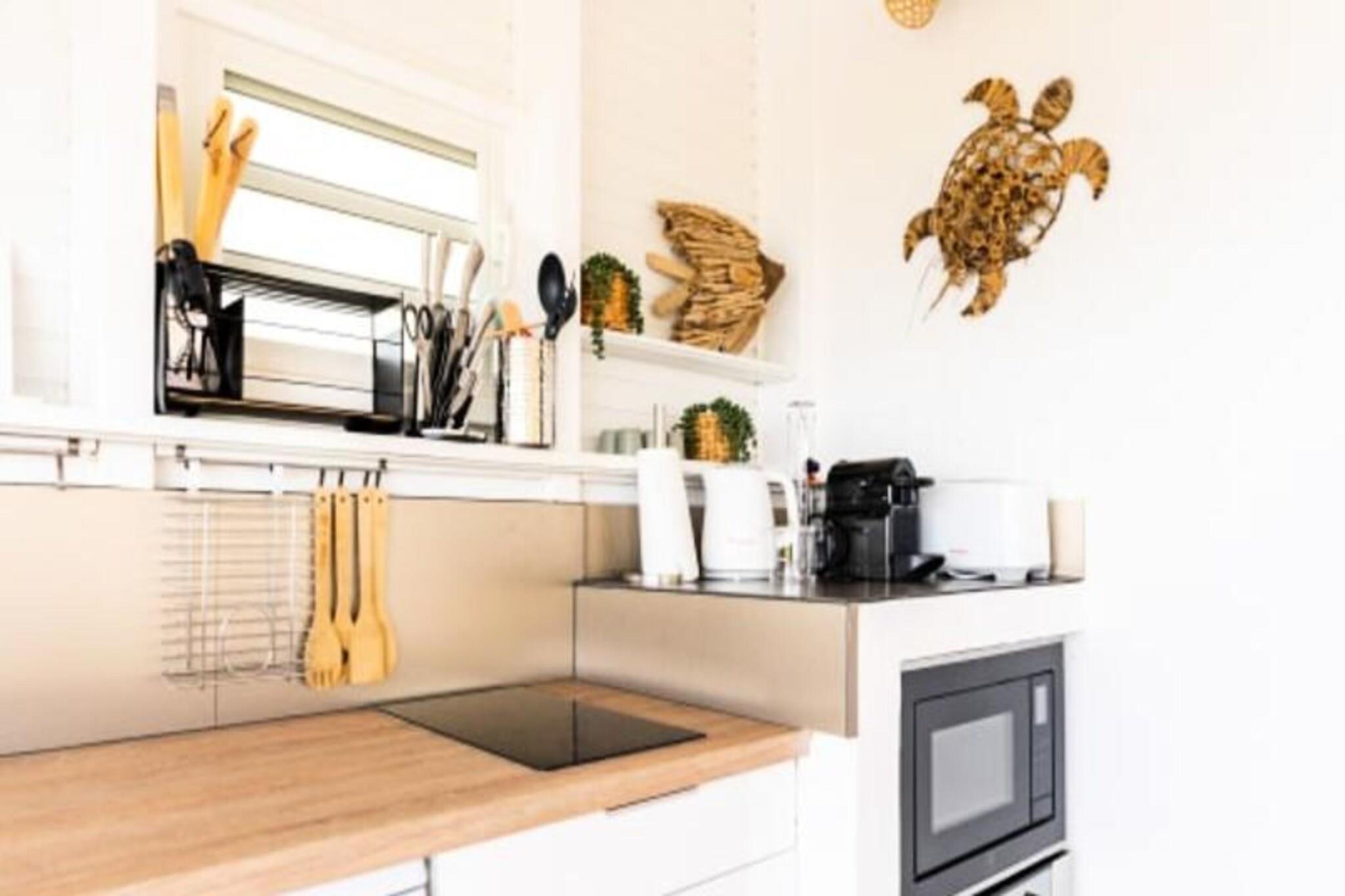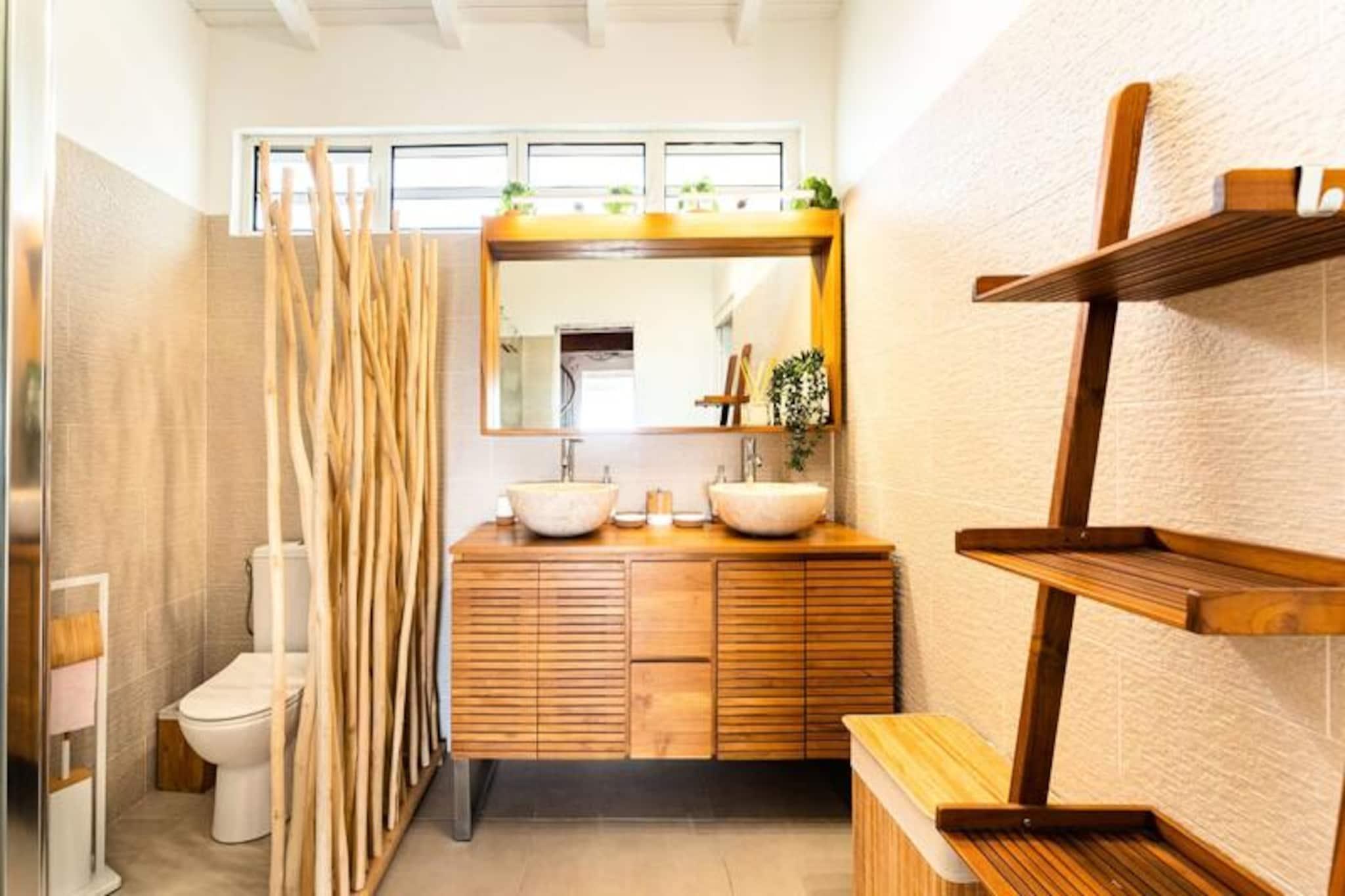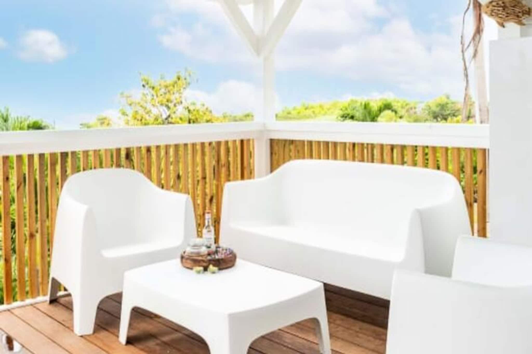 På den fredfyldte ø Marie-Galante, hvor tiden synes at gå langsommere, tilbyder Ti Moca-villaen en rolig oase med betagende udsigt over Les Saintes, Dominica og Guadeloupe. Dette elegante tilflugtssted inviterer dig til at slappe af midt i frodige omgivelser, hvor den blide caribiske brise og lyden af ??bølger sætter tonen for dit ophold. Uanset om du nipper til en morgenkaffe på terrassen eller ser solen synke ned under horisonten, føles hvert øjeblik her som et postkort, der kommer til live. Ti Moca er designet til at rumme op til seks gæster og har tre soveværelser med aircondition, inklusive et charmerende værelse ovenpå, og to veludstyrede badeværelser. Villaens udendørskøkken er et dejligt sted at tilberede måltider, mens spiseområdet er perfekt til at dele latter og lokale delikatesser med dine kære. Den private swimmingpool tilbyder en forfriskende oase, og poolhåndklæder er omhyggeligt udleveret for din bekvemmelighed. Hver detalje, fra villaens luftige layout til dens sengetøj i hotelkvalitet, er blevet kurateret for at sikre maksimal komfort. Ti Moca ligger i Grand-Bourg, kun en kort køretur fra øens mest fantastiske strande, herunder La Feuillère og Anse Canot, hvor turkisblåt vand og blødt sand venter. Den nærliggende landsby tilbyder alle nødvendige faciliteter, fra supermarkeder til kreolske restauranter og pulserende lokale markeder. For naturelskere giver øens vandrestier og sukkerrørsmarker et glimt af dens autentiske charme og naturlige skønhed. Uanset om du søger afslapning, eventyr eller en blanding af begge dele, er Ti Moca den perfekte base for at skabe uforglemmelige minder under den caribiske sol. Kombiner det med den nærliggende Villa Moca for større grupper, og lad øens magi udfolde sig omkring dig.