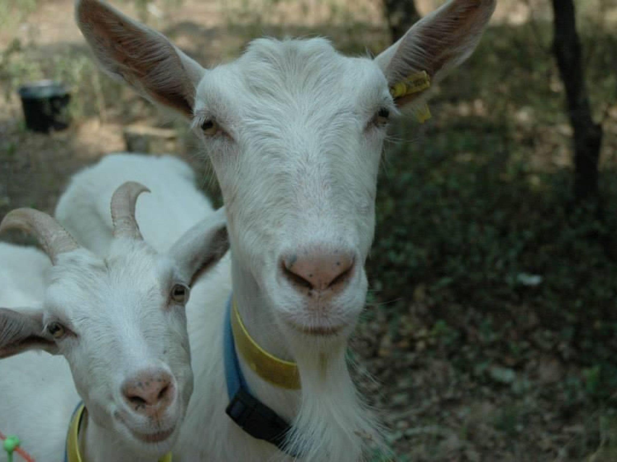farm animals roam freely on the estate: chickens, pigs, dogs, etc.
