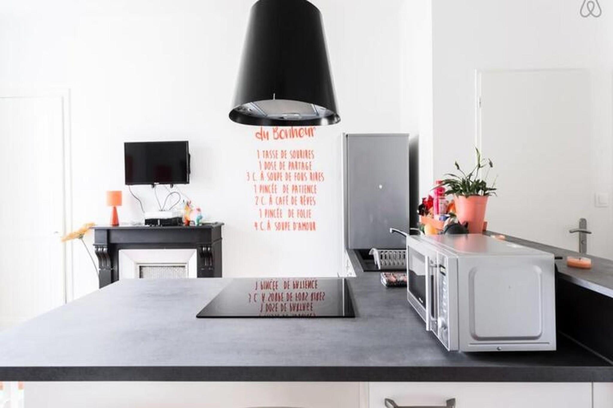 Denne charmerende T2-lejlighed, beliggende på 4. og øverste etage i en bygning uden elevator, tilbyder et behageligt ophold for op til 4 personer. Lejligheden har et soveværelse med dobbeltseng med en dobbeltseng og en sovesofa i stuen, perfekt til at slappe af efter en lang dag. En ventilator er tilgængelig til varme nætter, og sengetøj og håndklæder er til rådighed for din bekvemmelighed. Lejligheden er også kæledyrsvenlig mod et tillægsgebyr og inkluderer gratis trådløs internetadgang og et tv til underholdning. Lejligheden er beliggende i et hyggeligt og velbetjent kvarter. Det lokale daglige marked på Estacade, der tilbyder frisk frugt og grøntsager, ligger kun 3 minutter til fods. Hvis du foretrækker at udforske området, er byens centrum og stationen begge let tilgængelige via en 5-minutters gåtur eller med sporvogn. Du finder forskellige butikker, caféer og restauranter i nærheden, hvilket gør det nemt at nyde det lokale køkken og kultur. Sporvognsstoppestedet Condorcet ligger lige ved bygningens fod og giver hurtig adgang til alle større områder i Grenoble. Indvendigt er lejligheden fuldt udstyret med et køkken med en Dolce Gusto-kaffemaskine (kapsler medfølger ikke), en vaskemaskine og alle de nødvendige apparater. Badeværelset er udstyret med bruser og toilet, hvilket sikrer et behageligt og praktisk ophold. Med sin lyse og indbydende atmosfære giver denne lejlighed alt hvad du behøver for en afslappende og behagelig oplevelse.