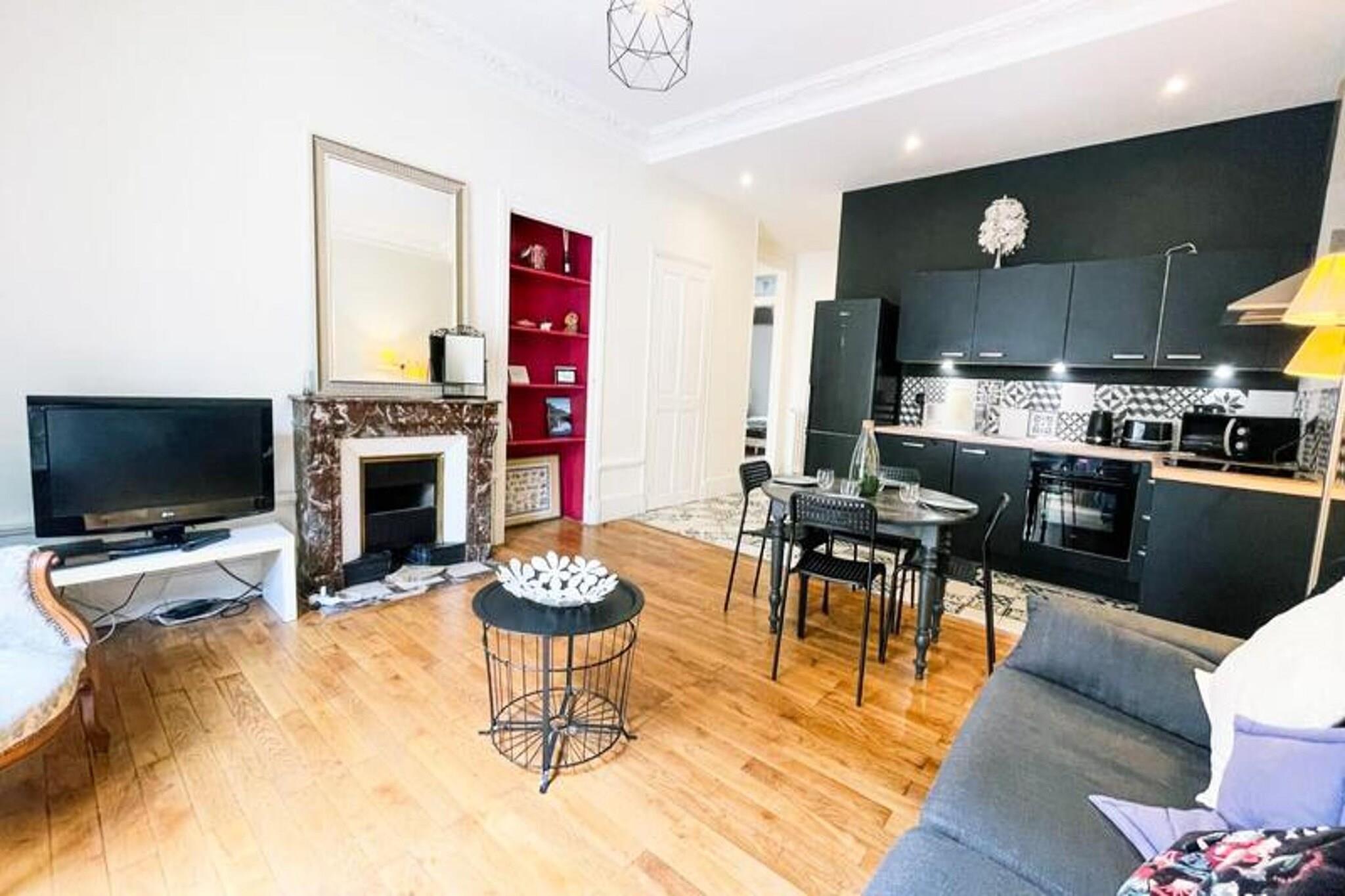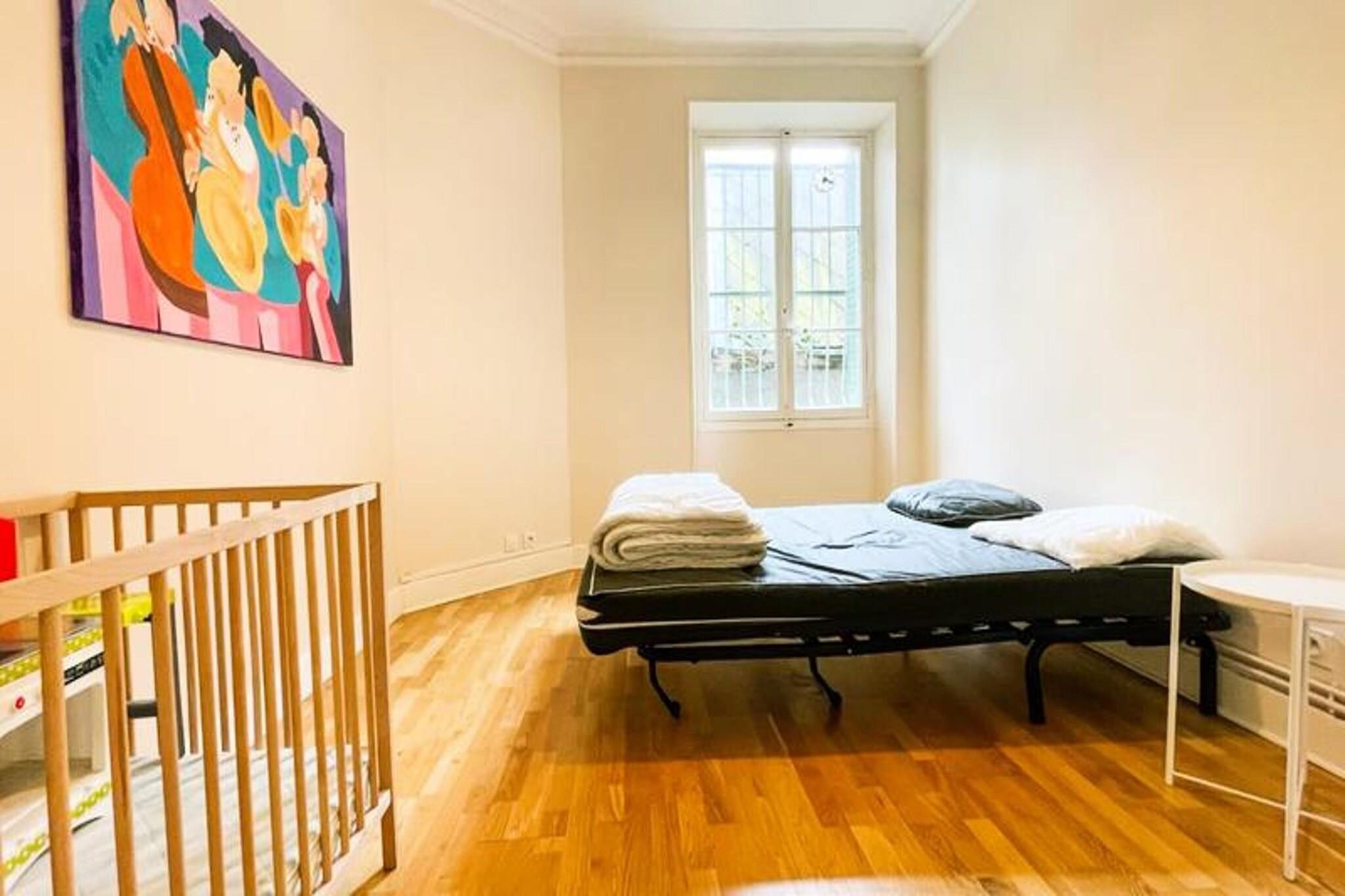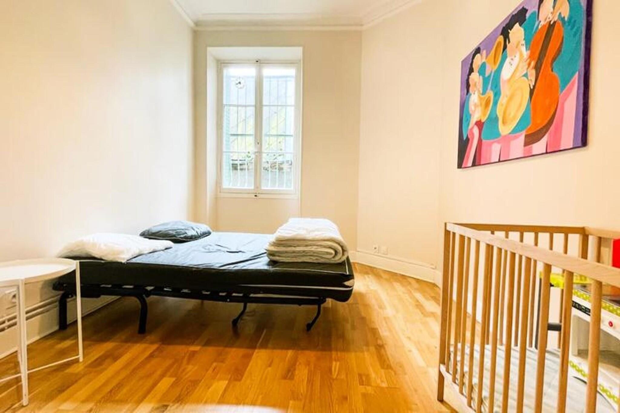 Denne rummelige T4-lejlighed tilbyder et behageligt ophold med tre soveværelser med dobbeltsenge, ideel til op til seks gæster. Lejligheden har en stor stue/spisestue og et fuldt udstyret åbent køkken med moderne apparater, herunder et køleskab/fryser, opvaskemaskine, elkedel, ovn og en Dolce Gusto kaffemaskine. Andre faciliteter inkluderer gratis Wi-Fi, en vaskemaskine, ventilatorer i hvert værelse og masser af lagerplads. Sengetøj og håndklæder til seks gæster leveres ved ankomsten, og kæledyr er velkomne mod et ekstra gebyr. Denne lejlighed ligger i det fredelige hypercenter-kvarter i Grenoble, kun 5 minutters gang fra et supermarked, bageri, apotek og restauranter. Det historiske centrum med dets gågader, butikker og caféer ligger 10 minutters gang derfra. Sporvognsstoppestedet "Gare" er mindre end 3 minutter væk, og tilbyder nem adgang til offentlig transport rundt i byen og de omkringliggende områder. Området er perfekt til at udforske til fods eller på cykel. Lejligheden indeholder et moderne badeværelse med bruser og håndvask samt separat toilet. Det fuldt udstyrede køkken sikrer, at du kan nyde måltider, når det passer dig, og opholdsrummet tilbyder rigelig plads til at slappe af. Parkering er tilgængelig omkring bygningen, med yderligere parkeringsmuligheder på nærliggende parkeringspladser.