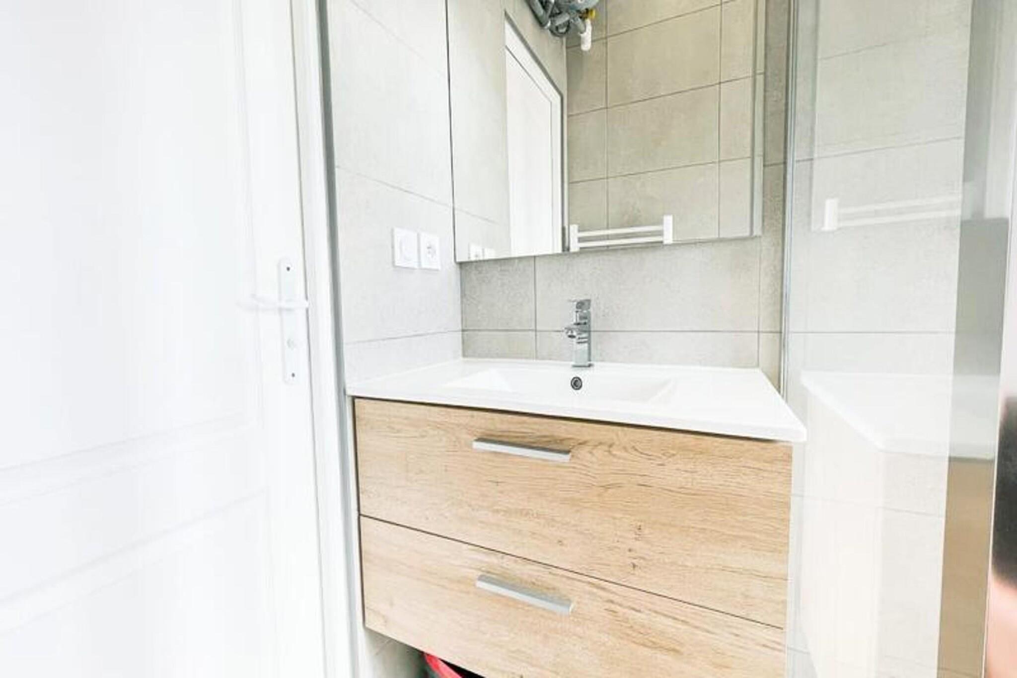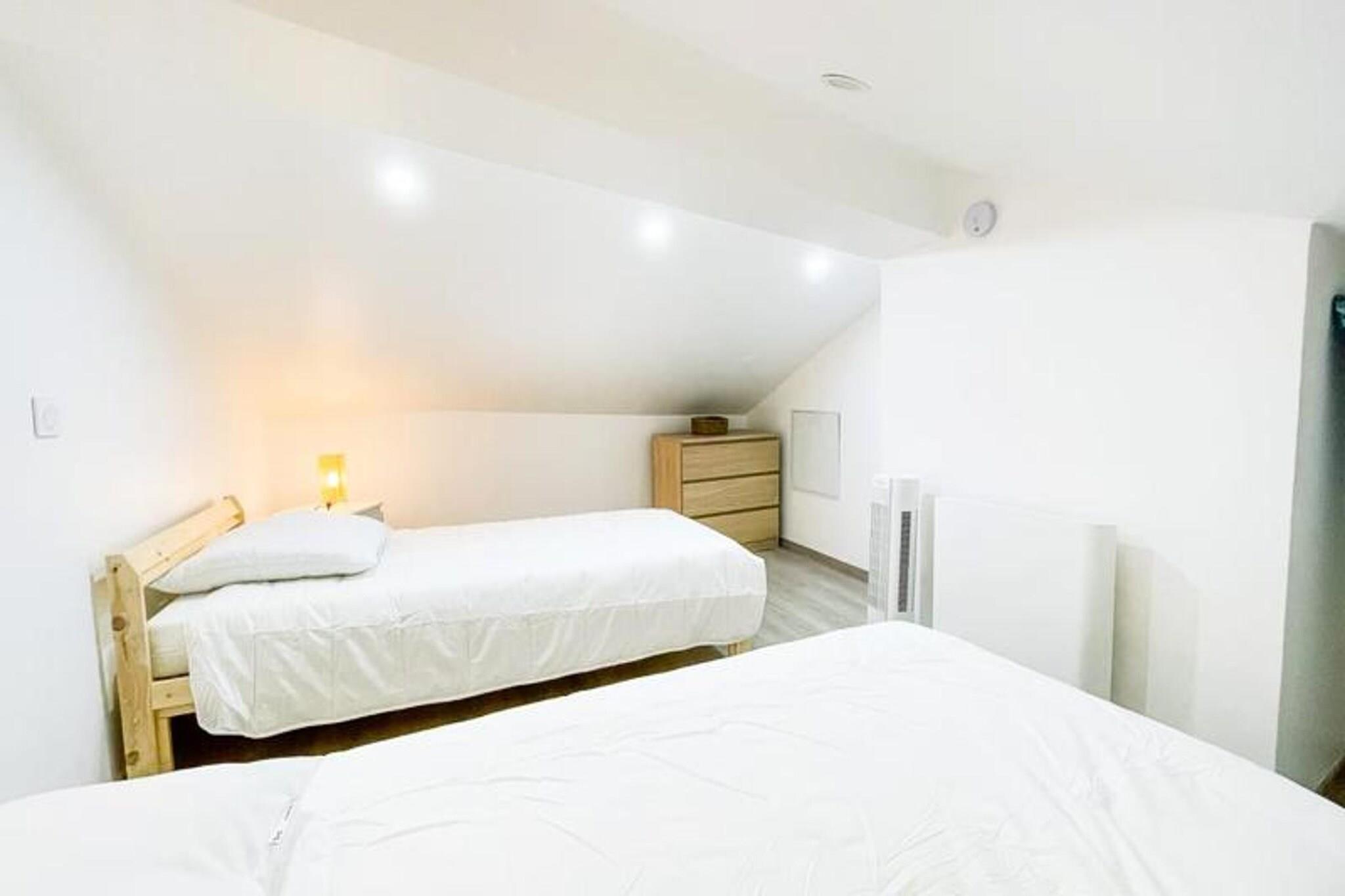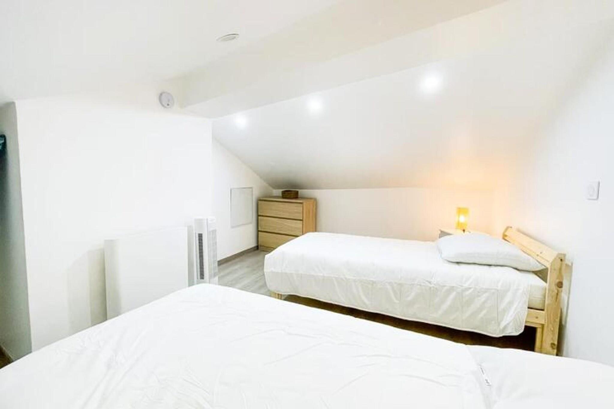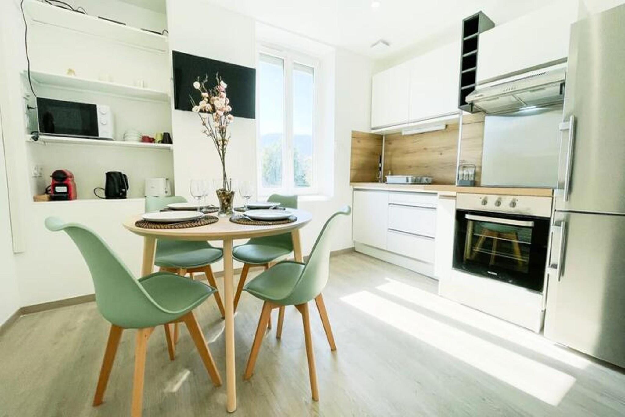 Denne smukt renoverede lejlighed på 45 m², færdiggjort i 2023, tilbyder et roligt tilflugtssted for op til fire gæster. Ejendommen har en hyggelig opholdsstue med spiseplads og fjernsyn, et separat soveværelse med en 140 cm dobbeltseng og eget tv samt et loftssoveområde med to enkeltsenge på 90 cm. Et moderne badeværelse med bruser og vaskemaskine samt separat toilet sikrer et behageligt ophold. Bemærk venligst, at ejendommen ikke er kæledyrsvenlig, og frisk sengelinned og håndklæder leveres til alle gæster ved ankomsten. Denne lejlighed ligger kun 200 meter fra Porte de France og 10 minutters gang fra Place Victor Hugo og giver nem adgang til Grenobles attraktioner. Den pulserende bymidte byder på adskillige caféer, butikker og markeder at udforske, mens dens nærhed til vigtige offentlige transportknudepunkter, såsom Alsace Lorraine sporvognsstoppested (linje A, B og E), gør det bekvemt at rejse gennem hele byen og dens udkant. Gratis parkering er tilgængelig i nærheden af ??Porte de France for ekstra bekvemmelighed. Lejligheden er fuldt udstyret til et problemfrit ophold, inklusive et køkken med køleskab/fryser, ovn, komfur, kedel og Nespresso Krups-kaffemaskine (kapsler medfølger ikke). Gæsterne vil også finde alt nødvendigt køkkenudstyr, hvilket gør det ideelt til at tilberede måltider. Uanset om du er i Grenoble til forretning eller fritid, tilbyder denne nyligt renoverede ejendom alt, hvad du har brug for til et afslappende besøg.