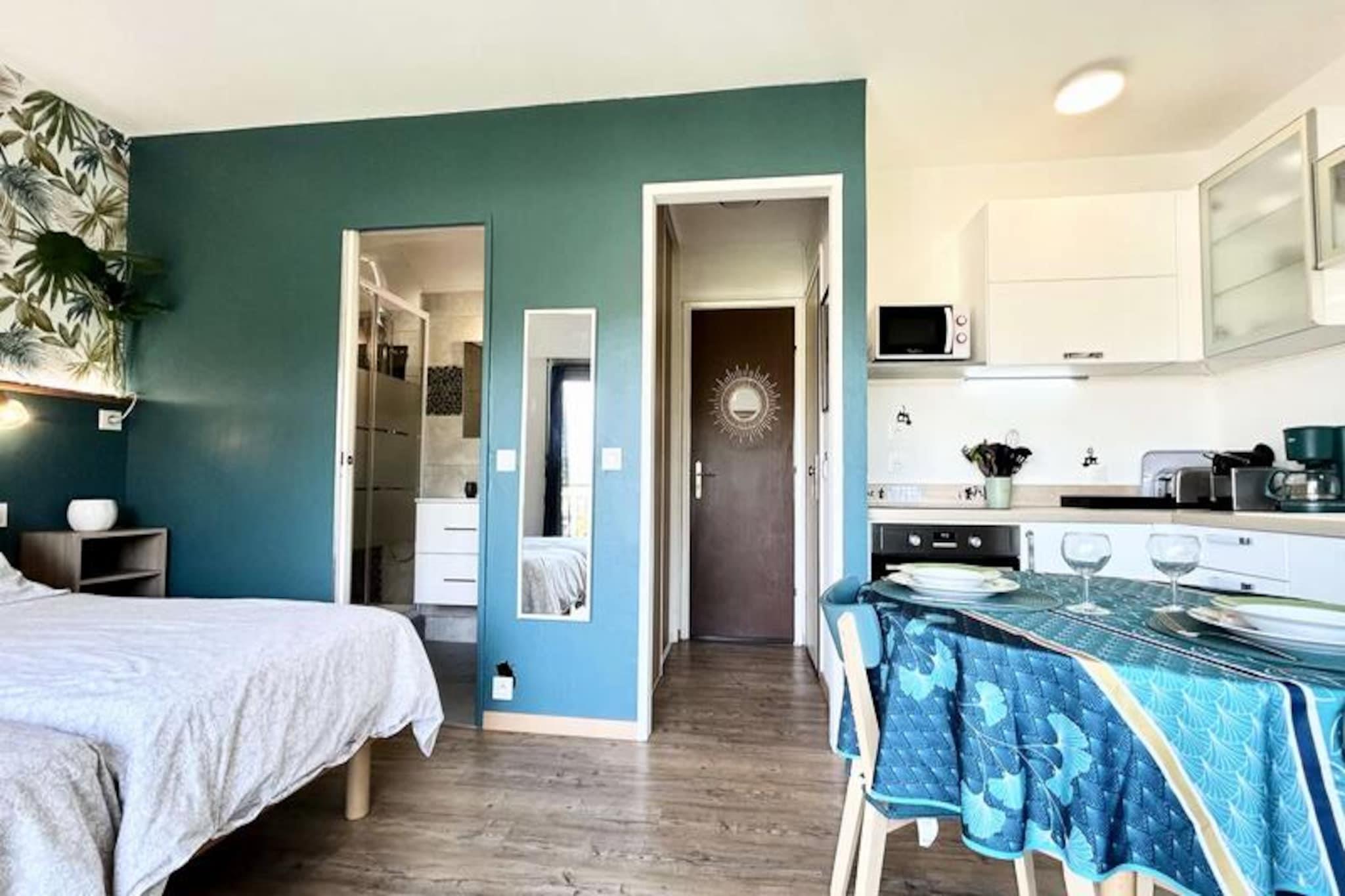 I den charmerende by Gréoux-les-Bains, hvor den provencalske sol bader gaderne, og duften af ??lavendel fylder luften, tilbyder denne dejlige studiolejlighed en rolig tilflugtssted for rejsende, der søger afslapning og foryngelse. Beliggende kun 200 meter fra de berømte termiske bade og en kort gåtur fra det pulserende ugentlige marked, placerer denne bolig dig i hjertet af en af ??Provences mest maleriske destinationer. Fra femte sal i den sikre bygning 'Les Cèdres' kan du nyde den rolige udsigt over grønne områder og de maleriske gader nedenfor. Dette fuldt renoverede 25 m² store studio er omhyggeligt designet til at tilbyde både komfort og funktionalitet. Den airconditionerede opholdsstue har to enkeltsenge, der kan slås sammen til en kingsize-seng, hvilket sikrer afslappende nætter. Et fuldt udstyret køkken med moderne apparater, herunder ovn og mikrobølgeovn, giver mulighed for nem madlavning, mens den private balkon inviterer dig til at slappe af med en morgenkaffe eller et aftenglas vin. Studiolejligheden har også et brusebad, separat toilet og rigelig opbevaringsplads med indbyggede skabe. For ekstra bekvemmelighed kan der lejes en garage eller parkeringsplads i boligen, afhængigt af tilgængelighed. Beliggenheden er ideel til at udforske Gréoux-les-Bains charme. De termiske bade, der er kendt for deres terapeutiske egenskaber, ligger kun få skridt væk, mens det livlige torsdagsmarked tilbyder en smagsprøve på lokal kultur med friske råvarer, kunsthåndværk og regionale specialiteter. Butikker, caféer og restauranter ligger alle inden for gåafstand, hvilket gør det nemt at fordybe sig i den provencalske livsstil. Uanset om du er her for at forkæle dig selv med det helbredende vand, udforske det omkringliggende landskab eller blot slappe af i fredelige omgivelser, er denne studiolejlighed den perfekte base for et uforglemmeligt ophold i Provence.