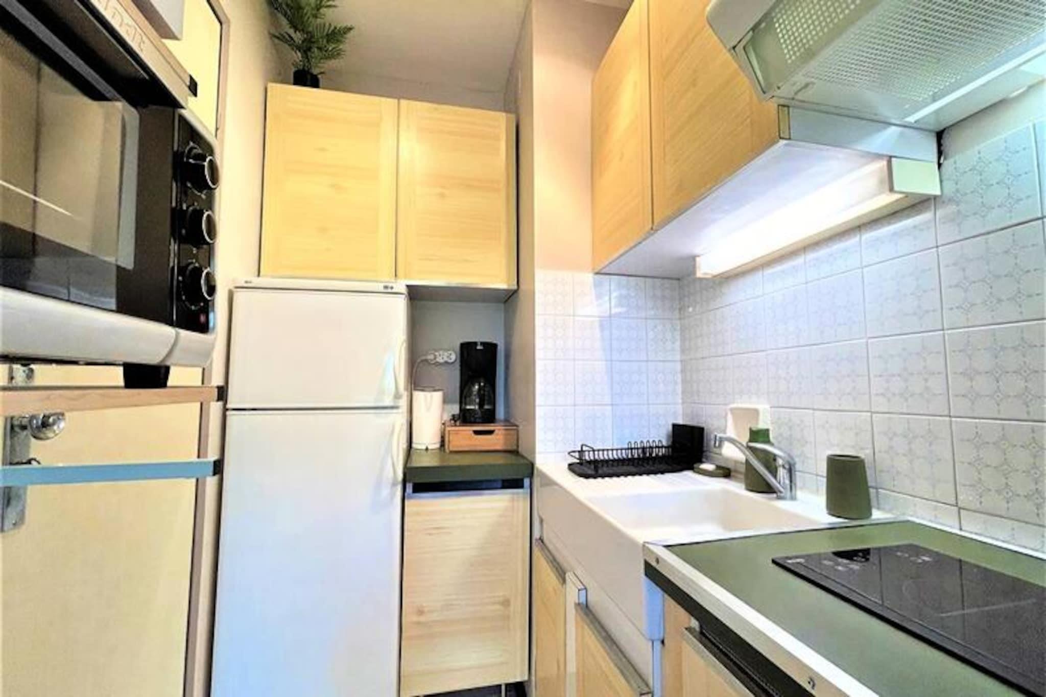Indkvartering: Residensen "Les Cèdres" tilbyder nem adgang til termiske bade og butikker og ligger kun få skridt fra det ugentlige marked, der afholdes hver torsdag. Denne 25 m² store studiolejlighed ligger på 3. sal i en sikker bygning med elevator. Den har et fuldt udstyret køkken (ovn, mikrobølgeovn, elektrisk kaffemaskine osv.), et brusebad og separat toilet samt et hovedværelse med to enkeltsenge (90 cm) med udgang til en nordvendt balkon. Mulighed for at leje en garage eller parkeringsplads i boligen, afhængigt af tilgængelighed. Fordele ved denne studiolejlighed: Nærhed til termiske bade og butikker. Rengøring inkluderet. Inkluderede tjenester: Slutrengøring Slutrengøring Opvarmning - 1