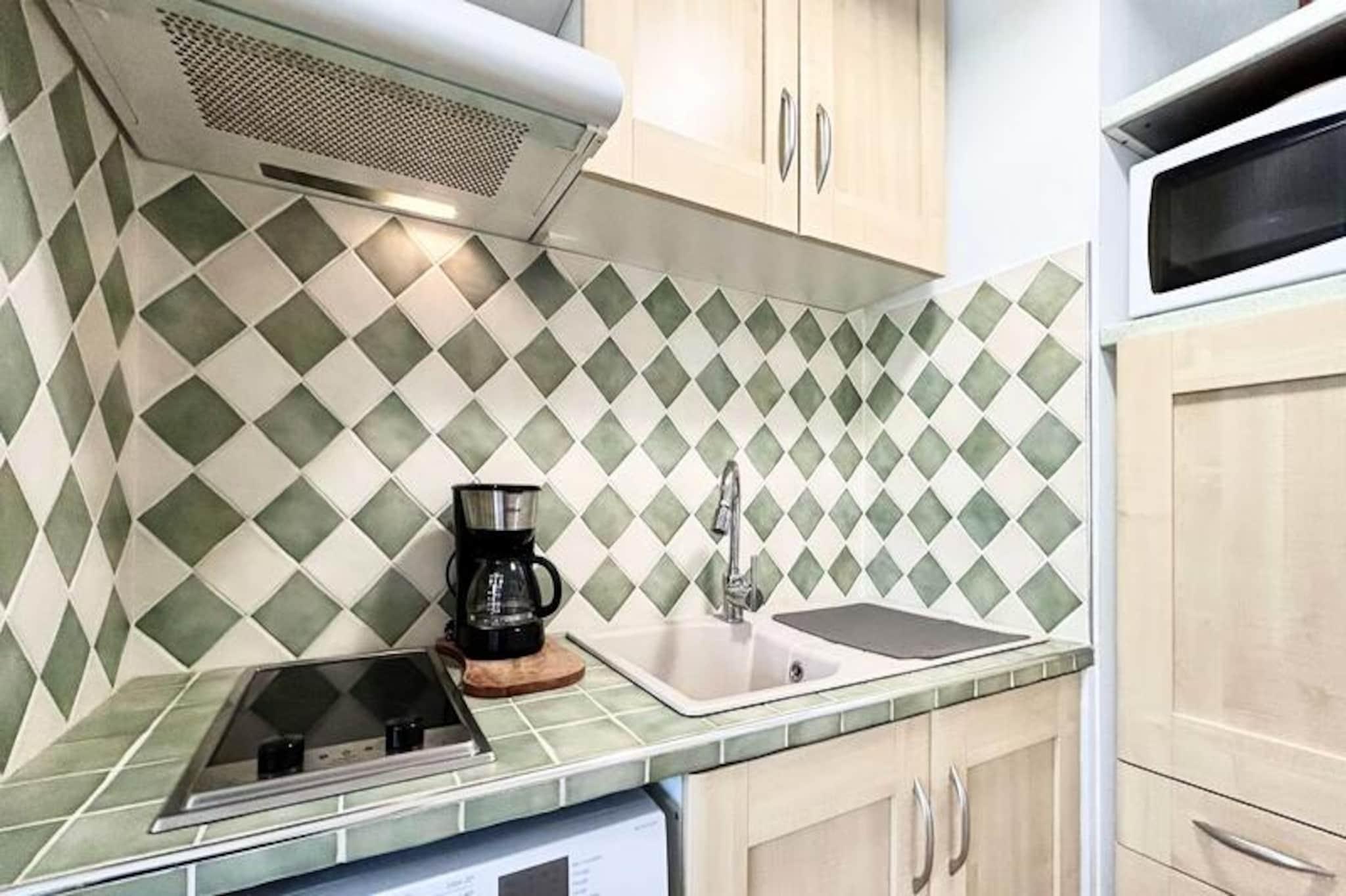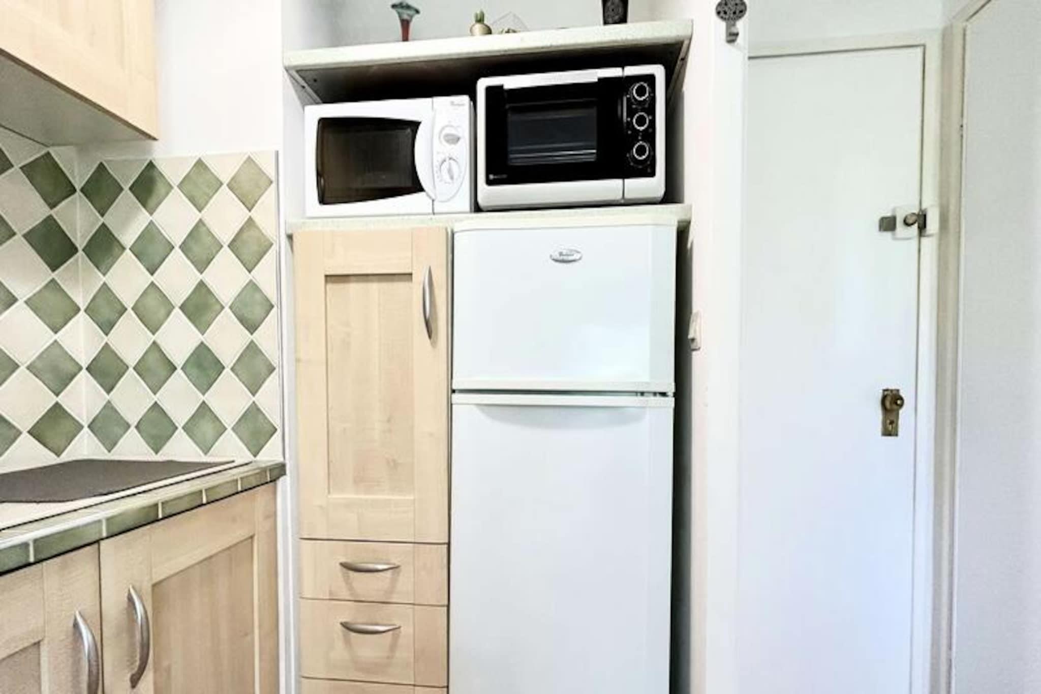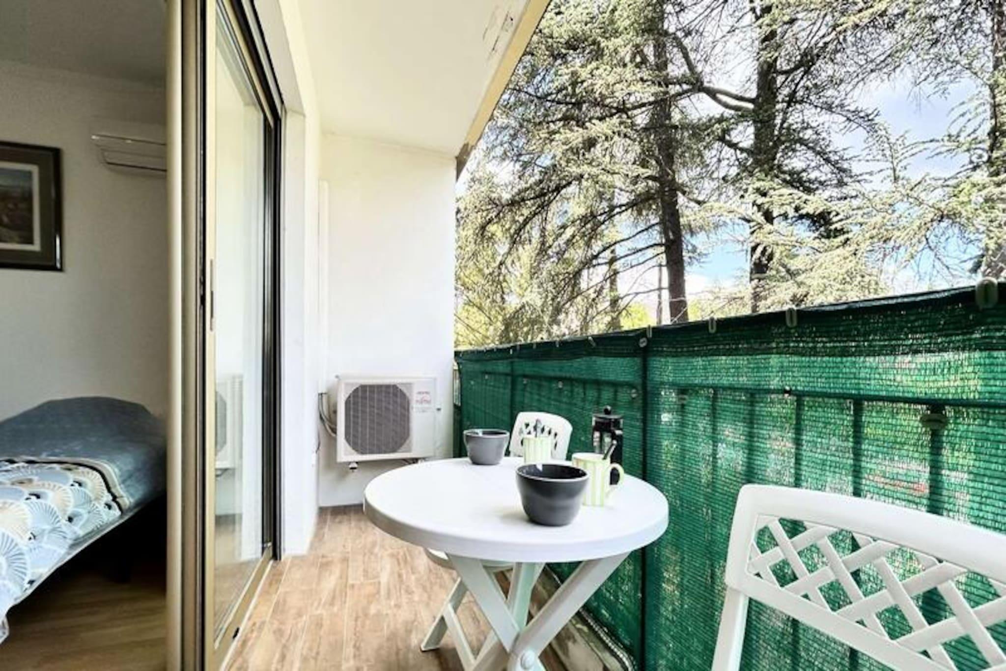 I hjertet af Provence, hvor duften af ??lavendel fylder luften, og charmen fra det sydlige Frankrig vækkes til live, tilbyder dette hyggelige studie i 'Les Cèdres'-residensen et roligt tilflugtssted for dem, der søger afslapning og bekvemmelighed. Beliggende kun få skridt fra de berømte termiske bade og det pulserende ugentlige marked, der afholdes hver torsdag, placerer denne ejendom dig i centrum af det lokale liv, samtidig med at den giver en fredelig tilflugtssted. Fra din nordvendte balkon kan du nyde den rolige udsigt og den blide rytme i denne maleriske region. \n\nDenne 25 m² store studielejlighed, der ligger på 3. sal i en sikker bygning med elevator, er omhyggeligt designet til at maksimere komforten. Hovedværelset har to komfortable enkeltsenge (90 cm) og åbner ud til balkonen, der inviterer naturligt lys til at lyse rummet op. Det fuldt udstyrede køkken inkluderer ovn, mikrobølgeovn og elektrisk kaffemaskine, hvilket sikrer, at du har alt, hvad du behøver for at tilberede lækre måltider. Et moderne brusebad og separat toilet bidrager til bekvemmeligheden, mens muligheden for at leje en garage eller parkeringsplads forbedrer dit ophold. \n\nBeliggenheden er uovertruffen for dem, der besøger de termiske bade eller udforsker de lokale butikker og markeder. Uanset om du er her for at slappe af i det beroligende vand eller nyde Provences smag, er alt hvad du behøver inden for gåafstand. Det nærliggende landskab lokker også med sine bølgende bakker, vinmarker og charmerende landsbyer, perfekt til afslappende dagsture. \n\nMed slutrengøring inkluderet sikrer dette studie en problemfri oplevelse, så du kan fokusere på at få mest muligt ud af din tid i dette fortryllende hjørne af Frankrig. Uanset om det er til en kort ferie eller et længere ophold, tilbyder 'Les Cèdres' den perfekte blanding af komfort, bekvemmelighed og provencalsk charme.