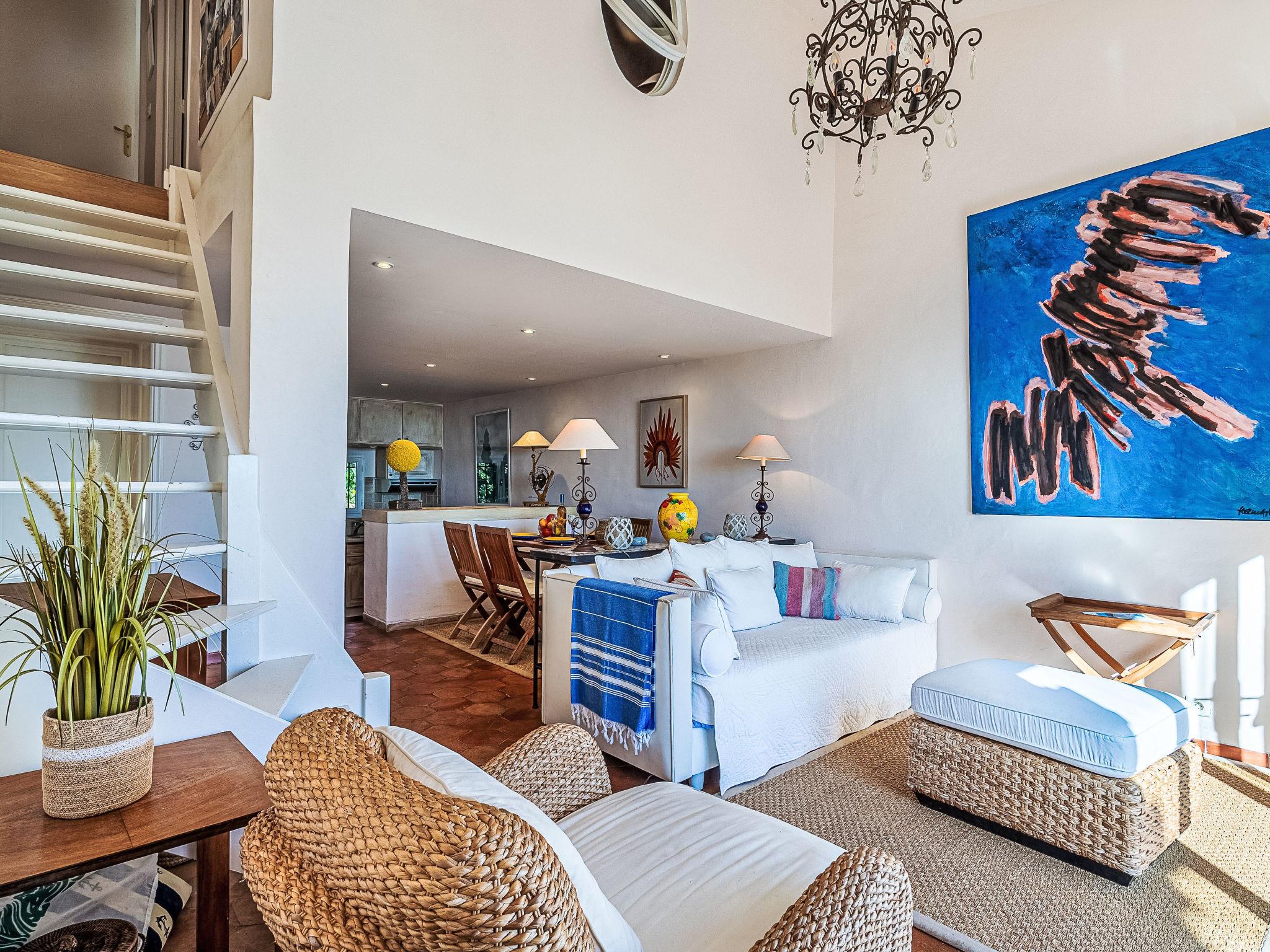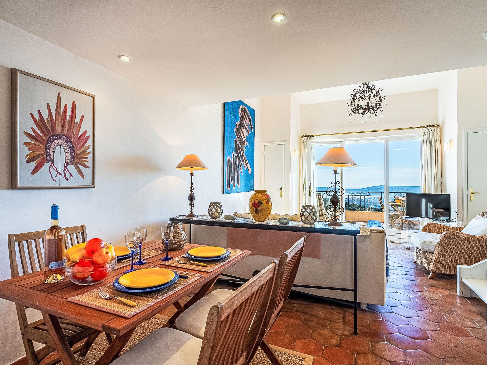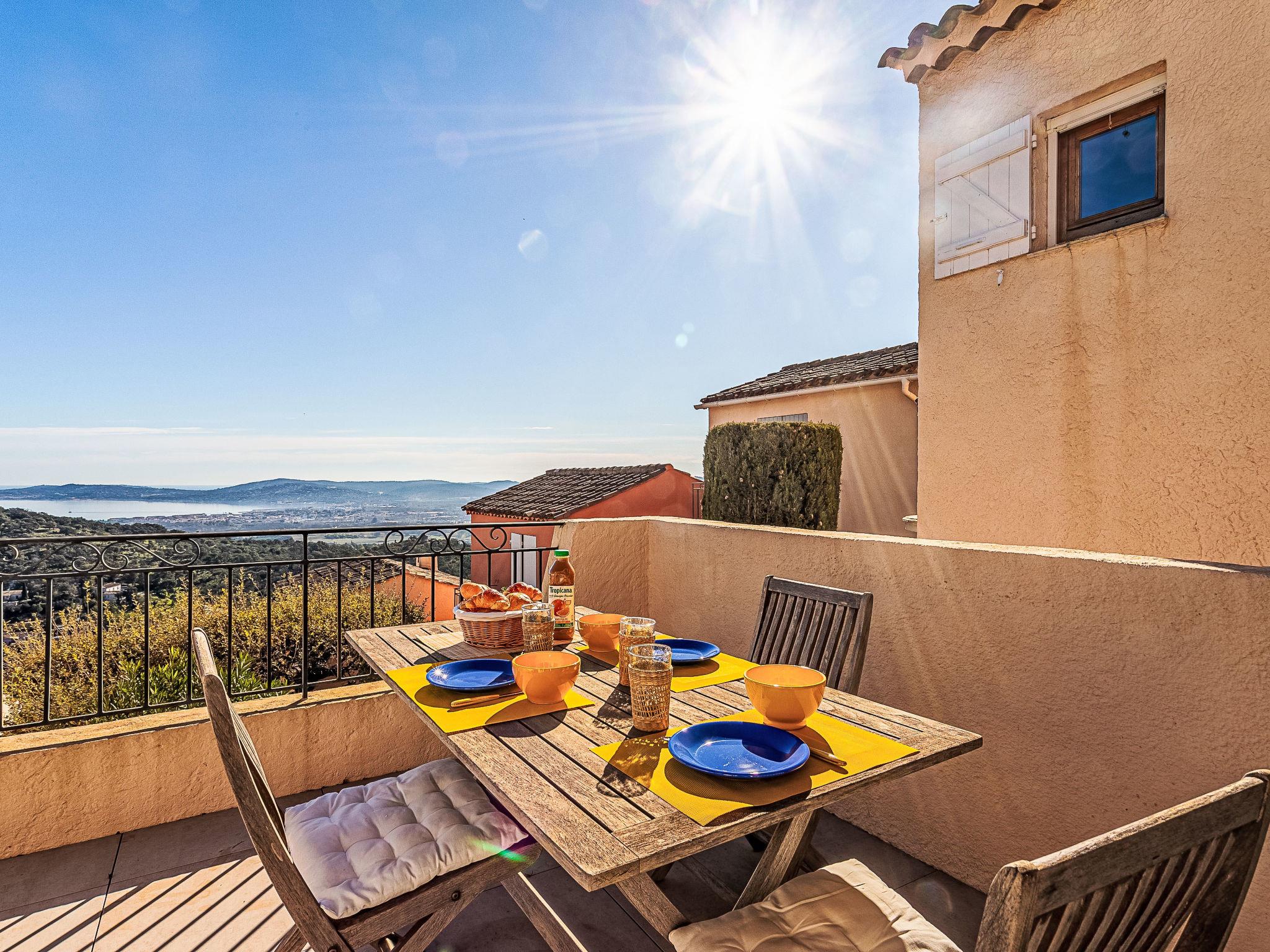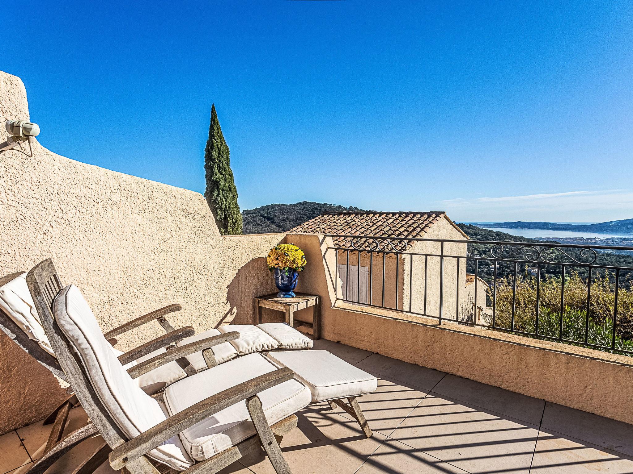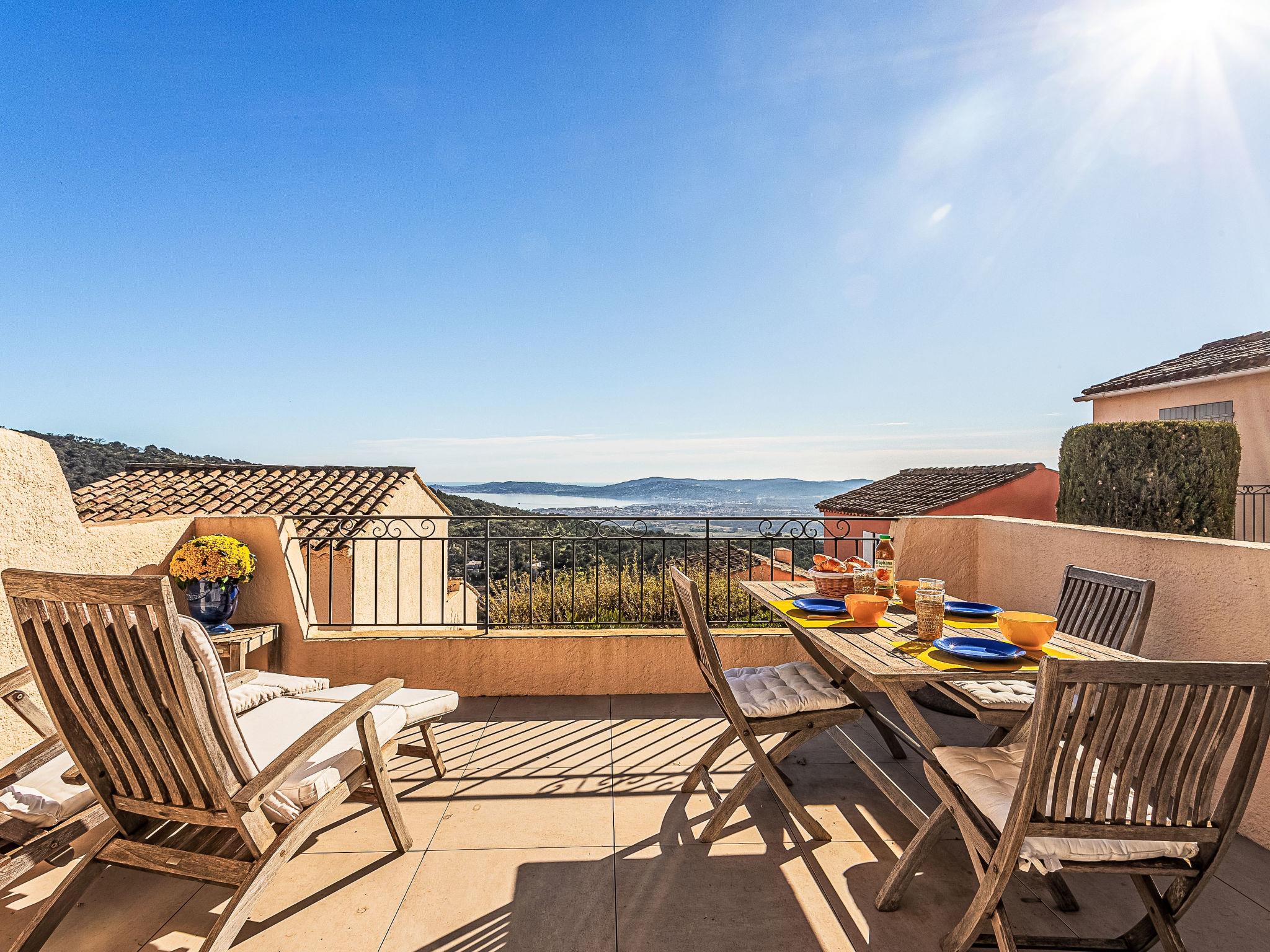 "Village de Silhouette 6", 3-room maisonette 60 m2 on 1st floor. Beautiful furnishings: living/dining room with TV (flat screen). Exit to the terrace. Open kitchen (3 hot plates, oven, dishwasher, toaster, kettle, microwave, freezer, electric coffee machine). Bathroom, sep. WC. Electric heating. Upper floor: 1 room with 1 french bed (2 x 80 cm, length 190 cm), air conditioning. 1 small room with 1 bed (90 cm, length 190 cm), air conditioning. Balcony 13 m2, patio 18 m2. Terrace furniture. View of the sea and the valley. Facilities: washing machine, baby cot for up to 2 year olds. Internet (WiFi, free). Parking. Please note: smoke alarm. Offer by a private individual according to Art. 155, IV of CGI. 83068002001AJ