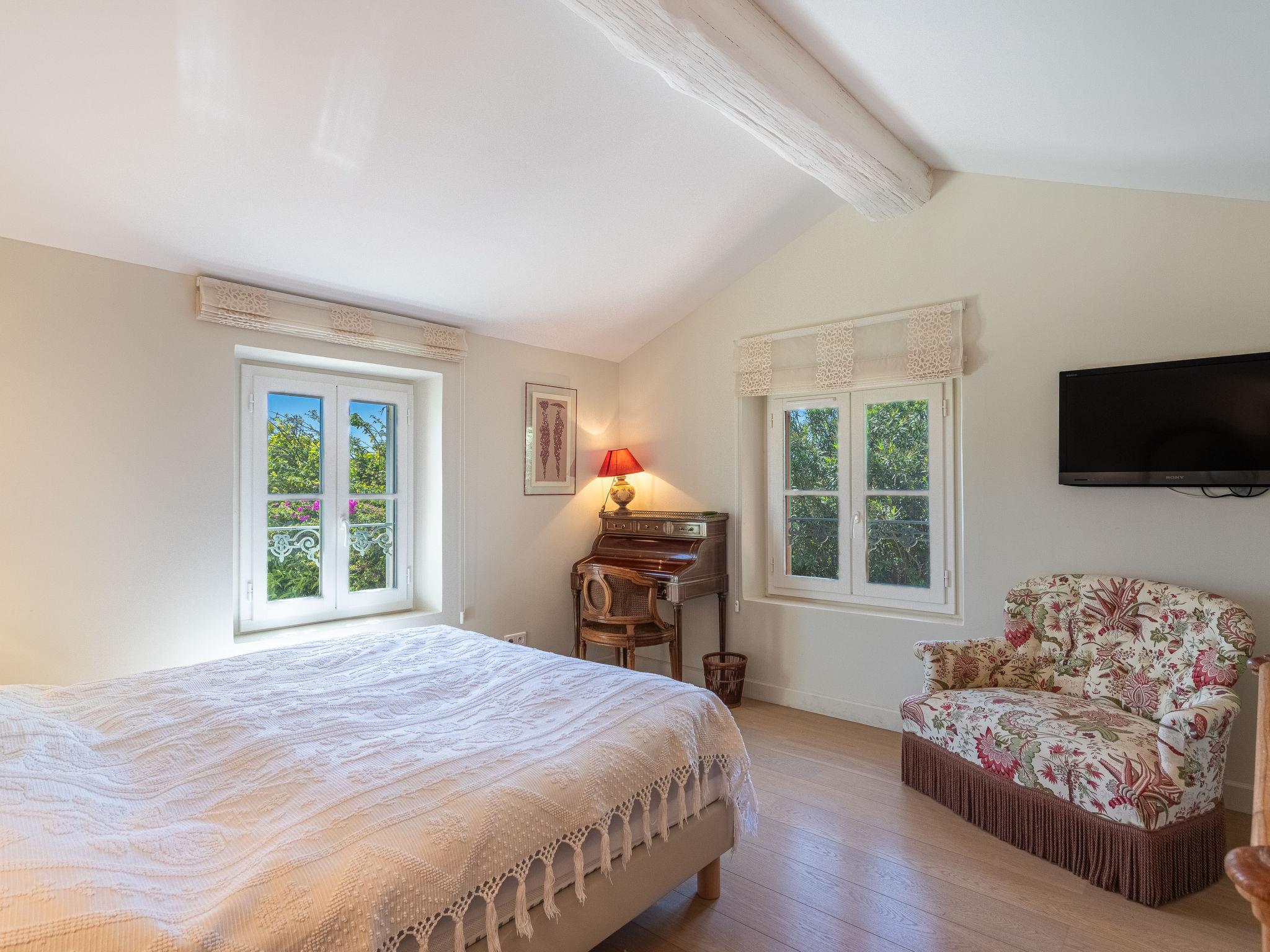 Single-family house "Le Clos du Pierredon", 2 storeys. On the outskirts, 900 m from the centre of Grimaud, 6 km from the sea. Private: well-kept garden with lawn 2'000 m2 trees, swimming pool (6 x 12 m, depth 90 - 220 cm, seasonal availability: 01.May. - 30.Sep.). Parking (for 2 cars). Shop, grocery 900 m, supermarket 3.5 km, restaurant 700 m, bus stop "Font Mourier" 3.8 km, sandy beach "Port Grimaud" 6 km. Sports harbour 6 km, golf course (18 hole) 7 km, sailing school 6 km. Nearby attractions: Port Grimaud 6 km, Parc d'attractions Azur Park 5.5 km, Saint Tropez 13 km, Sainte Maxime 12 km, Cannes 96 km, Nice 110 km. Well-known lakes can easily be reached: Lac de Sainte Croix 95 km. Hiking paths: Massif de l'Esterel 50 km. Please note: car recommended. The keys‘ handover takes place by the agency Interhme in Gassin, 6 km.