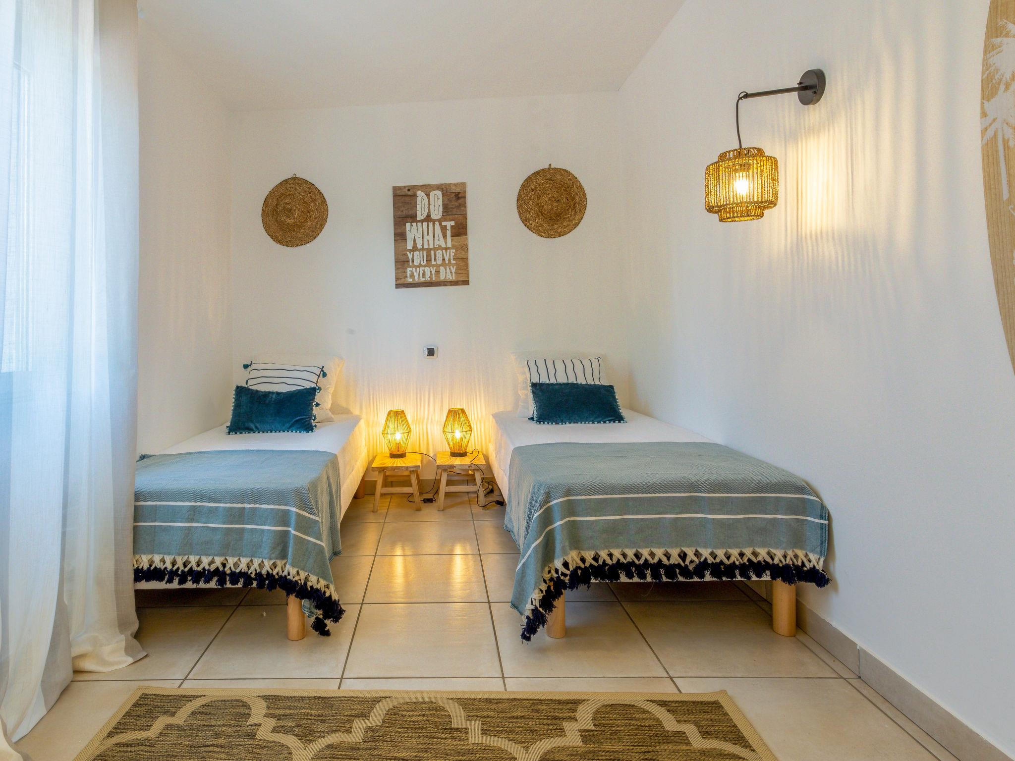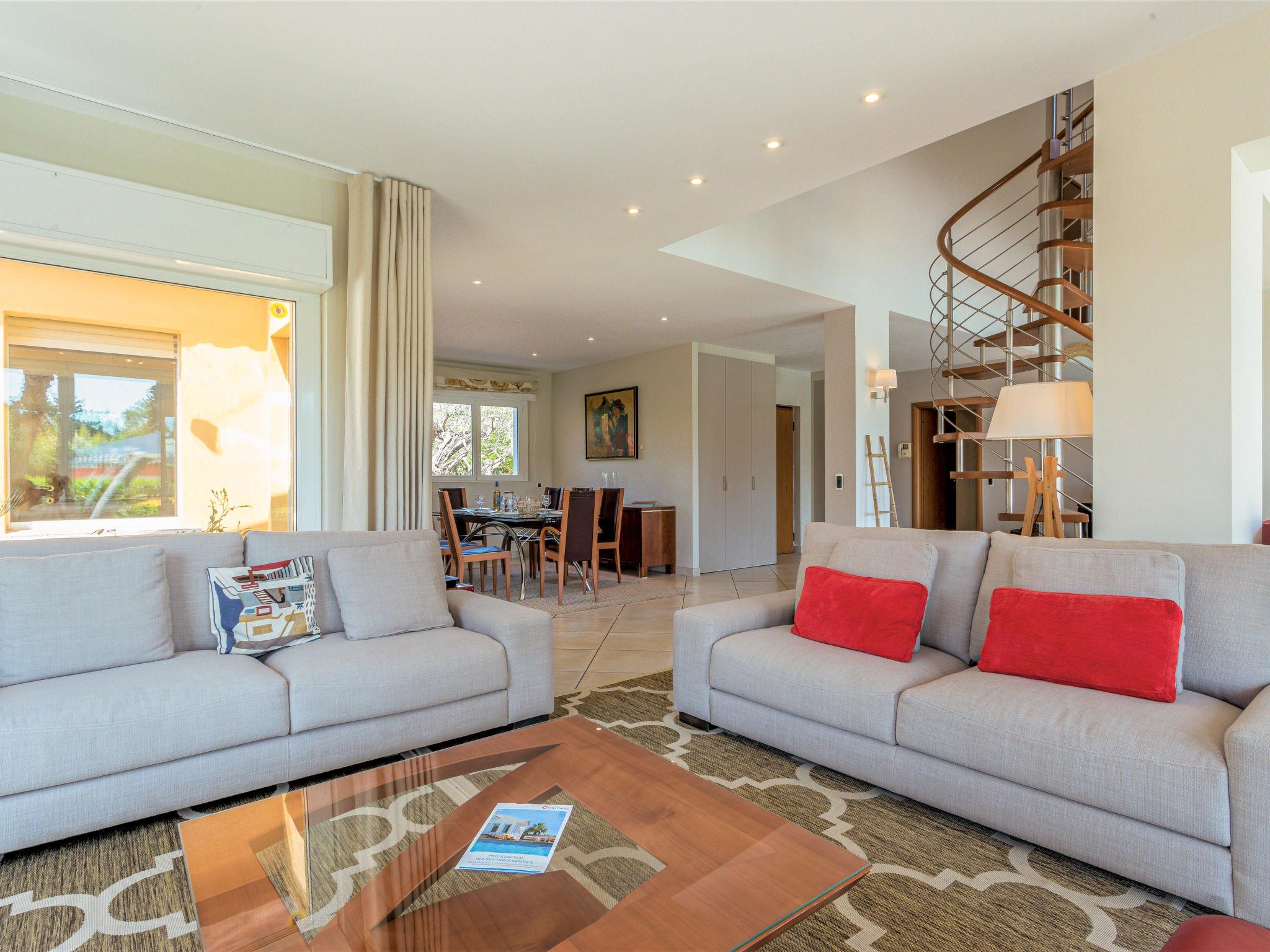 5-room villa 200 m2. Luxurious furnishings: large living/dining room with TV (flat screen). Exit to the terrace. 1 large room with 1 french bed (160 cm, length 200 cm), shower/WC, double hand-basin and TV (flat screen), air conditioning. Exit to the garden. 2 rooms, each room with 1 french bed (160 cm, length 200 cm), shower/WC and air conditioning. 1 room with 2 beds (90 cm, length 190 cm), air conditioning. Open kitchen (oven, dishwasher, 3 induction hot plates, toaster, kettle, microwave, freezer, electric coffee machine, Capsules for coffee machine (Nespresso) extra). Shower, sep. WC. Floor heating. Large terrace, south facing position. Terrace furniture, deck chairs (8). Facilities: washing machine, dryer, iron, children's high chair, baby cot. Internet (WiFi, free). Parking (3 cars). Please note: non-smoking house. Maximum 1 pet/ dog allowed. Smoke alarm. Underfloor cooling system. 83068000712KU