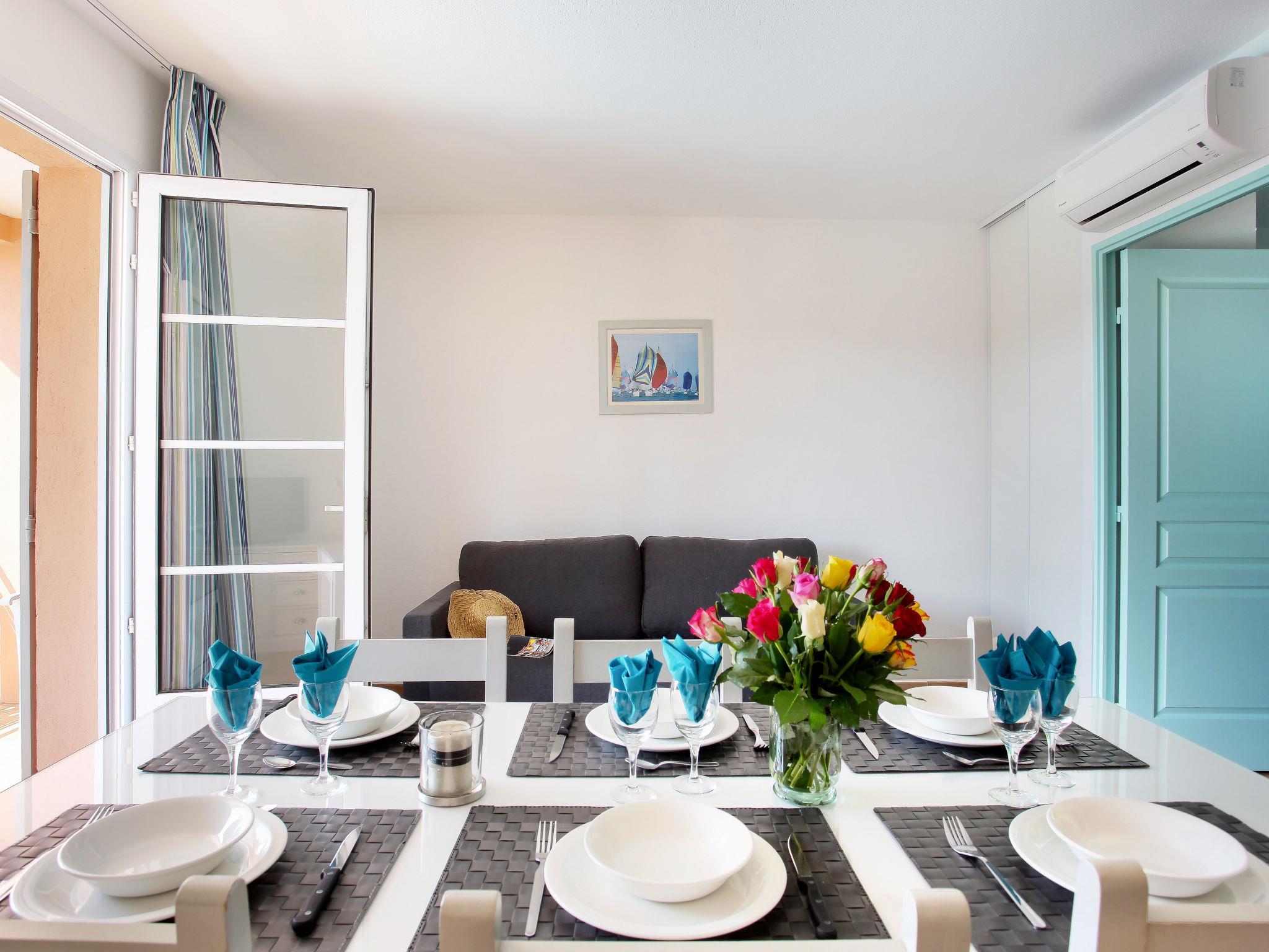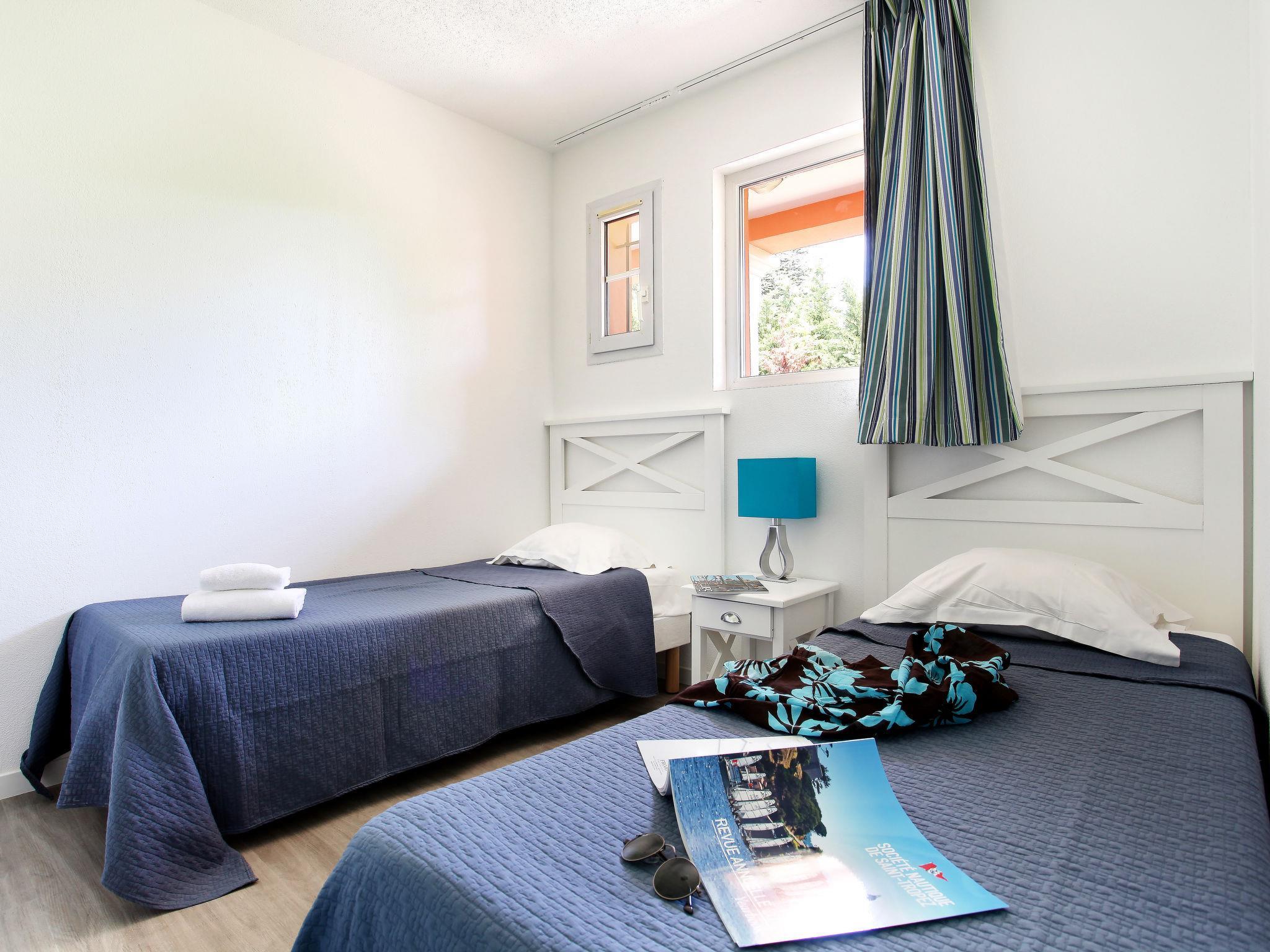 "Résidence Odalys Référence La Palmeraie", 3-room apartment 60 m2. Bright, practical furnishings: living/sleeping room with 1 double sofabed, dining table and TV. 1 room with 1 french bed. 1 room with 2 beds. Entrance hall with 1 x 2 bunk beds. Kitchenette (dishwasher, 2 ceramic glass hob hotplates, microwave, freezer, electric coffee machine). Bathroom, shower/WC, sep. WC. Electric heating, air-conditioning. Balcony or terrace. Terrace furniture, balcony furniture. Facilities: children's high chair, baby cot. Internet (WiFi, free). Please note: non-smokers only. Maximum 1 pet/ dog allowed. Smoke alarm, fire extinguisher.
