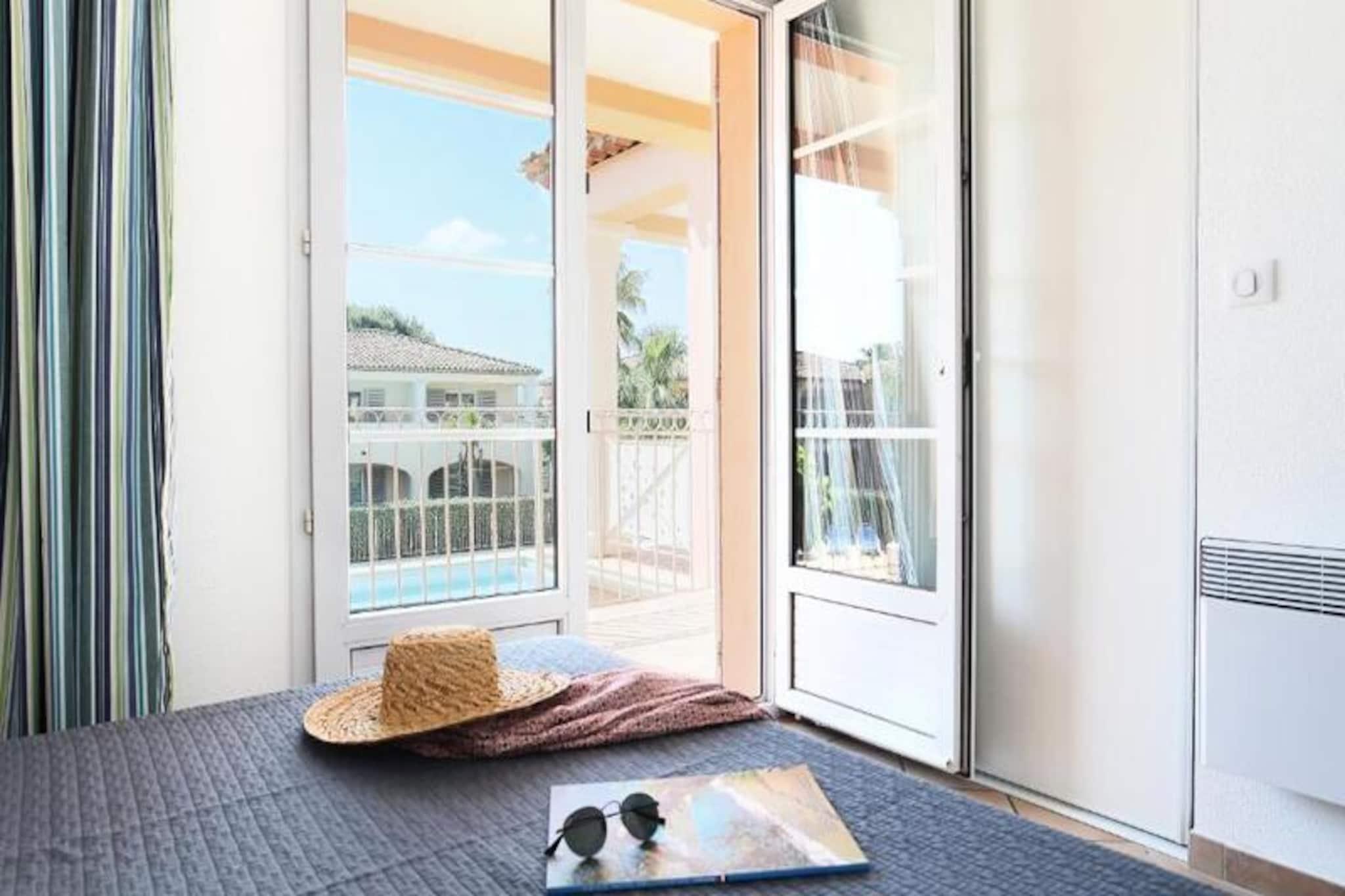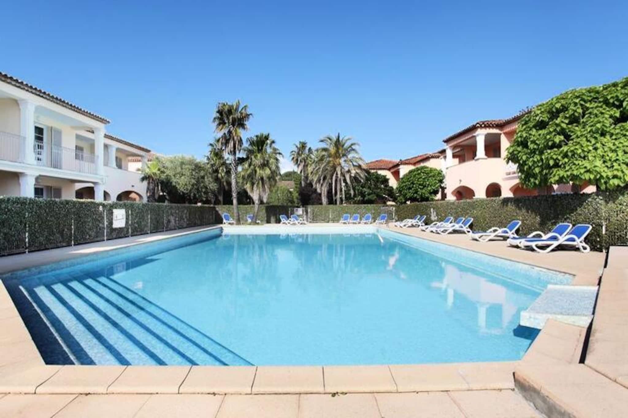 Denne rummelige lejlighed er perfekt til familier og tilbyder et behageligt ophold for op til 6 personer. Det har en stue med en sovesofa til to, et hyggeligt soveværelse med en dobbeltseng og en kahyt med to køjesenge. Lejligheden er kæledyrsvenlig (mod et ekstra gebyr) og inkluderer væsentlige faciliteter såsom sengetøj, håndklæder og fjernsyn. Wi-Fi-adgang er gratis, hvilket sikrer, at du kan holde forbindelsen under dit ophold. For dem med små børn er et babysæt (krybbe, høj stol og bad) tilgængeligt mod et ekstra gebyr. Ejendommen ligger kun 3 km fra St. Tropez, kendt for sin underholdning og sine strande. Udforsk den charmerende landsby Grimaud, nyd naturskønne gå- eller cykelture, og prøv vandaktiviteter på nærliggende sejler- og vandskiskoler. En gratis sommerbus giver adgang til Golfes sandstrande, perfekt til sol og hav. Lokale caféer og markeder tilbyder lækre regionale retter. Lejligheden er udstyret med et fuldt funktionelt køkken, så gæsterne nemt kan tilberede måltider. Det inkluderer også et separat brusebad og toilet for ekstra bekvemmelighed. Ejendommen kan prale af to opvarmede udendørs swimmingpools (åben fra april til oktober, undtagen juli og august), en tennisbane og en petanquebane, der giver masser af rekreative muligheder. Parkering er tilgængelig på stedet, selvom pladserne er begrænsede, og slutrengøring er inkluderet, selvom køkkenområdet er udelukket.