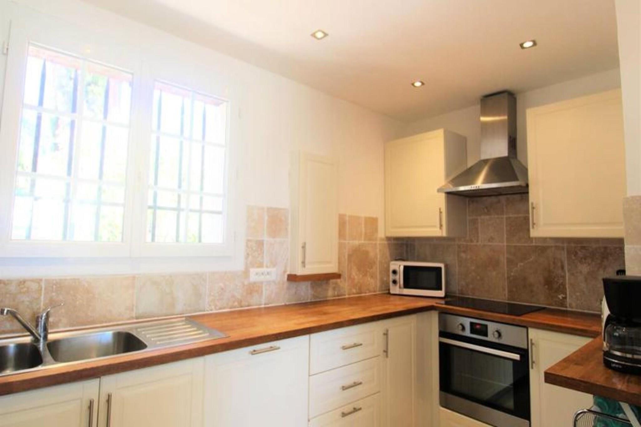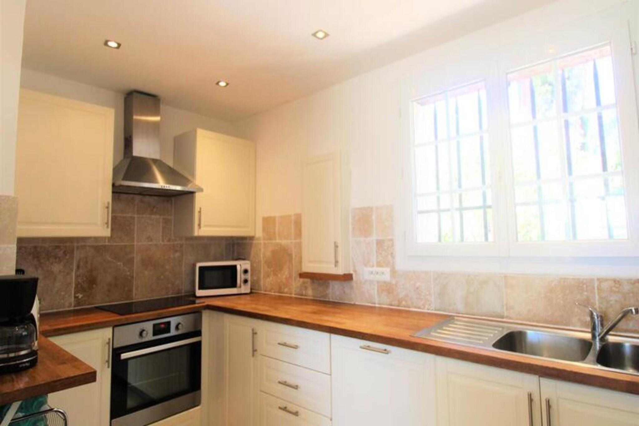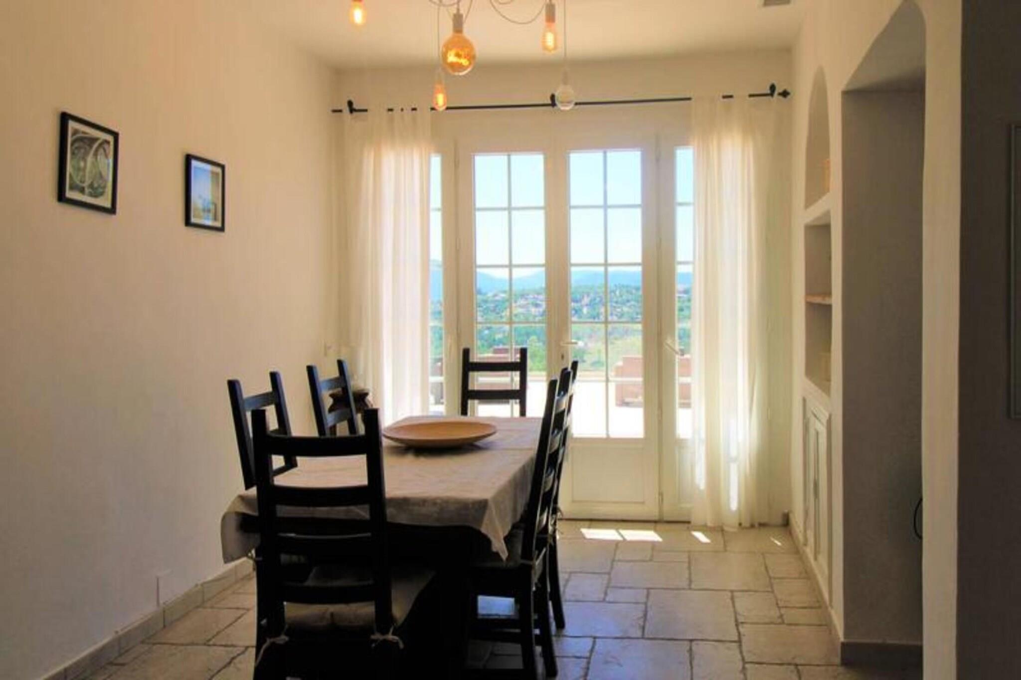 Denne fredelige villa med aircondition tilbyder de perfekte rammer for en afslappende ferie. Beliggende på højderne af Grimaud, villaen omfatter tre komfortable soveværelser: et master soveværelse med en 180x200 seng og en-suite badeværelse, et andet soveværelse med to 90x200 senge, og et tredje soveværelse med en 160x200 seng. Hvert værelse har aircondition for ekstra komfort. Ejendommen er kæledyrsvenlig med en ekstra mulighed for din lodne ledsager. Villaen byder på rigelig udendørs plads med en stor terrasse, panoramaudsigt og en swimmingpool. Denne villa ligger kun 11 km fra Saint-Tropez og er ideelt placeret til at udforske det omkringliggende område. Strandene i Pampelonne (20 minutter), Grimaud (9 minutter) og Sainte-Maxime (15 minutter) er alle let tilgængelige. Den charmerende landsby Grimaud byder på lokale caféer, restauranter og markeder, perfekt til at nyde regionens mad og kultur. Villaens førsteklasses beliggenhed sikrer et fredeligt tilflugtssted med nem adgang til den pulserende atmosfære i Saint-Tropez-bugten. Villaens åbne planløsning omfatter et rummeligt opholds- og spiseområde, der fører til terrassen, hvor du kan nyde en udendørs lounge og spiseplads. Køkkenet er fuldt udstyret og løber ud i den lyse stue. Yderligere faciliteter omfatter et fladskærms-tv, Wi-Fi, et udendørs vaskerum og en udendørs bruser. Fra terrassen fører et par trin dig ned til swimmingpoolen og området til solbadning.