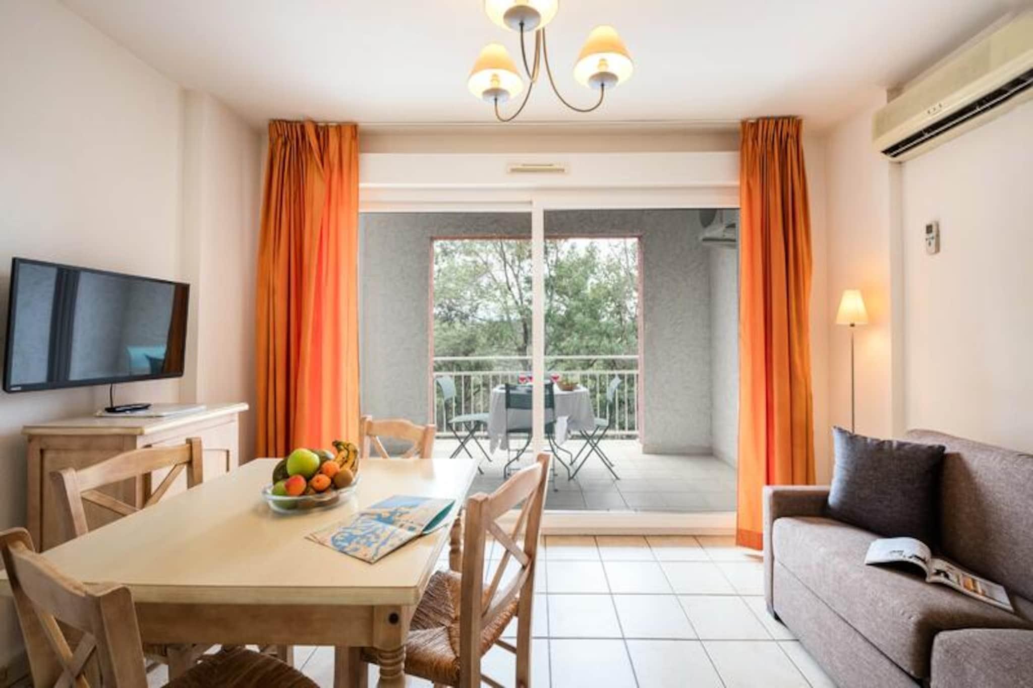 Denne rummelige lejlighed har plads til op til 4 gæster og har en hyggelig stue med en udtræksseng til 2 personer samt et soveværelse med en dobbeltseng. Lejligheden har en privat terrasse, perfekt til at nyde udsigten over det omkringliggende landskab. Kæledyr er tilladt mod et tillægsgebyr, og ejendommen tilbyder gratis udendørs parkering. Lejligheden er udstyret med alle nødvendige faciliteter, herunder sengetøj og håndklæder, hvilket sikrer et behageligt ophold. Ideelt beliggende 1 km fra det charmerende gamle landsbycentrum i Grimaud, tilbyder lejligheden nem adgang til de fantastiske strande ved bugten, kun 7 km væk. Udforsk de historiske gader i Grimaud, en af ??de ældste landsbyer i Massif des Maures, eller besøg nærliggende Port Grimaud og Saint-Tropez. Regionen byder på en bred vifte af udendørs aktiviteter, fra vandsport til kulturelle oplevelser, hvor det feudale slot Grimaud er et bemærkelsesværdigt højdepunkt. Lejligheden har et veludstyret tekøkken, hvilket gør det nemt at tilberede dine måltider. Badeværelset er fuldt funktionelt, hvilket giver bekvemmelighed under dit ophold. For familier med små børn er et babysæt med en babyseng og stol tilgængelig efter anmodning. I sommermånederne kan gæsterne nyde den udendørs swimmingpool, og der tilbydes morgenbuffet som start på dagen.