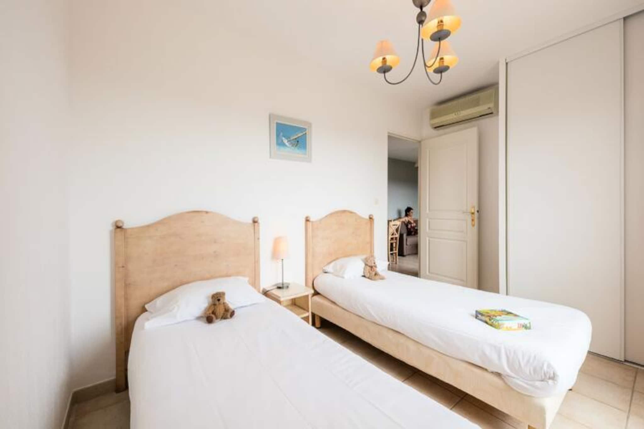 Denne bolig har en fredelig beliggenhed og tilbyder rummelige lejligheder, der er ideelle til familier eller sm? grupper med plads til op til 6 personer. Boligerne omfatter en stue med en udtr?ksseng til 2, et sovev?relse med en dobbeltseng og et andet med 2 enkelt- eller k?jesenge. K?ledyr er tilladt mod et ekstra gebyr, og hver lejlighed har en privat terrasse med smuk udsigt. WiFi, senget?j og h?ndkl?der er inkluderet, mens slutreng?ring er d?kket (ekskl. k?kkenomr?de og opvask). Boligen ligger kun 1 km fra den charmerende landsby Grimaud, en af ??de ?ldste byer i Massif des Maures, og tilbyder nem adgang til de fantastiske strande ved Golfen, cirka 7 km v?k. I n?rheden kan du udforske de kulturelle og historiske steder s?som det feudale slot eller nyde udend?rsaktiviteter s?som vandsport. Byens livlige atmosf?re med et bredt udvalg af caf?er og markeder sikrer, at du har masser at udforske. Hver lejlighed har et fuldt udstyret tek?kken med alt hvad du beh?ver til selvforplejning, herunder k?leskab og komfur. Yderligere faciliteter omfatter et badev?relse med bruser, et babys?t (efter anmodning) og gratis parkering. I sommers?sonen kan g?sterne nyde den udend?rs swimmingpool, og der serveres morgenbuffet for at starte dagen.