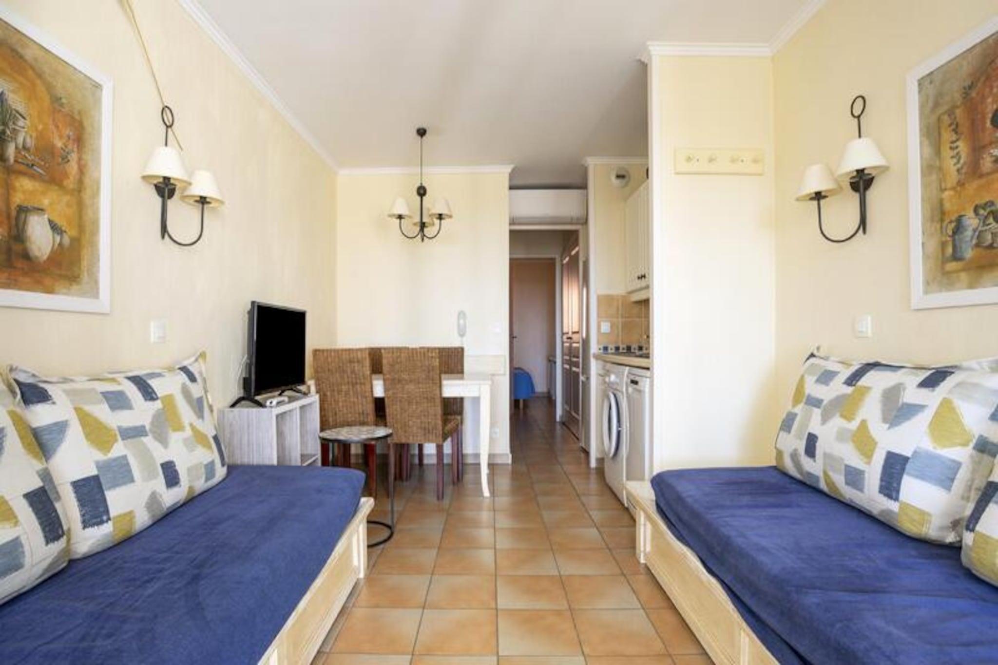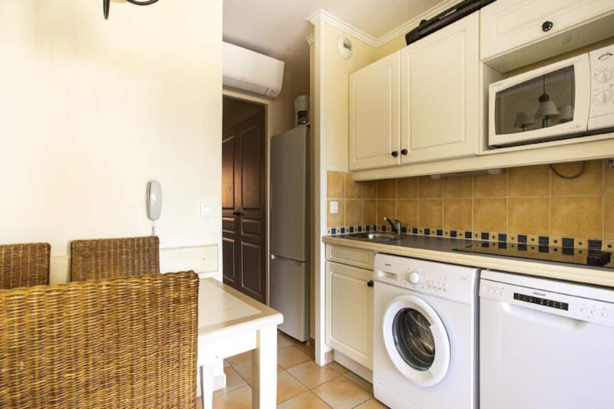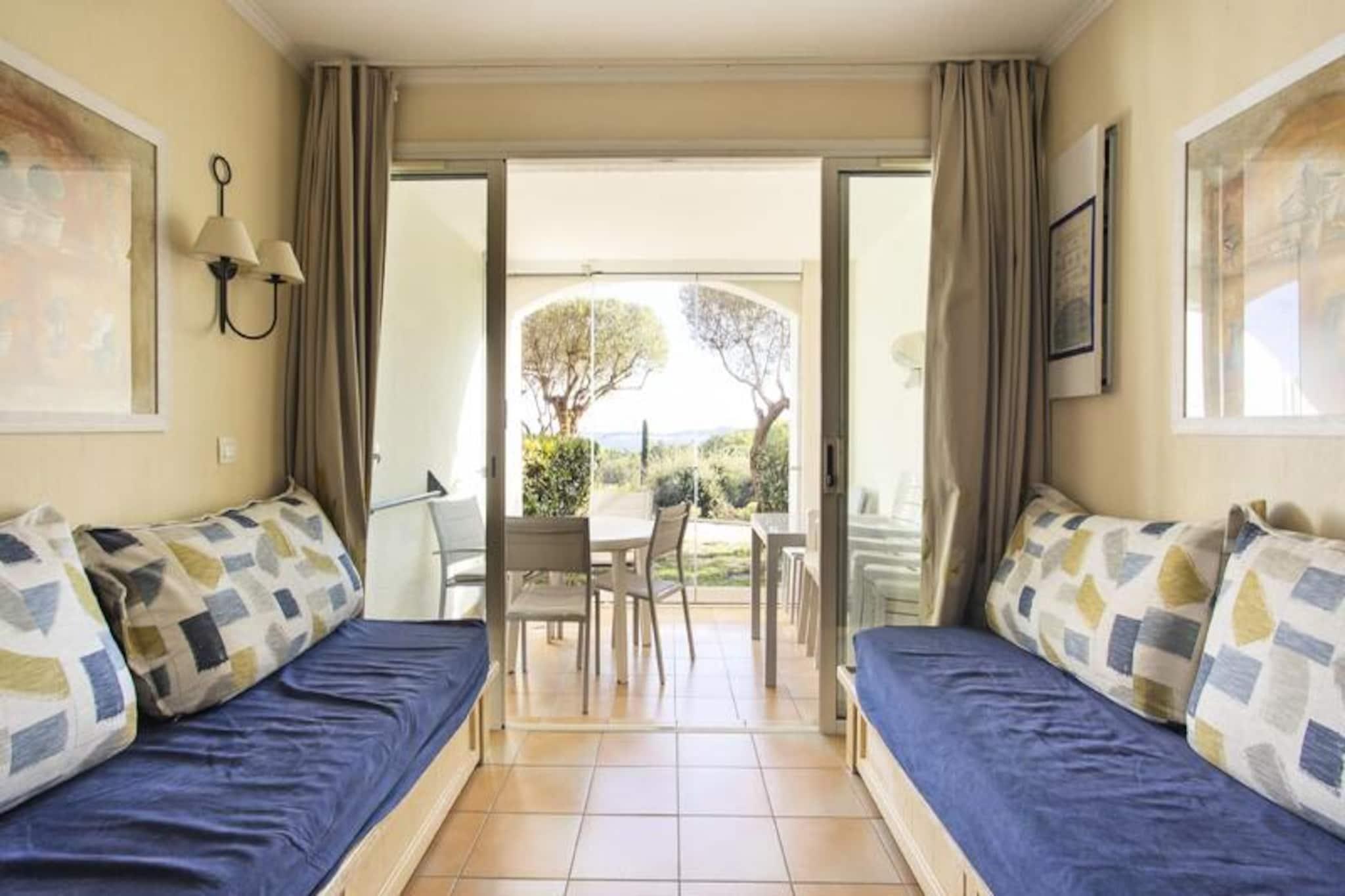 Denne rummelige ferielejlighed ligger i stueetagen og har et komfortabelt soveværelse med dobbeltseng samt en stue med to sovesofaer, den ene med en udtræksseng. Det er kæledyrsvenligt, tilbyder gratis parkering (afhængigt af tilgængelighed) og inkluderer valgfri Wi-Fi. Et babysæt er tilgængeligt efter anmodning, hvilket gør det ideelt for familier. Sengelinned og håndklæder er tilgængelige mod et tillægsgebyr, og slutrengøring er obligatorisk. Ejendommen ligger kun 3 km fra en sandstrand, der tilbyder nem adgang til lokale attraktioner såsom den maleriske landsby Grimaud, den travle by Saint-Tropez og den sjove Luna Park. Det omkringliggende område er perfekt til afslappede gåture, med populære destinationer som Croix Valmer, Ramatuelle og den smukke Lavandou-strand inden for rækkevidde. En bil anbefales til fuldt ud at udforske området. Lejligheden har et fuldt udstyret køkken, et badeværelse med bruser og et separat toilet. Gæsterne kan nyde boligens faciliteter, herunder et stort vandområde med pools, sportsfaciliteter og cykeludlejning i sommermånederne. En restaurant og et supermarked på stedet tilføjer til bekvemmeligheden, hvilket gør dette til en perfekt base for at udforske regionen.