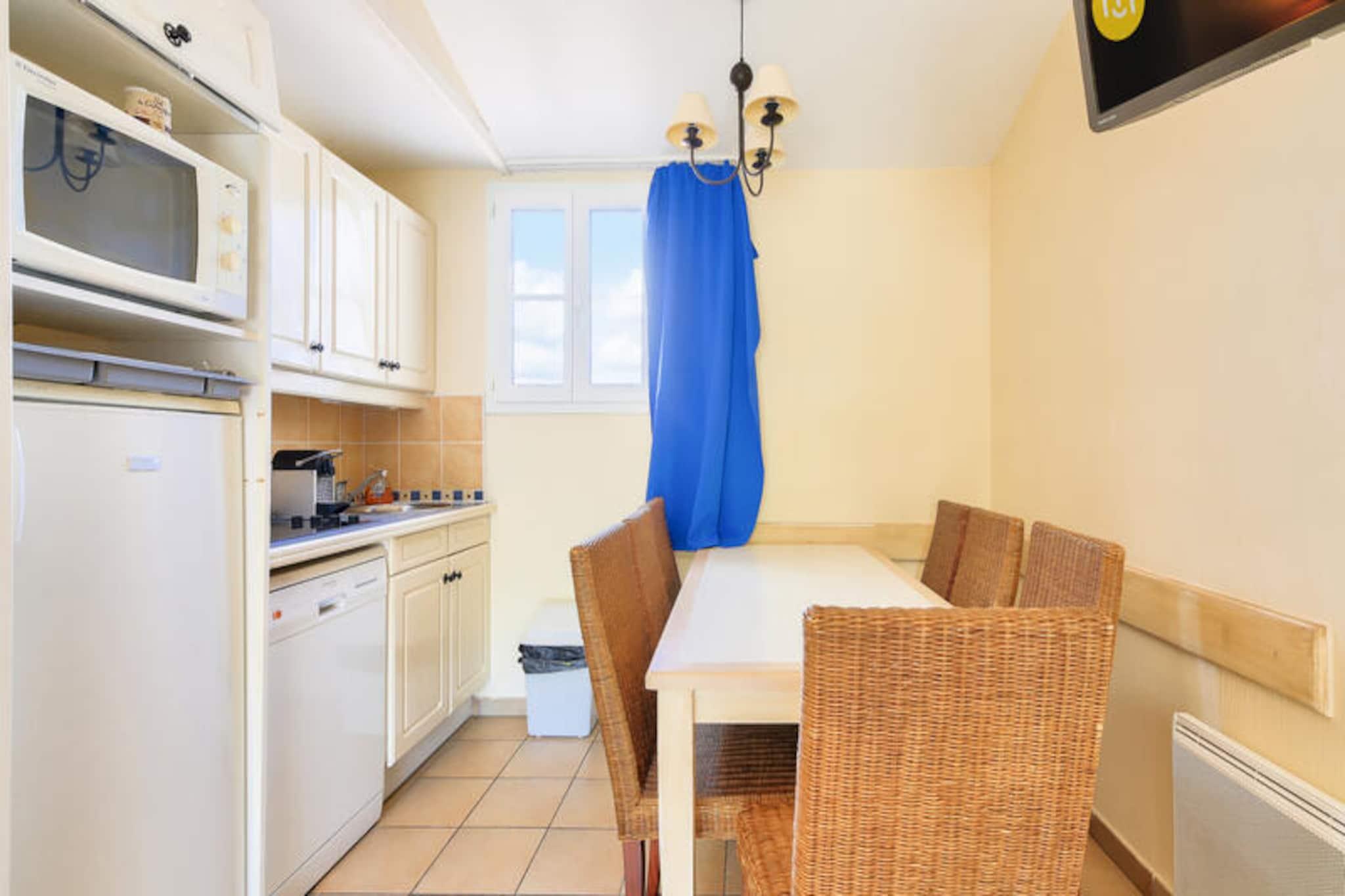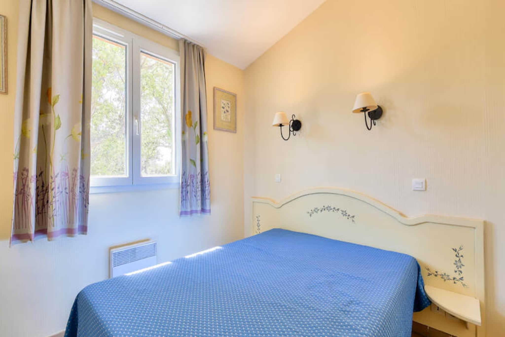 Denne lejlighed på 35 m² kan rumme op til 4 personer og ligger på 2. sal og tilbyder et hyggeligt opholdsrum med en sovesofa og en udtræksseng i stuen. Soveværelset har en dobbeltseng, mens kabineområdet er udstyret med køjesenge, perfekt til en familie eller en lille gruppe. Ejendommen er kæledyrsvenlig, så dine lodne ledsagere kan deltage i ferien. For ekstra komfort har lejligheden balkon med udsigt over skoven, badeværelse med badekar og elektrisk håndklædetørrer. Boligen er bekvemt placeret i nærheden af ??lokale attraktioner, med butikker og aktiviteter kun 100-500 meter væk. En 3 km afstand bringer dig til sandstranden, perfekt til at nyde Middelhavets sol. I nærheden kan du udforske den provencalske landsby Grimaud, eller gå en tur gennem den berømte by Saint-Tropez. For udendørsentusiaster kan du besøge de omkringliggende bakker, såsom Croix Valmer og Ramatuelle, eller nyde det lokale tivoli i Luna Park. Resortet tilbyder også nem adgang til landsbyen Plan de la Tour, ideel til en afslappet aftentur. Lejligheden er veludstyret med et semi-åbent amerikansk køkken, komplet med vigtige apparater såsom køleskab, ovn og komfur. Badeværelset er udstyret med badekar, elektrisk håndklædetørrer og hårtørrer for din bekvemmelighed. En udendørs parkeringsplads er til rådighed for gæster, og yderligere faciliteter omfatter en overdækket balkon med siddepladser til afslapning.