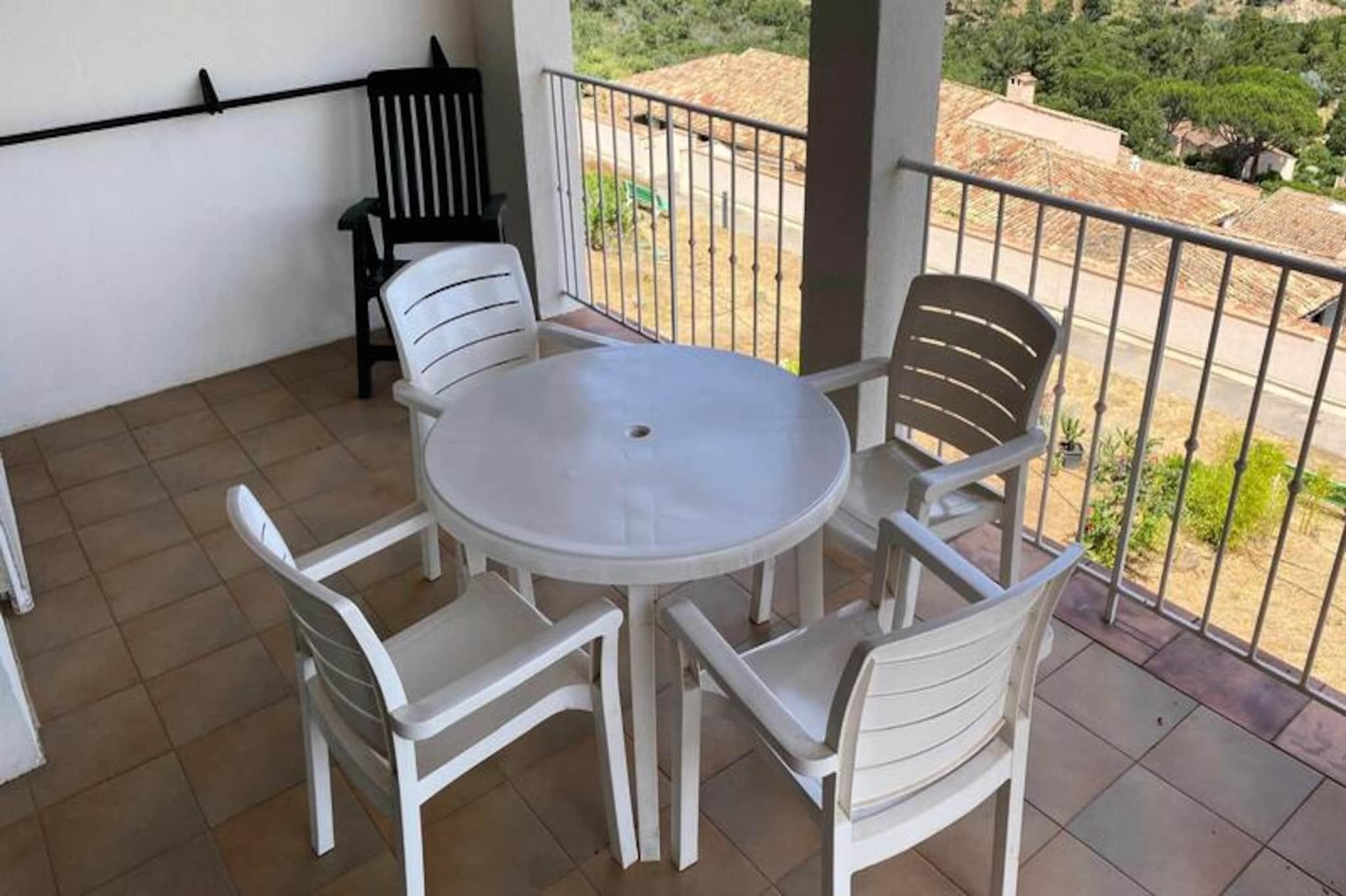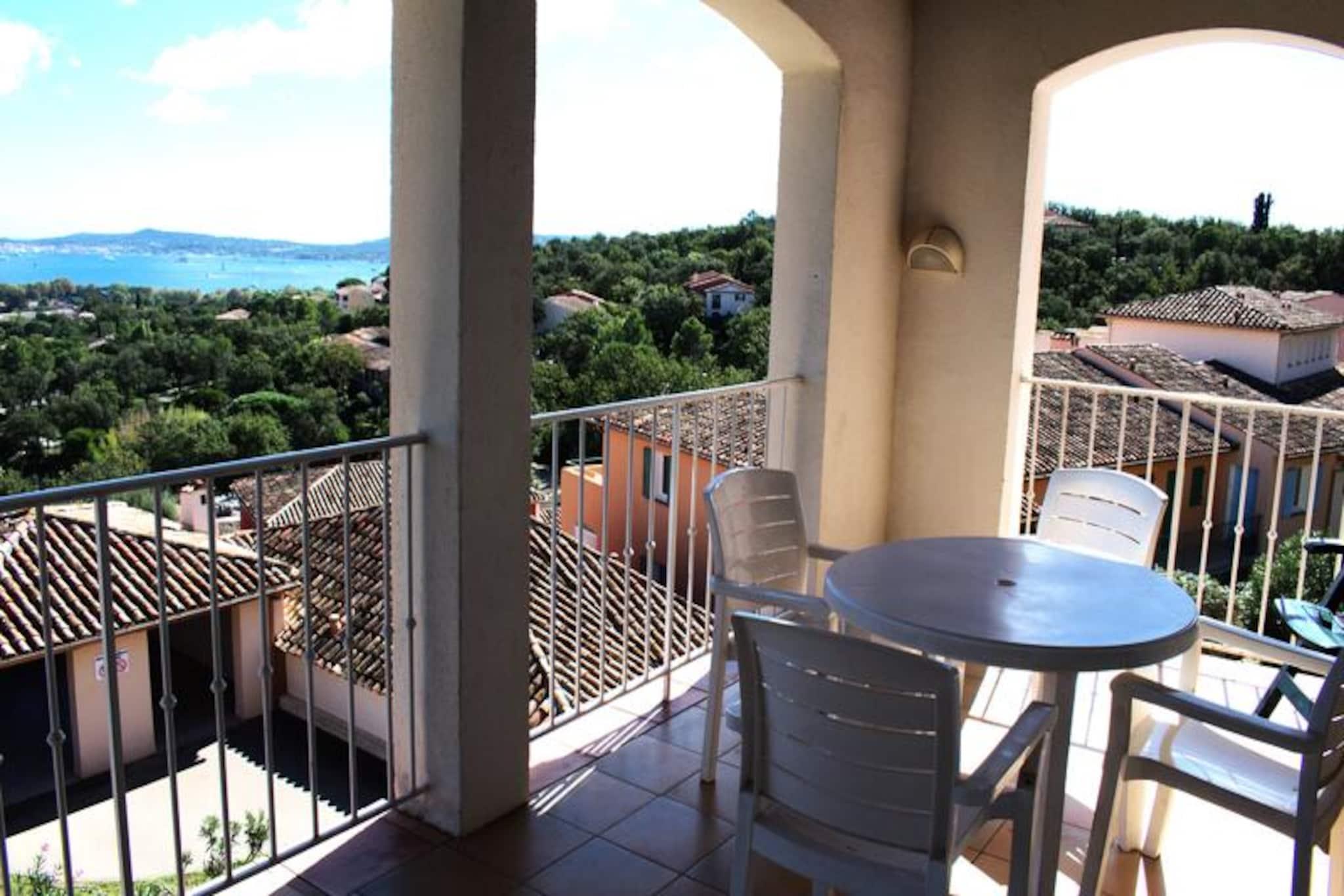 Dette smukke feriehus tilbyder komfortabel indkvartering med en r?kke faciliteter. Lejligheden har opholdsstue med sovesofa, sovev?relse med dobbeltseng og badev?relse med badekar. Der er ogs? et separat toilet for ekstra bekvemmelighed. K?ledyr er tilladt mod et ekstra gebyr, med forudg?ende godkendelse p?kr?vet. En overd?kket terrasse giver en dejlig havudsigt, og til ejendommen h?rer en overd?kket parkeringsplads. Wi-Fi er tilg?ngeligt mod et gebyr, og yderligere tjenester s?som leje af linned og h?ndkl?der er tilg?ngelige p? stedet. Denne ejendom ligger i den fantastiske region Saint-Tropez, kun 3 km fra en sandstrand. G?sterne kan udforske de n?rliggende landsbyer Grimaud, Ramatuelle og Plan de la Tour, perfekt til en afslappet g?tur eller middag. Bes?g den maleriske Lavandou-strand eller nyd aktiviteter i Grimaud-havnen. Underholdningsmuligheder, herunder et tivoli og udend?rs aktiviteter s?som tennis, petanque og mountainbiking, er alle i n?rheden. Feriehuset har et fuldt udstyret k?kken til selvforplejning, en rummelig opholdsstue og praktiske faciliteter s?som en opvaskemaskine. Boligen har en opvarmet swimmingpool og adgang til fitnessrum og sauna. Yderligere fritidsmuligheder omfatter cykeludlejning, en b?rneklub og en restaurant, der serverer provencalsk k?kken.