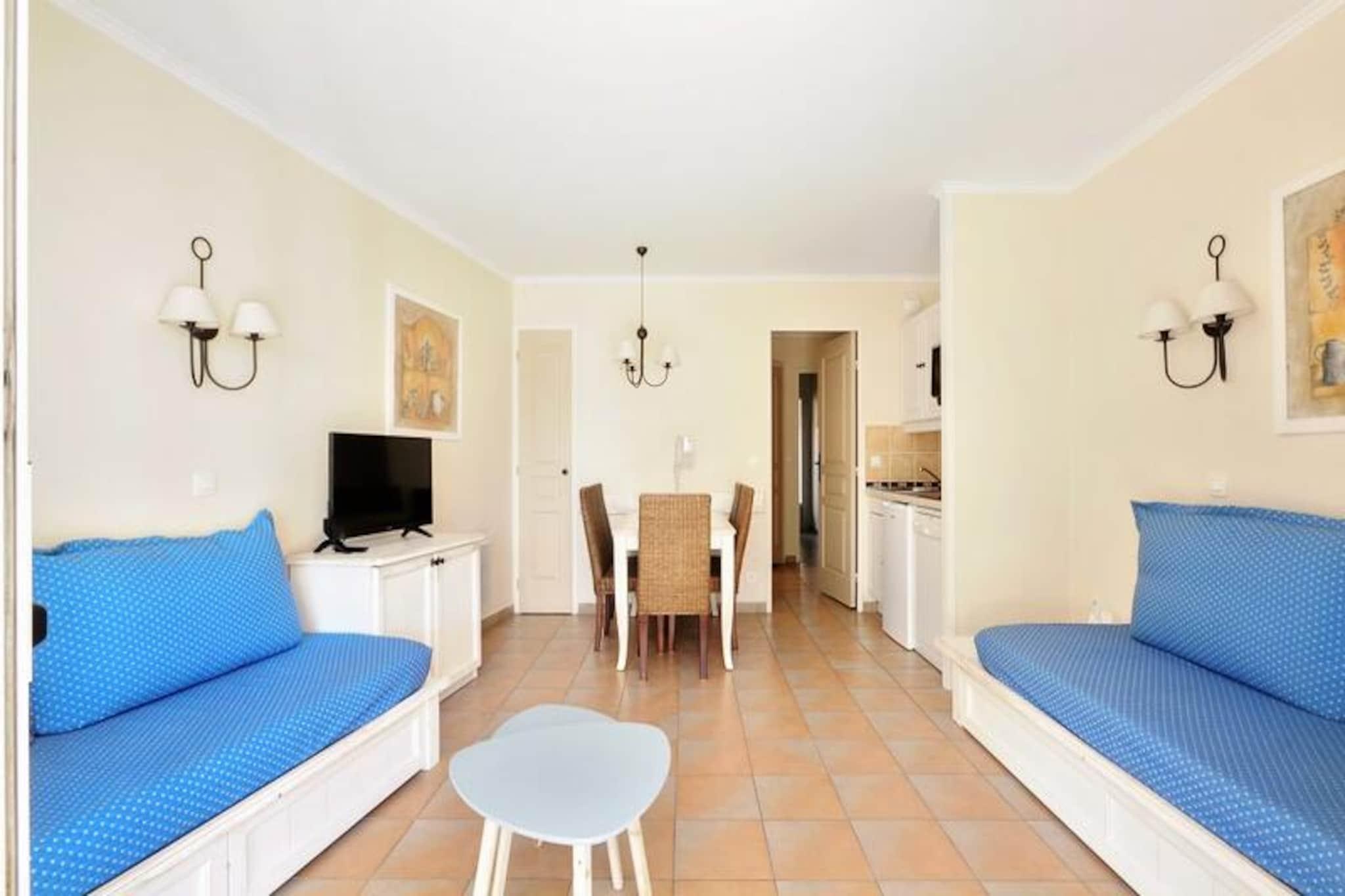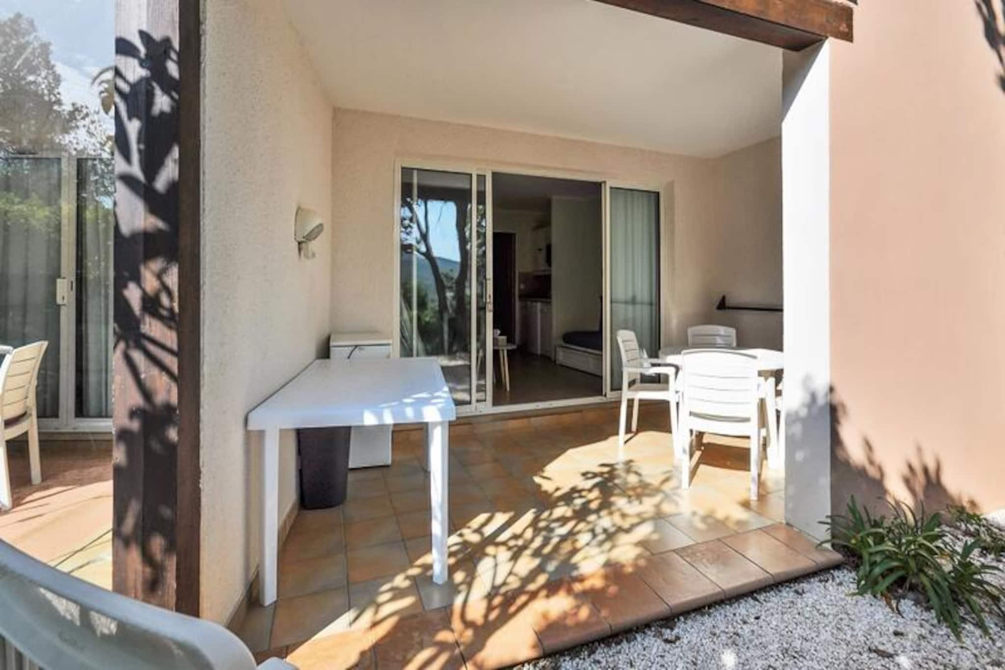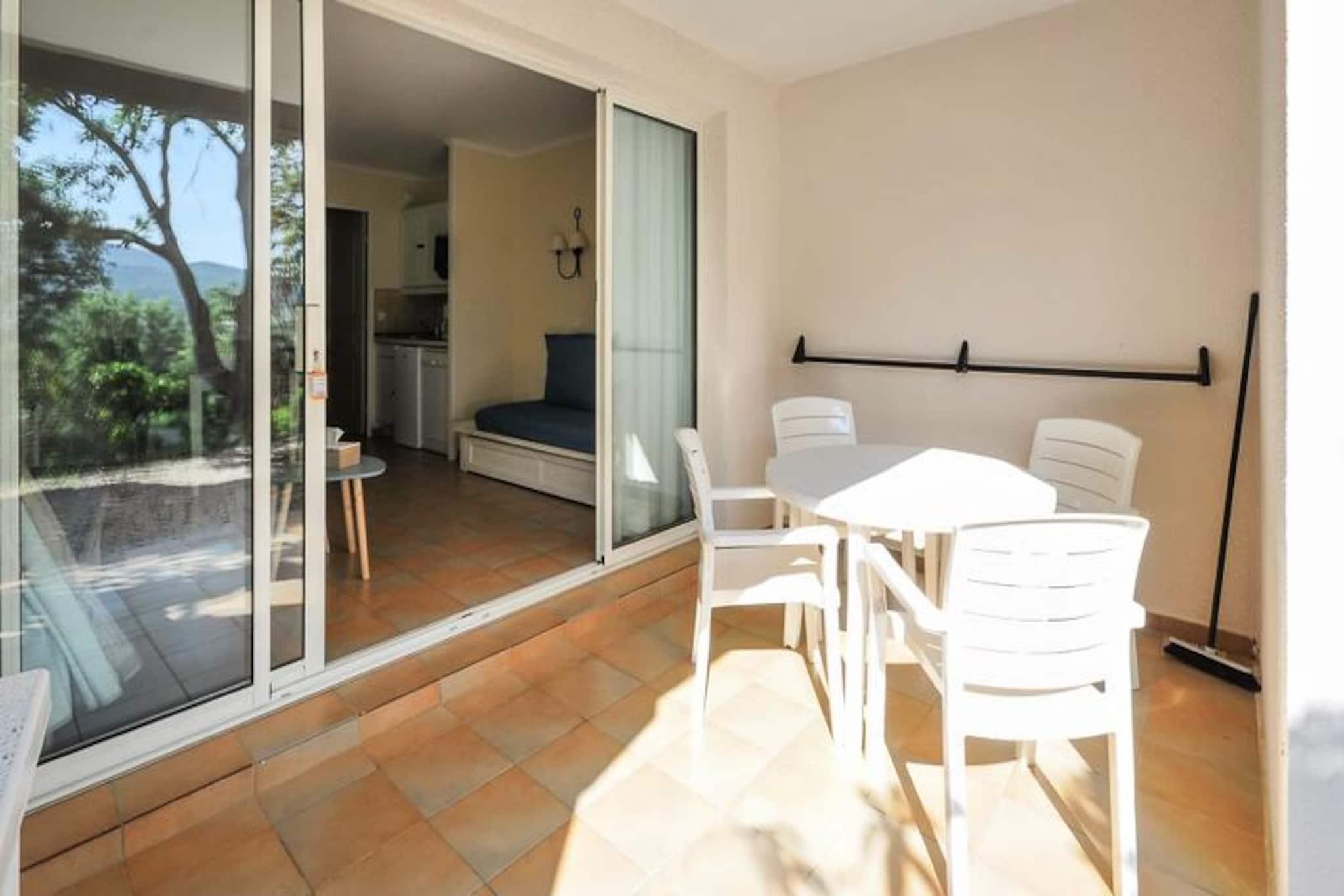 Denne charmerende lejlighed tilbyder et behageligt ophold for op til 4 g?ster, og byder p? et hyggeligt sovev?relse med en dobbeltseng og et opholdsomr?de med 3 sovesofaer. Det er k?ledyrsvenligt, med et ekstra gebyr for k?ledyr. Faciliteterne inkluderer Wi-Fi (afh?ngig af tilg?ngelighed), tv og et fuldt udstyret k?kken. Lejligheden har ogs? et badev?relse med badekar-bruser, separat toilet og en overd?kket terrasse med have. En parkeringsplads er tilg?ngelig, afh?ngigt af tilg?ngelighed. Sengelinned og h?ndkl?der er tilg?ngelige mod et till?gsgebyr, og slutreng?ring er obligatorisk. Ejendommen ligger i et natursk?nt anlagt omr?de p? 25 hektar, kun 3 km fra en sandstrand og tilbyder nem adgang til lokale attraktioner s?som Grimaud, Saint-Tropez og Croix Valmer. Den n?rliggende landsby Plan de la Tour er perfekt til aftenture, spisning og is. For en sjov dag ude, bes?g Luna Park tivoli eller udforsk den smukke Lavandou strand. Boligen tilbyder ogs? forskellige fritidsaktiviteter, herunder tennisbaner, volleyball og en b?rneklub (tilg?ngelig fra juli til august). Lejligheden indeholder et fuldt udstyret k?kken med alle n?dvendige apparater, s?som komfur, k?leskab og kaffemaskine, hvilket g?r det nemt at tilberede m?ltider. Ejendommen tilbyder flere fritidsmuligheder, s?som et vandomr?de med pools, en restaurant med provencalsk k?kken og cykeludlejning om sommeren. Yderligere tjenester s?som sengelinned, h?ndkl?der og reng?ring er tilg?ngelige mod et till?gsgebyr.