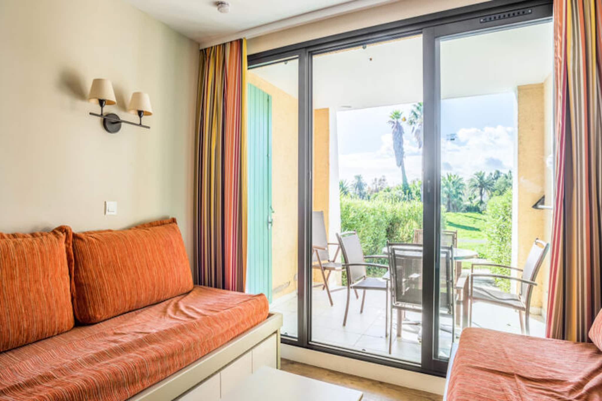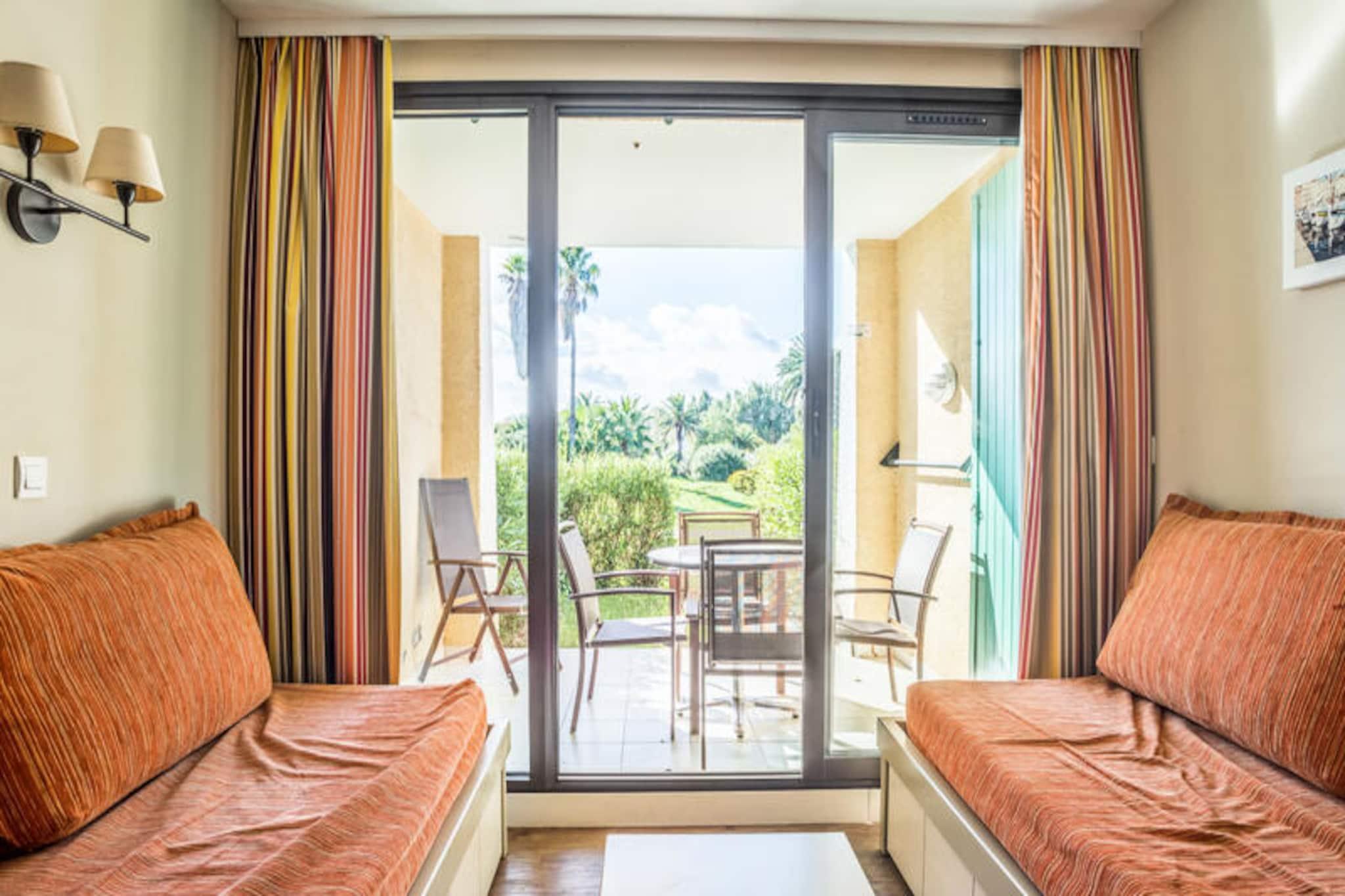 Denne charmerende ferielejlighed ligger fredfyldt omgivet af frodige grønne områder. Opholdsrummet inkluderer en hyggelig stue med to enkeltsovesofaer og en trilleseng, der tilbyder komfortable sovearrangementer for op til tre gæster. Soveværelset har en dobbeltseng, der giver et afslappende tilflugtssted. Lejligheden har også et badeværelse med badekar, et separat toilet og en privat terrasse til udendørs afslapning. Kæledyr er tilladt, og gæsterne kan nyde gratis adgang til boligens udendørs swimmingpool, som er åben fra april til oktober. Ejendommen er ideelt beliggende kun 10 km fra den berømte Saint-Tropez, hvilket gør den perfekt for dem, der ønsker at udforske den ikoniske kystby. Derudover ligger den sydlige port til parken kun 500 meter fra stranden, hvilket giver gæsterne mulighed for at nyde solen, havet og sandet. Det omkringliggende område byder på et væld af aktiviteter, med nærliggende caféer, markeder og lokale butikker, der giver masser af muligheder for at opleve den provencalske livsstil. Lejligheden har et fuldt udstyret køkken, åbent til stuen, så gæsterne nemt kan tilberede deres måltider. Den rummelige opholdsstue omfatter et spisebord med plads til fem. Der er gratis udendørs parkering på stedet, og gæsterne kan også nyde adgang til boligens udendørs swimmingpool. Yderligere faciliteter omfatter Wi-Fi (afhængigt af tilgængelighed), sengelinned og muligheden for at anmode om skift af håndklæder mod et ekstra gebyr.