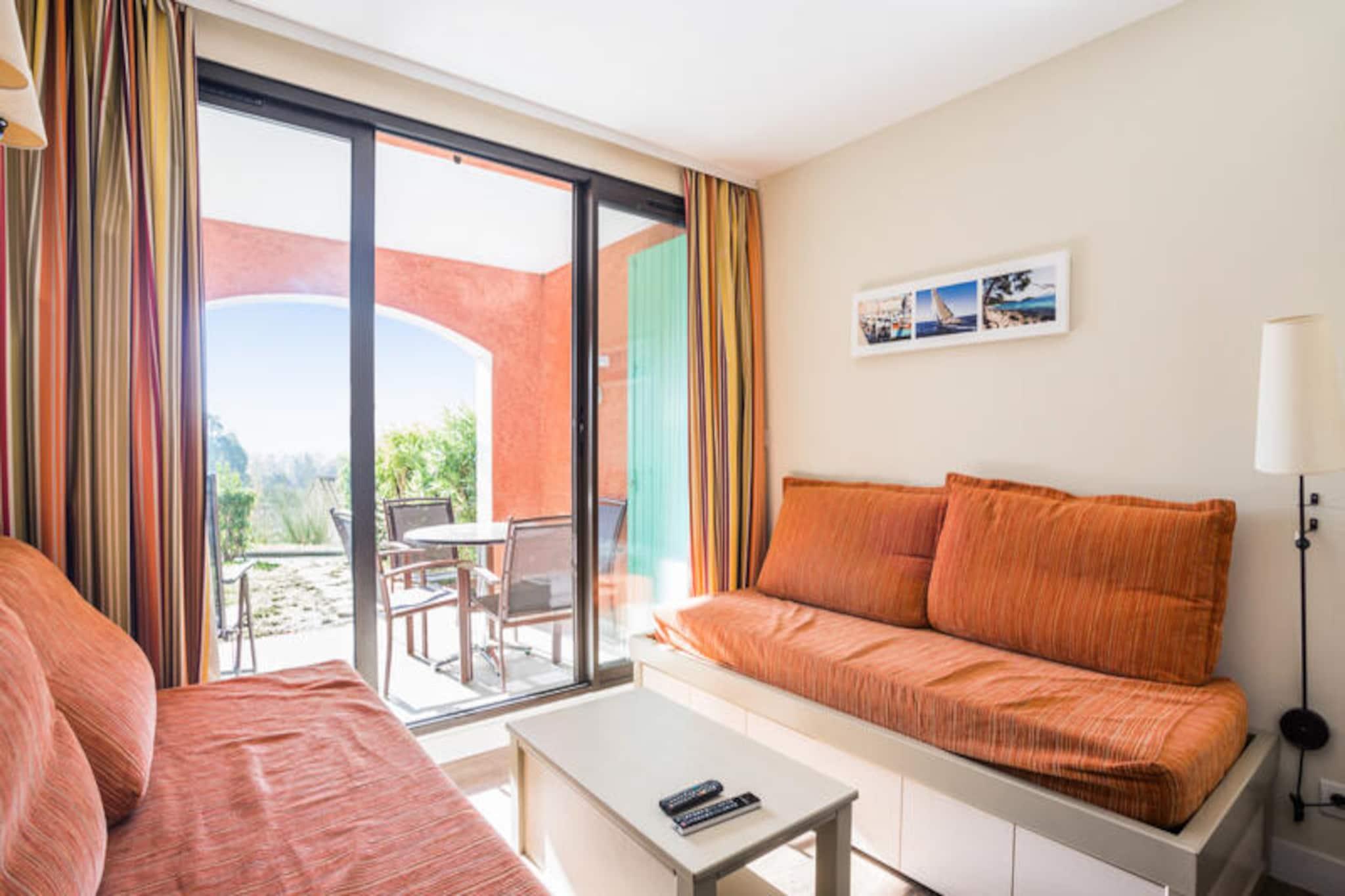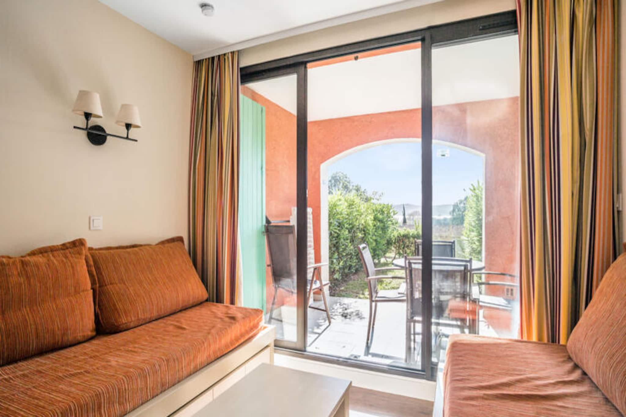 Beliggende n?r Massif des Maures, tilbyder denne charmerende feriebolig et fredeligt tilflugtssted p? en 16 hektar stor ejendom med blomster. Lejligheden indeholder en stue med to enkeltsovesofaer, et sovev?relse med dobbeltseng, et badev?relse med badekar og et separat toilet. Terrassen og haven giver en dejlig udend?rs plads til at slappe af, og en gratis parkeringsplads er tilg?ngelig. K?ledyr er velkomne (sp?rg venligst for ekstra gebyrer), og sengelinned er inkluderet, mens h?ndkl?der er tilg?ngelige mod et ekstra gebyr. Beliggende kun 10 km fra Saint-Tropez og mindre end 500 m fra stranden, placerer denne bolig dig t?t p? b?de lokale attraktioner og naturlig sk?nhed. Det omkringliggende omr?de byder p? caf?er, butikker og markeder for din bekvemmelighed. Den ber?mte strand ligger kun en kort g?tur v?k, hvilket g?r det nemt at nyde solen og havet. Lejligheden er veludstyret med et ?bent k?kken, der indeholder alt hvad du beh?ver til dit ophold. Der er et spisebord til fire, et k?leskab og madlavning. Boligen har ogs? en udend?rs swimmingpool, ?ben fra april til oktober, med udvidede ?bningstider i h?js?sonen.
