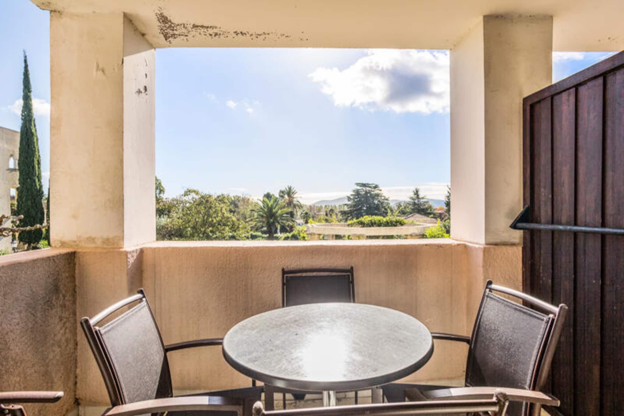 Beliggende på en smuk 16 hektar stor ejendom nær Massif des Maures, tilbyder denne feriebolig en charmerende lejlighed i provencalsk stil perfekt til et afslappende ophold. Lejligheden ligger i stueetagen og har en stue med to enkeltsovesofaer og en udtræksseng, der kan rumme op til 3 gæster. Soveværelset har en komfortabel dobbeltseng, og badeværelset har badekar-bruser med separat toilet. Kæledyr er tilladt mod et tillægsgebyr, og lejligheden inkluderer sengelinned for nemheds skyld. Boligen er ideelt beliggende kun 10 km fra Saint-Tropez og mindre end 500 meter fra stranden via den sydlige port til parken. Gæsterne kan nemt få adgang til de smukke kystområder, og den omkringliggende region er fyldt med lokale markeder, caféer og restauranter, perfekt til at opdage Provences charme. Den udendørs swimmingpool er tilgængelig for gæsternes nydelse fra april til oktober, og tilbyder det perfekte sted at slappe af i de varmere måneder. Lejligheden har et fuldt udstyret køkken åbent til stuen, så du nemt kan tilberede måltider. Et spisebord med 5 stole er tilgængeligt for at nyde måltider sammen. Lejligheden har også en balkon og et haveområde til at slappe af udendørs. Der er gratis parkeringsplads i boligen, og yderligere tjenester såsom håndklædeudlejning og WiFi er tilgængelige.