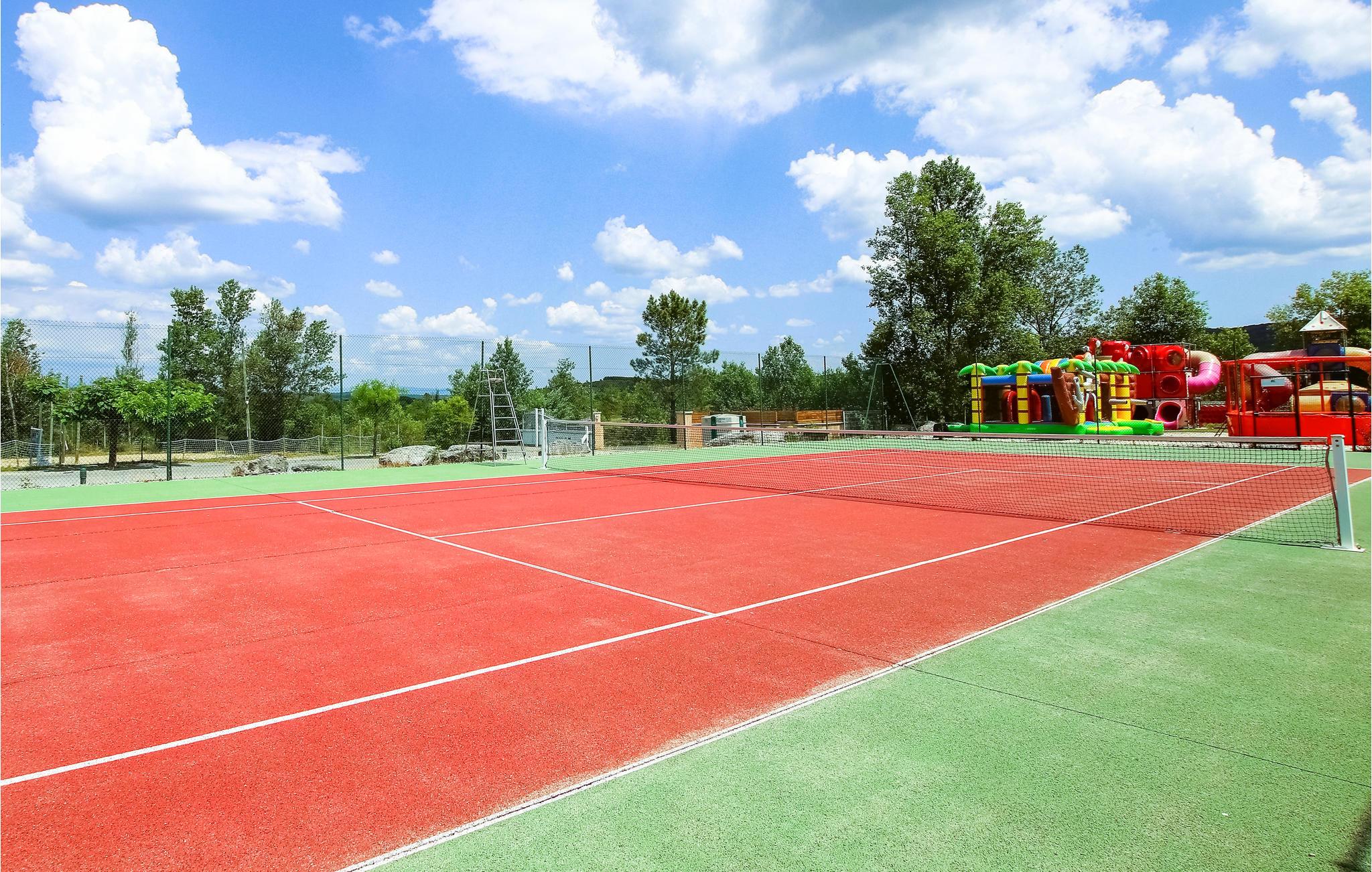 I familieferieboligen finder I en masse aktiviteter, der vil glæde store og små. Voksne kan slappe af i den enorme pool eller have det sjovt med et spil tennis eller petanque, mens børnene kan slippe dampen i soppebassinet, hoppeborgen eller legepladsen og måske møde nye legekammerater.