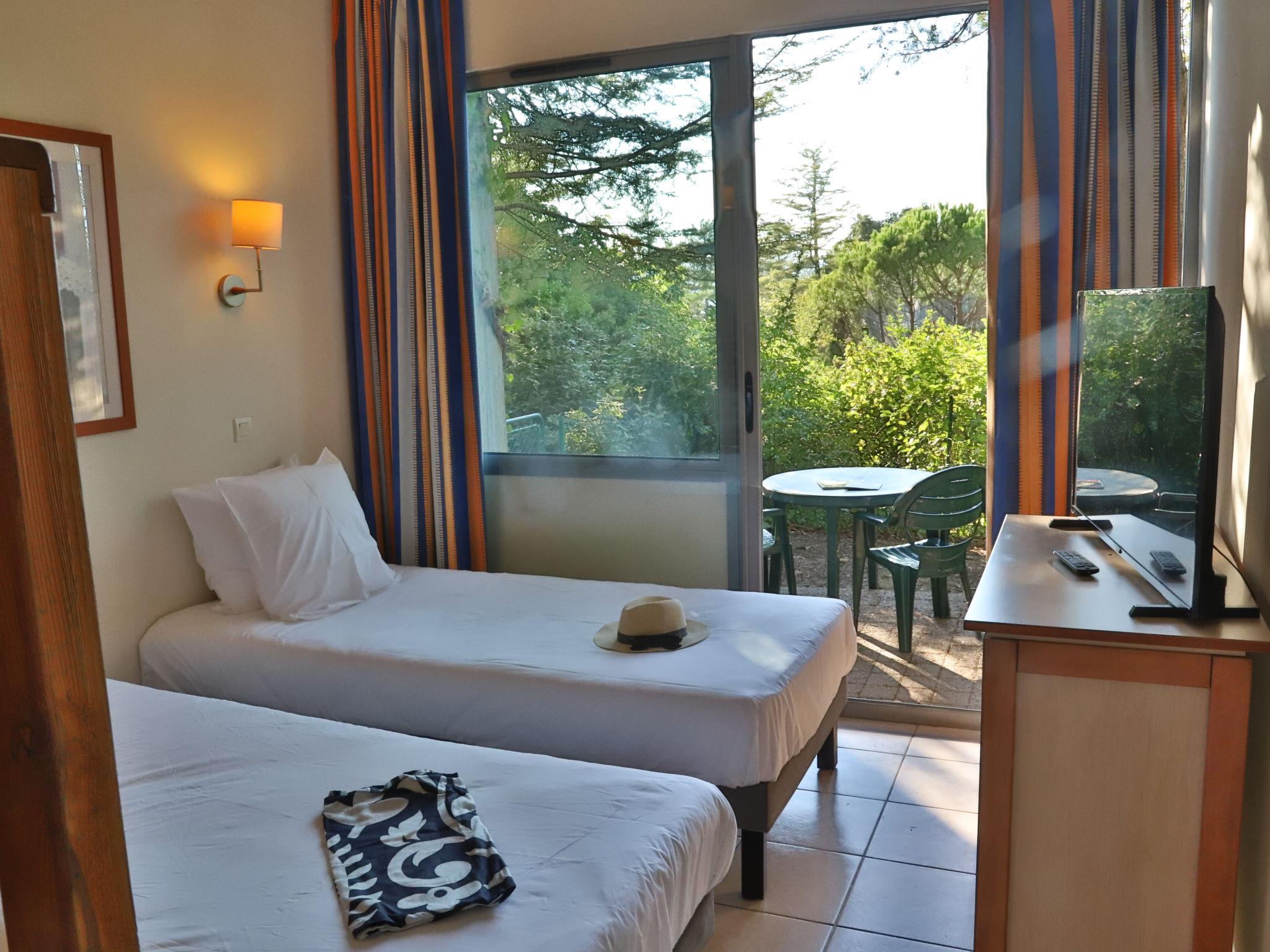 Beautiful farm estate "Le Vallon". 49 apartments in the residence. Village du Rouret 4 km from the centre of Grospierres, 13 km from the centre of Ruoms, 18 km from the centre of Vallon-Pont-d'Arc, in a quiet position, 120 km from the sea. For shared use: park 80 ha, swimming pool heated, fenced (seasonal availability: 01.Jul. - 31.Aug.). Tennis (extra), terrace, children's playground. In the complex: reception, restaurant, WiFi, sauna (extra). Hot tub (extra). Breakfast full board (extra). Parking. Bus stop "Village Meyrannes" 18 km, outdoor swimming pool 500 m. Minigolf 10 m, riding stable 1 km. Nearby attractions: Vallon-Pont-d'Arc (rivière) 18 km. Please note: car recommended. Entertainment in the season. Suitable for families, childminding in the season (extra). The photograph shows a typical example. The holiday properties may differ in living space, floorplan, equipment and furnishing.