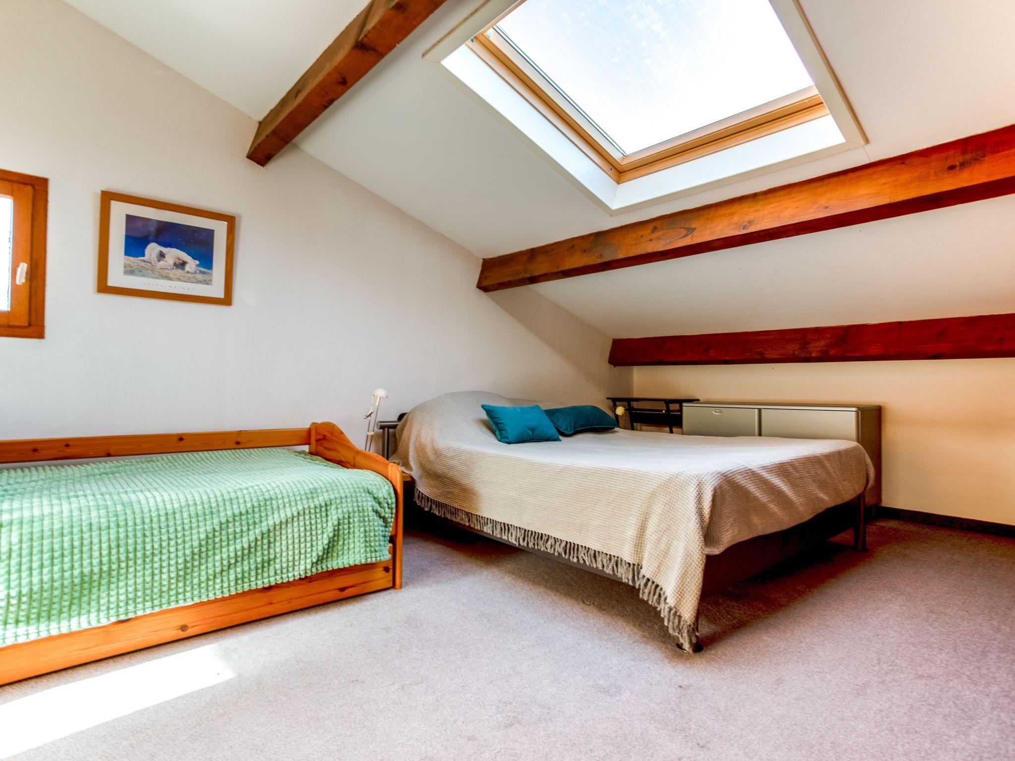 2-room terraced house 40 m2. Comfortable and beautiful furnishings: lounge with veranda with TV (flat screen). Exit to the terrace. 1 room with 1 double sofabed. Kitchenette (3 induction hot plates, microwave). Shower, sep. WC. Upper floor: gallery with 1 french bed (1 x 140 cm, length 190 cm), electric heating. Terrace 15 m2. Terrace furniture. Beautiful view of lagoon. Facilities: Internet (WiFi, extra). Parking. Please note: TV only FR. Smoke alarm. Instead of an enclosed bedroom, some sleeping areas are located in an open-plan area (gallery, alcove, etc.). Offer by a private individual according to Art. 155, IV of CGI.
