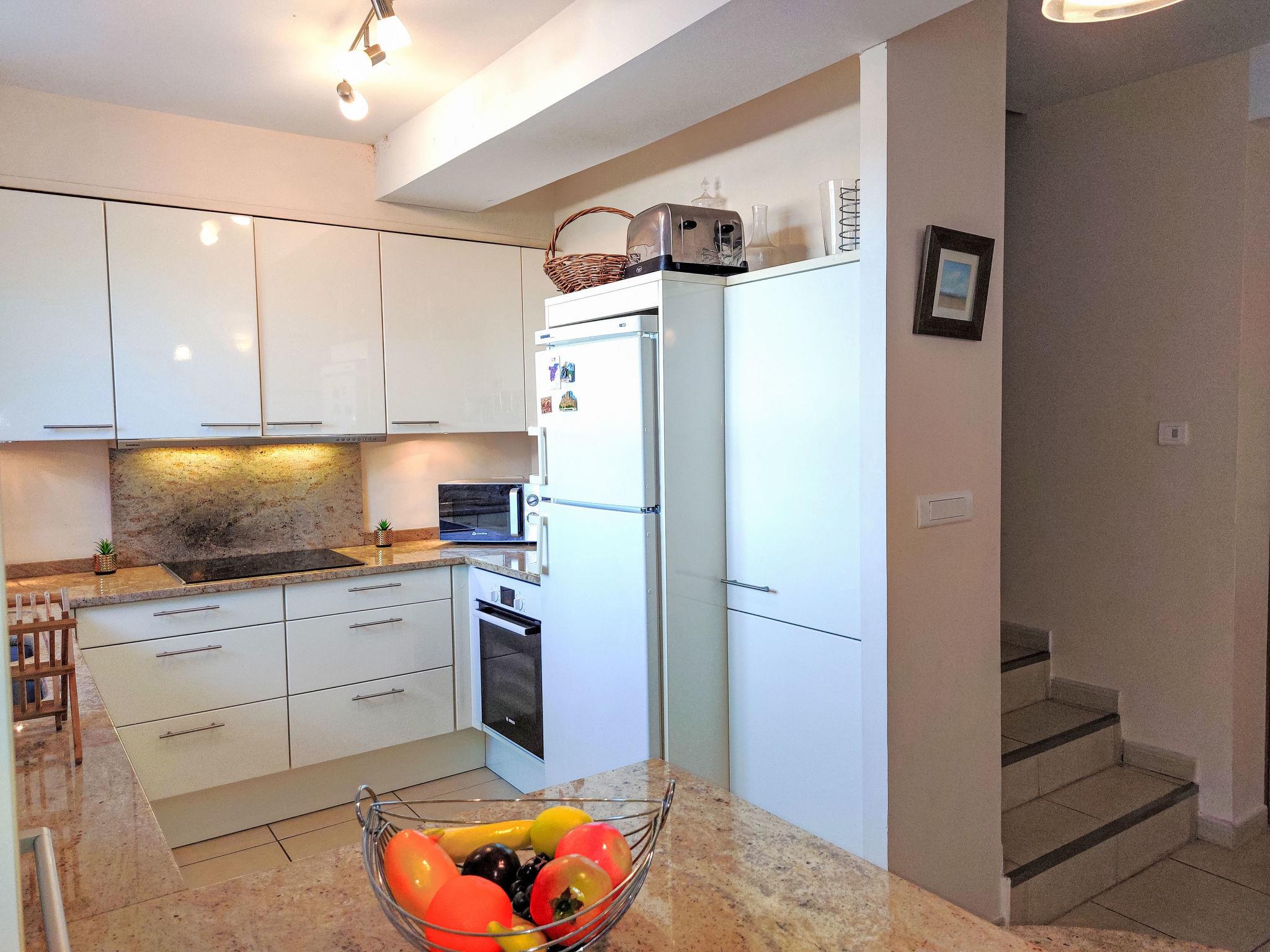 4-room terraced house 150 m2 on 3 levels. Practical and beautiful furnishings: living/dining room. Exit to the terrace, north facing position. Open kitchen (oven, dishwasher, 3 induction hot plates, freezer). On the lower ground floor: 1 room with 1 french bed (1 x 140 cm, length 190 cm). Exit to the terrace, to the patio. Shower/WC. Upper floor: gallery with 1 double sofabed (1 x 140 cm, length 190 cm). 1 room with 1 french bed (1 x 140 cm, length 190 cm). 1 room with 2 beds (80 cm, length 190 cm). Shower/WC. Electric heating. 2 terraces, north facing position, patio 50 m2. Terrace furniture, barbecue (portable). Beautiful view of lagoon. Facilities: washing machine. Internet (WiFi, extra). Please note: smoke alarm. The living room and dining room and open kitchen are located on the 1st floor with direct access to the garden by an outside staircase. Instead of an enclosed bedroom, some sleeping areas are located in an open-plan area (gallery, alcove, etc.). Offer by a private individual according to Art. 155, IV of CGI.