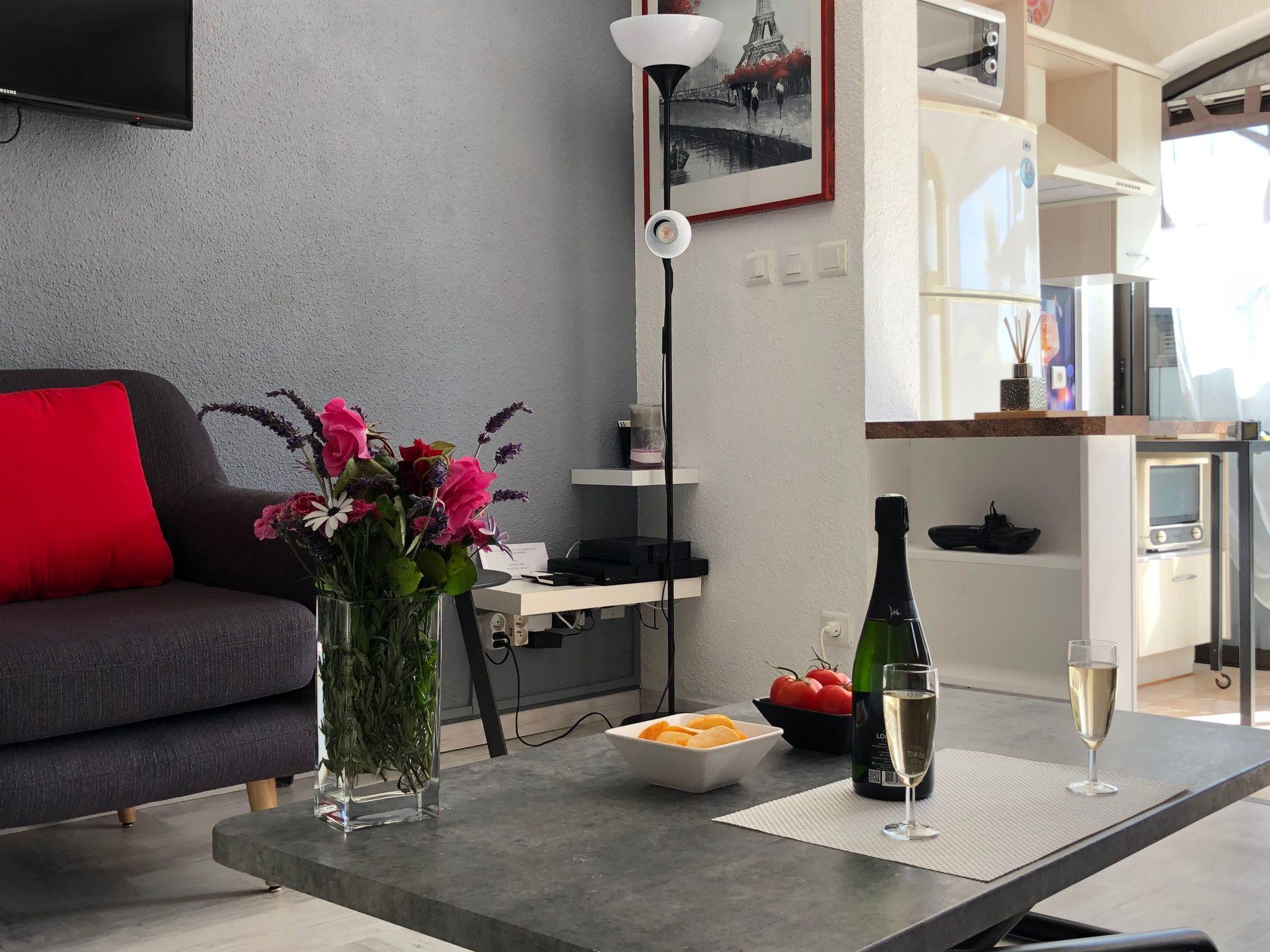 In a quiet residence, with no traffic noise, green, wooded and secure, rented holiday cottage cocooning, ground floor, about 35 m2 to which is added a garden of 38m2 "sol y sombra", where you will enjoy its tranquility.This cottage is located: