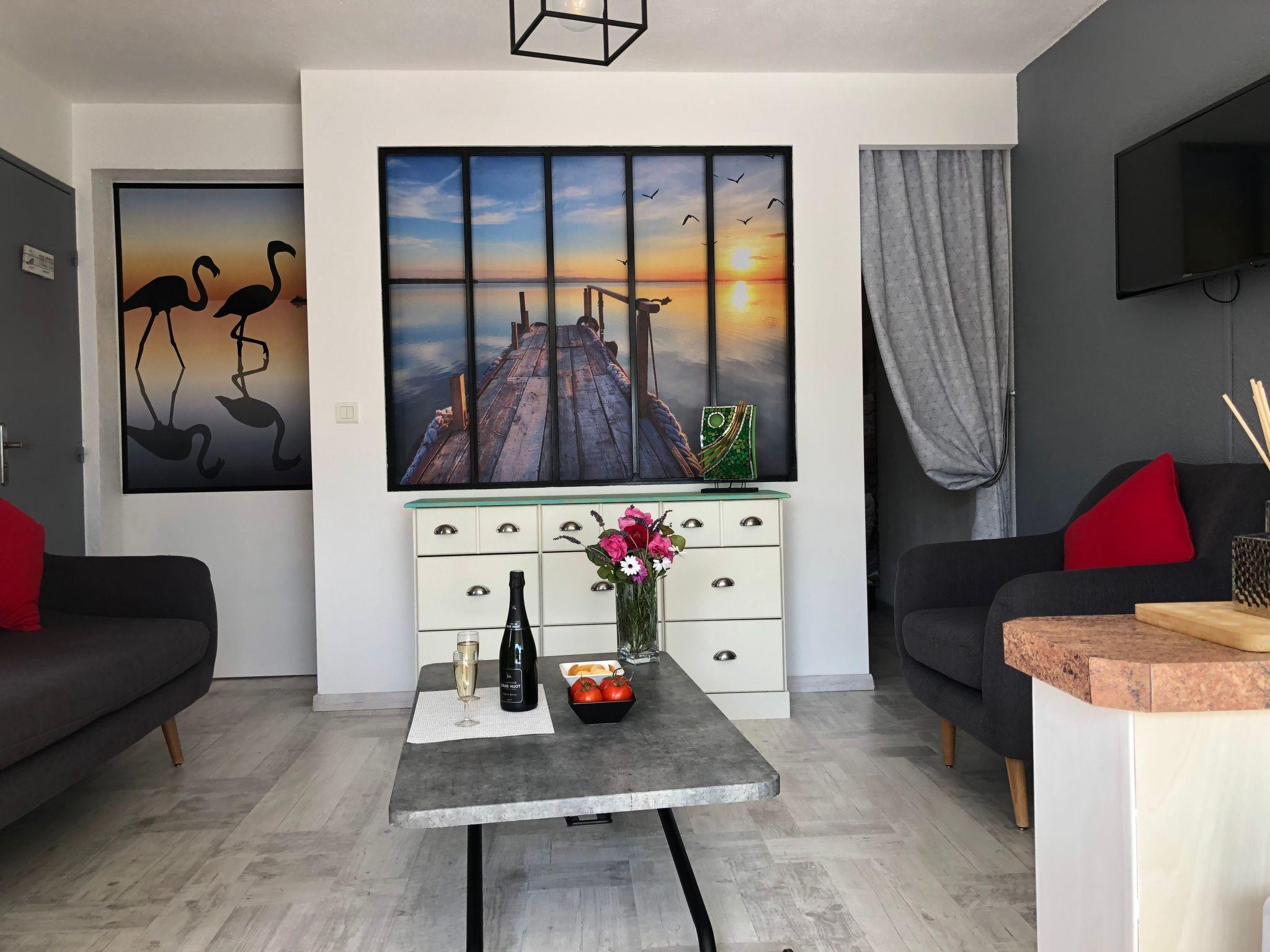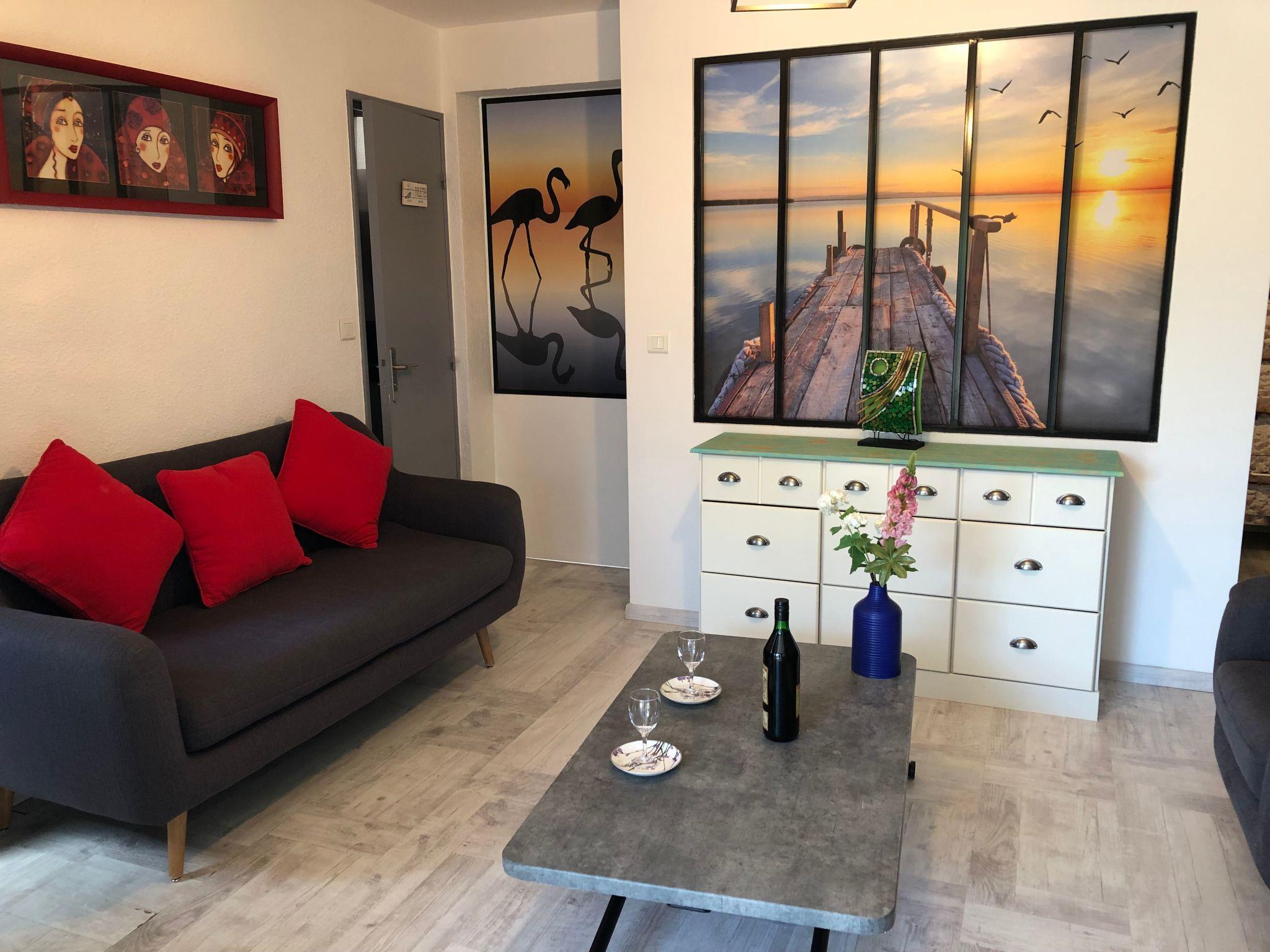 "LA PERGOLA DE LA PLAGE "EXCEPTIONAL IN GRUISSAN:RENTAL FOR 3 PEOPLE MAXIMUMIn a quiet residence, with no traffic noise, surrounded by greenery, trees and security, this cocooning gîte is on the ground floor, measuring approx. 35 m2, with a 38m2 "sol y sombra" garden, where you will appreciate the peace and quiet.This gîte is less than 5 minutes' walk from the beach, bird island, shops and restaurants.OUR PETS ARE NOT ALLOWED. A numbered parking space is available in a secure car park.OUR PETS ARE NOT ADMITTED.Numerous activities are available nearby, including boat and seaside trips, walks in the Clape massif, mountain bike trails, tree climbing, an amusement park, a spa, water sports, a riding centre, go-karting, ..... Nearby attractions: the old village, the Barberousse tower, the "Chalets", shellfish farms, vineyards.... The hinterland: Bages and its lakes, Fonfroide Abbey, the Cathar castles, Collioure, Sète, the city of Carcassonne, Sigean....TOURIST TAX is payable in cash on arrival for people over 17.