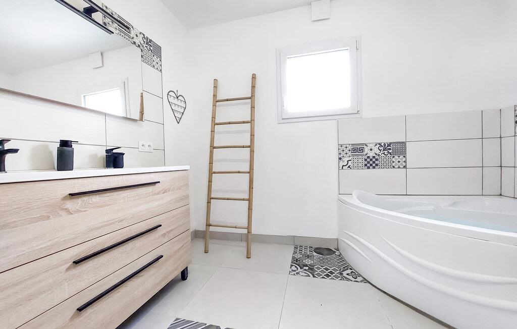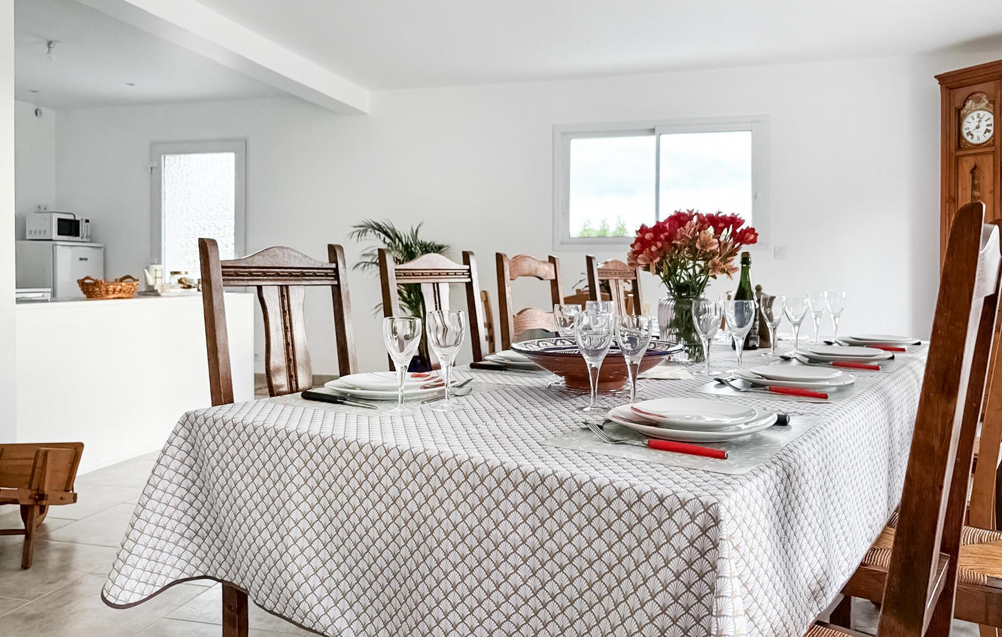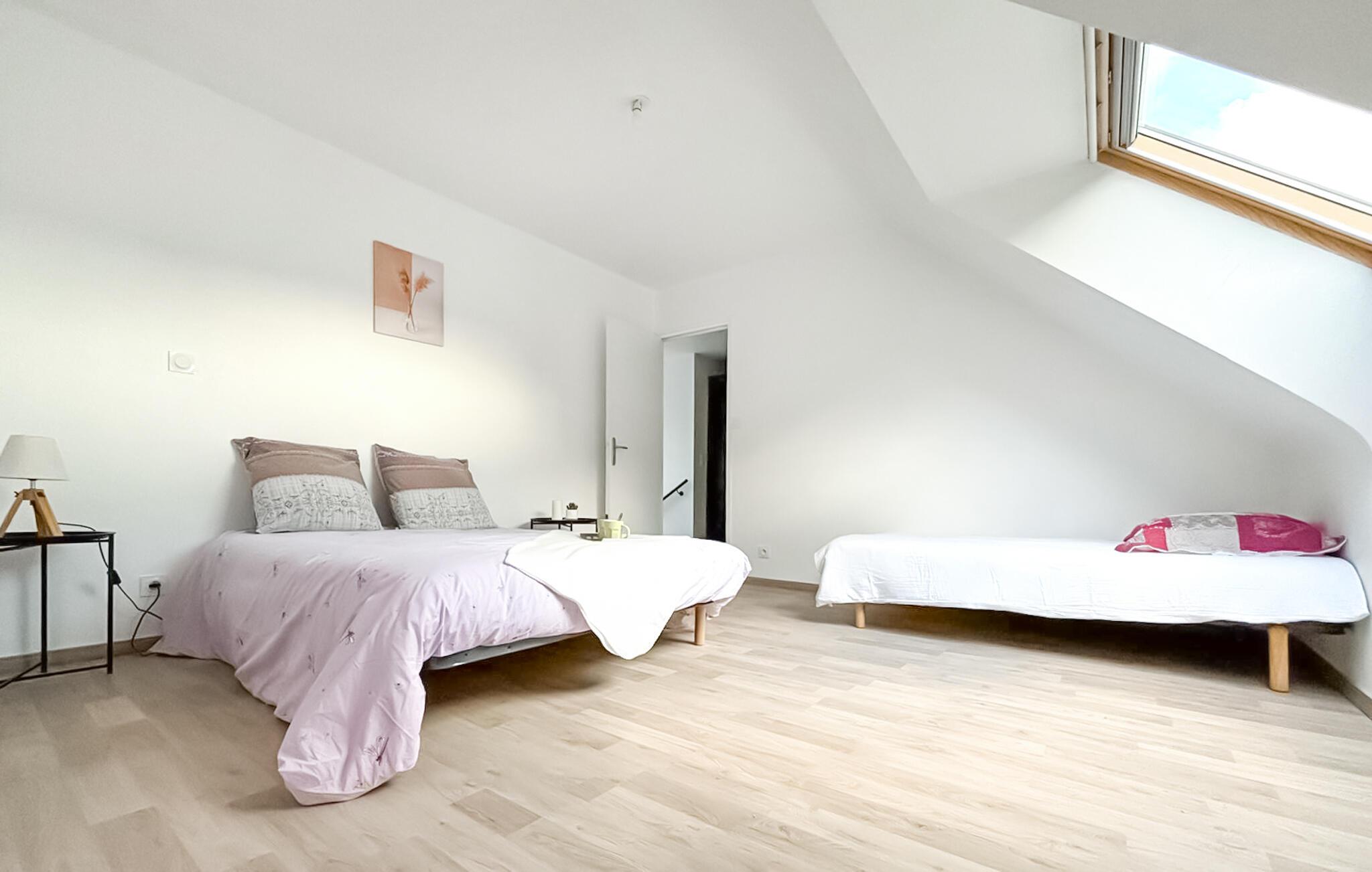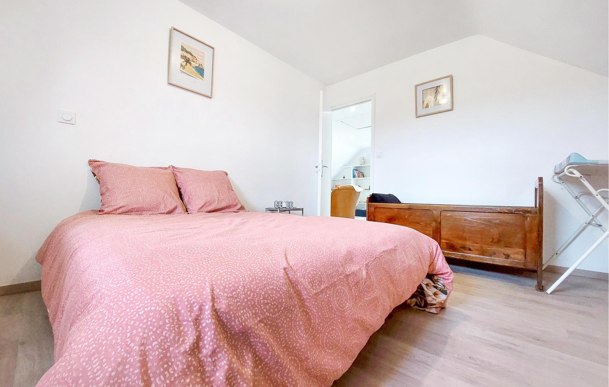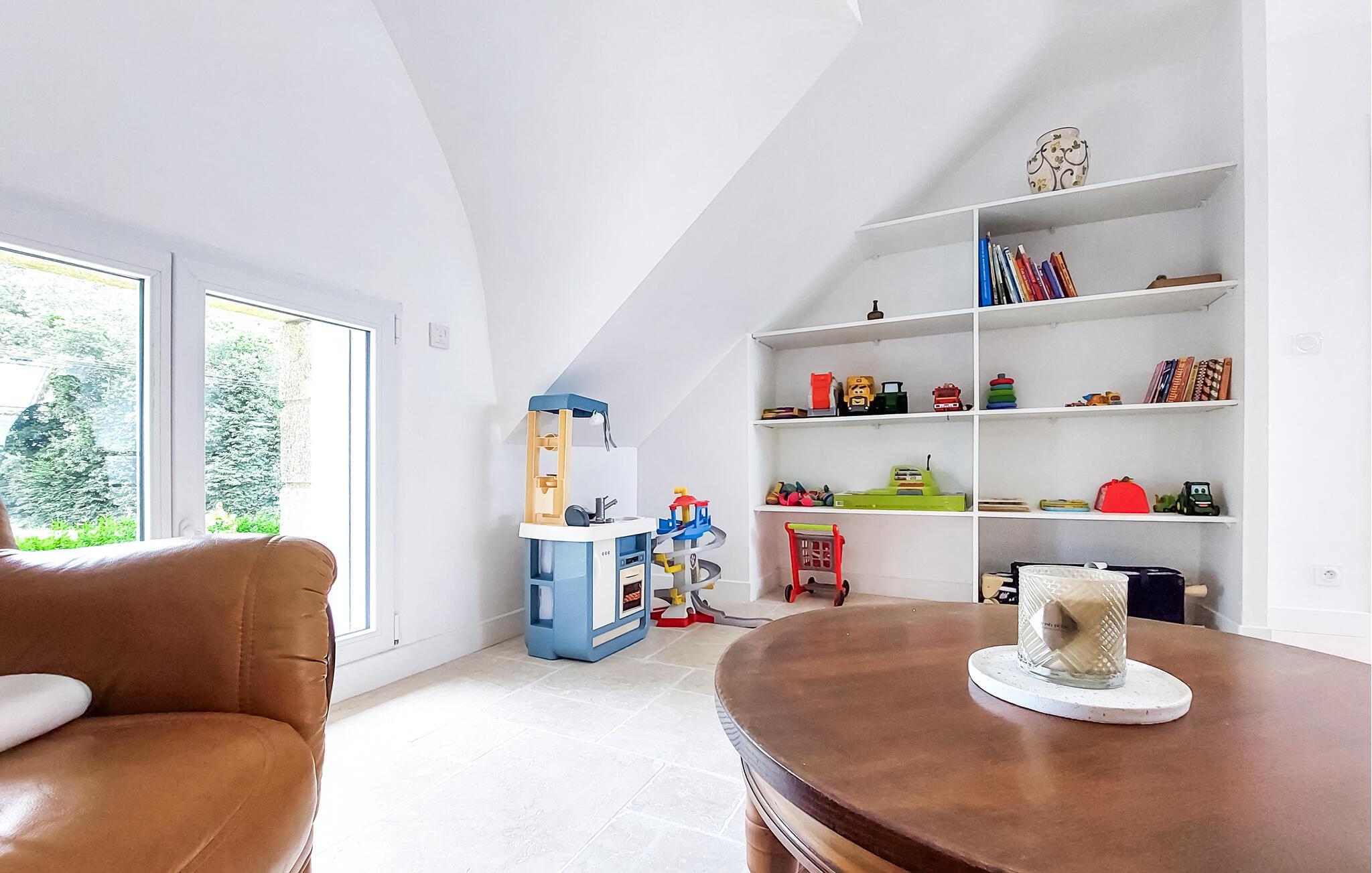 Dette lyse og rummelige feriehus i Guégon er det ideelle fristed for familier og venner, der ønsker at tilbringe tid sammen i en rolig, landlig atmosfære. Den praktiske, klassiske indretning skaber en indbydende stemning, mens de store vinduer lukker masser af dagslys ind. I stuen finder I et legeområde til børnene, der sørger for sjov og underholdning.