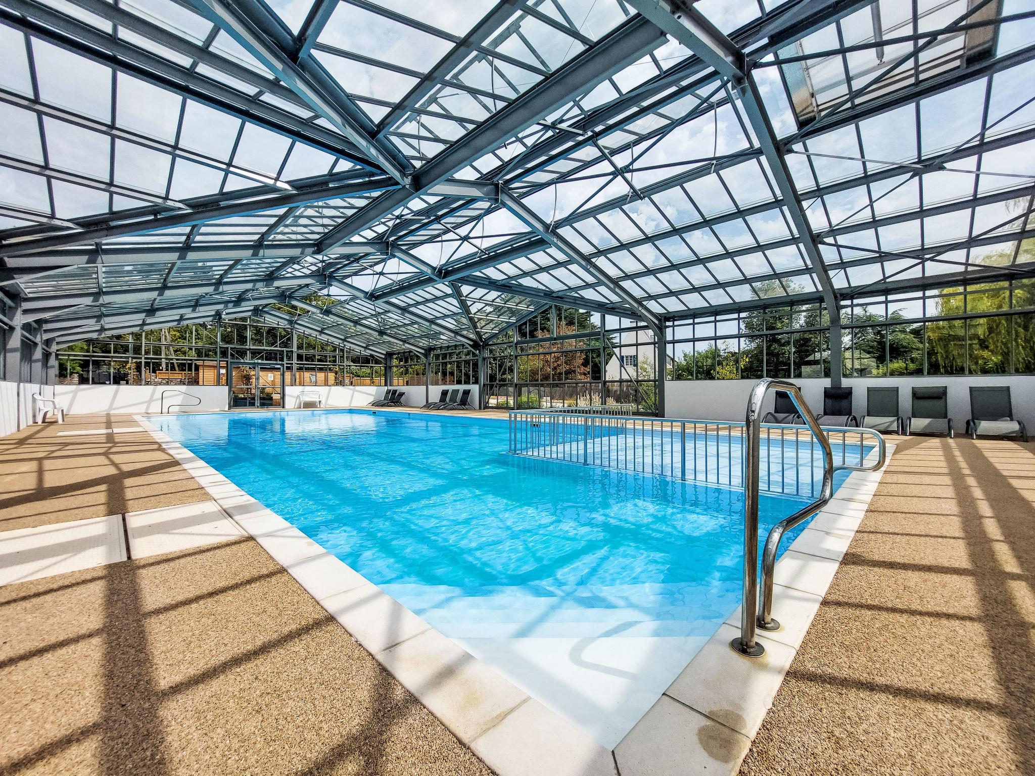 Resort "Les Cottages de La Baule", built in 2023. On the outskirts La Baule, 5 km from the centre of Guérande, 2.5 km from the sea, 2.5 km from the beach, in the countryside. For shared use: property 2 ha (fenced), indoor pool heated (20 x 8 m, depth 115 - 150 cm, seasonal availability: 02.May. - 28.Sep.). Shower/WC in the pool area, table tennis, boccia, children's playground. Private: property 200 m2, beautiful garden to relax. Storeroom available. Parking. Shop 1.2 km, supermarket 1.2 km, bus stop 1.8 km, railway station 1.8 km, sandy beach "Grande Plage de La Baule" 2.5 km. Nearby attractions: Vélocéan-Itinéraire Vélos 10 m, Marais Salants 3 km, Le Pouliguen 4.5 km, Le Croisic 10 km, Piriac sur Mer - Mesquer 15 km, Nantes - Vannnes 70 km. Hiking paths: GR34 2.5 km. Guarded residence. Residence with electric gates.