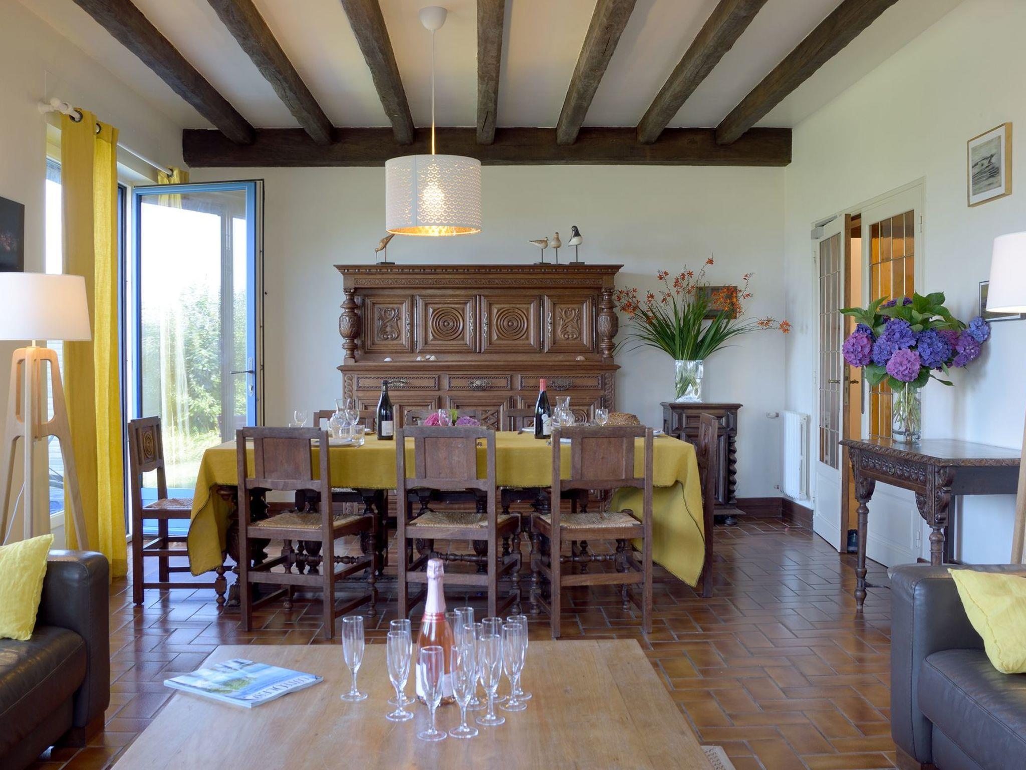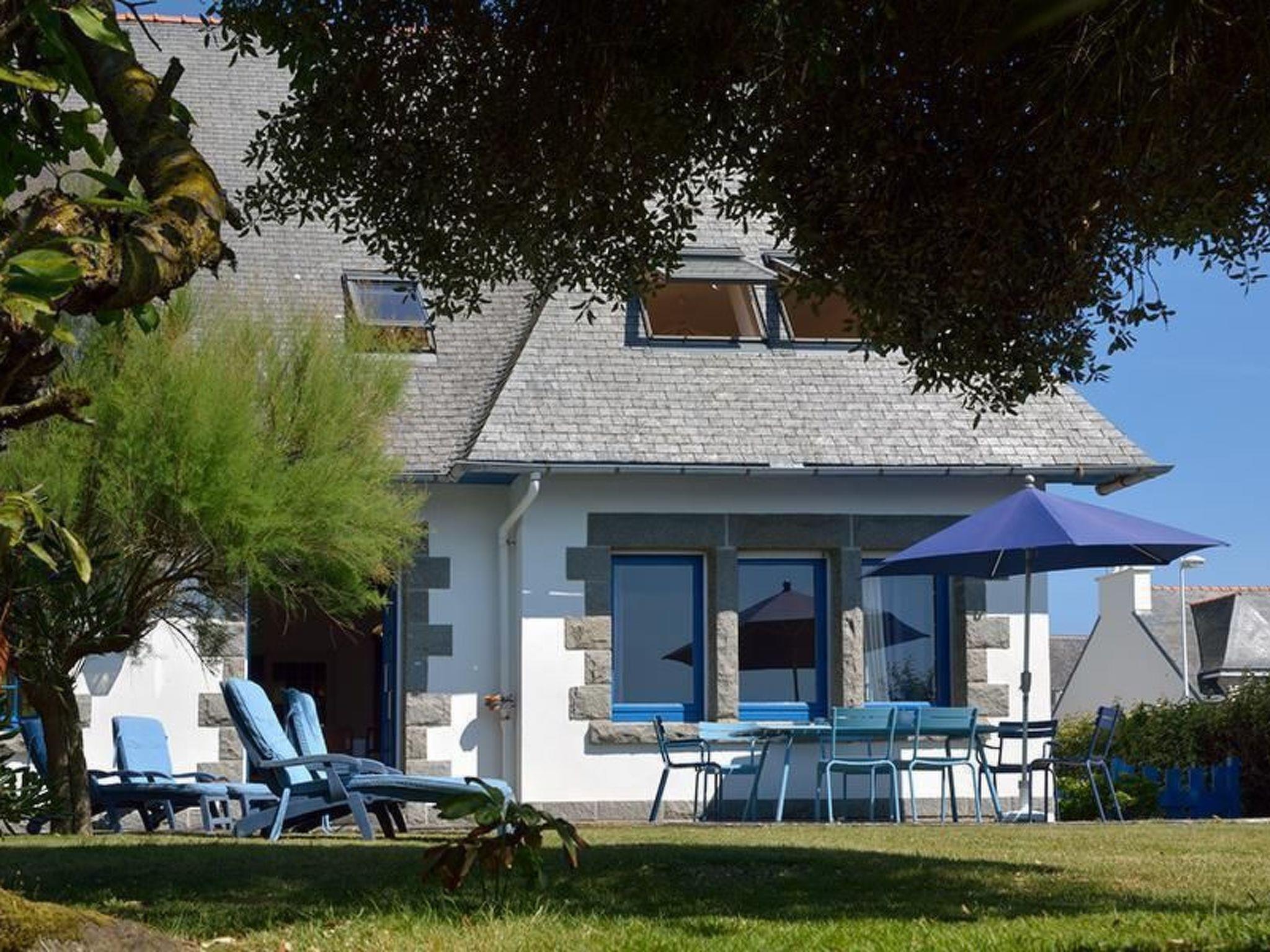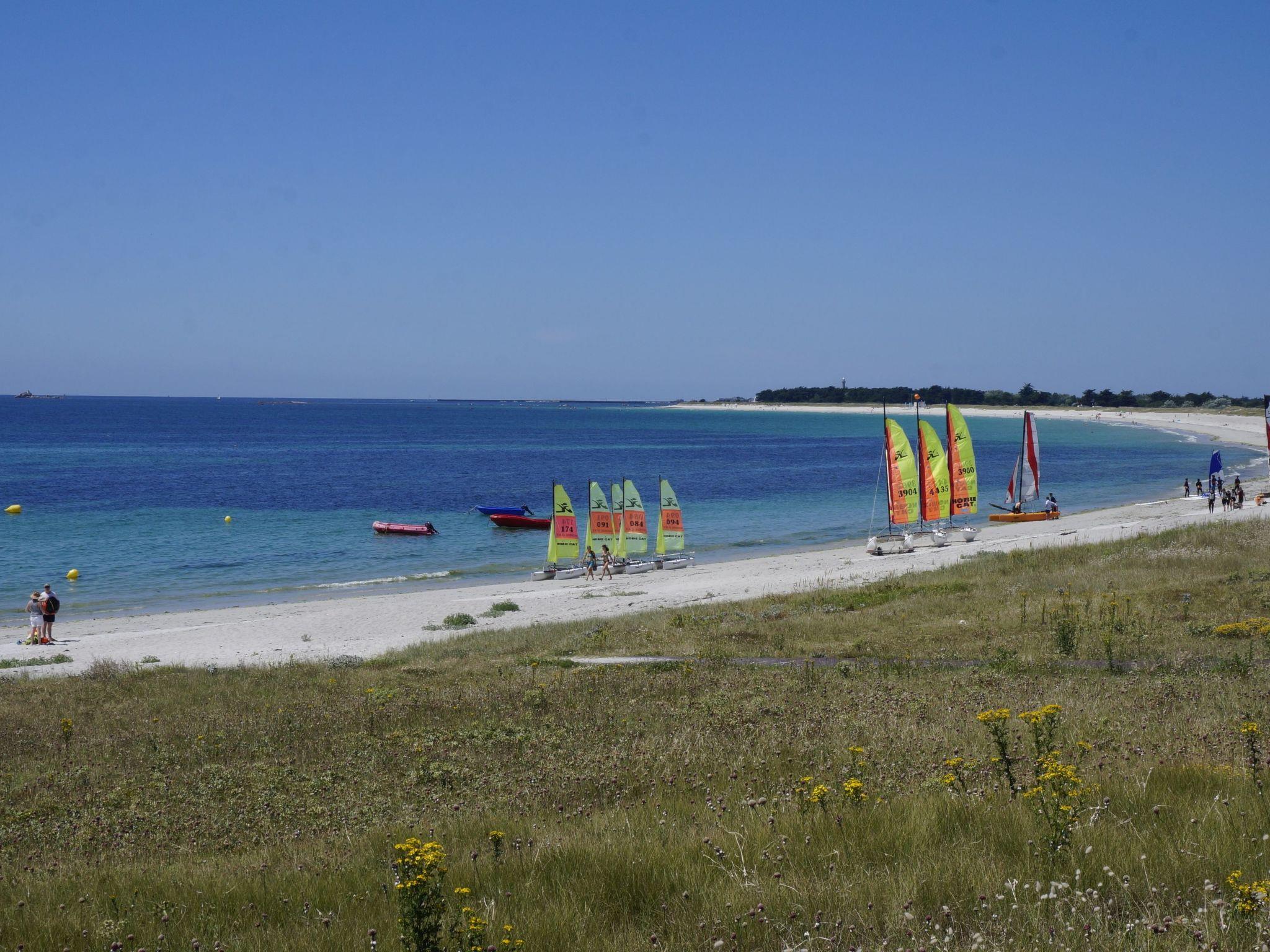 The sea is less than 100 metres away. By pushing the gate at the bottom of the garden you have direct access to the sandy beach without having to cross a road. There are many leisure activities in the area for guests who love the sea and nature. Just behind the house, about 80 metres away, there is a family beach. There are also children's playgrounds and a sailing school for children aged four and over in the immediate vicinity. Other activities include windsurfing, diving, hiking in the hinterland, cycling and horse riding. You can discover chapels, megaliths and calvaries. Another attraction is the return of the coastal boats every evening, the unloading of the catch and its sale at the fish auction. The "Haliotika" exhibition in the harbour provides an insight into the maritime world. In summer, you can visit folk festivals to discover and appreciate the authenticity and richness of Brittany. The local gastronomy highlights the freshness of seafood, fish, shellfish, seaweed and the tradition of crêpes and galettes. Shops and restaurants are just 900 metres from the house.