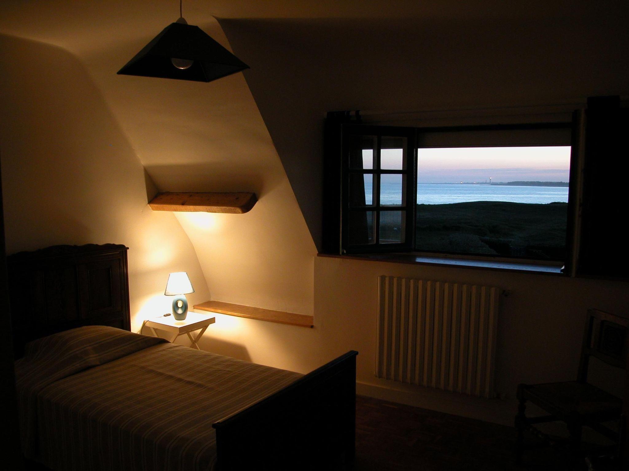 This spacious, comfortable and very well-equipped 160 m² house can accommodate a maximum of eight people. It has oil-fired central heating. On the ground floor there is a large, light-filled living/dining area (35m²) with fireplace, leather sofas, TV and DVD player. This room opens onto the sea-facing terrace and garden. The separate kitchen (17m²) was completely refurbished in 2018 and is fully equipped (5-burner cooker, large fridge, dishwasher, microwave, Nespresso coffee machine, etc). The ground floor also has a bedroom (14m²) with a 160cm double bed, as well as a separate WC, and a bathroom with shower/tub, in which there is also a washing machine and tumble dryer. The house has a total of four bedrooms. The other three bedrooms are on the first floor. The largest bedroom (23m²), with a beautiful sea view, has a 160 cm wide double bed, the second bedroom (20m²) has three 90 cm wide single beds and the third bedroom (11m²), also with a beautiful sea view, has a 110 cm wide single bed. A cot is also available. A second bathroom and separate WC are also located upstairs. All rooms (except the kitchen and bathrooms) have sea views with the Eckmühl lighthouse in the background.