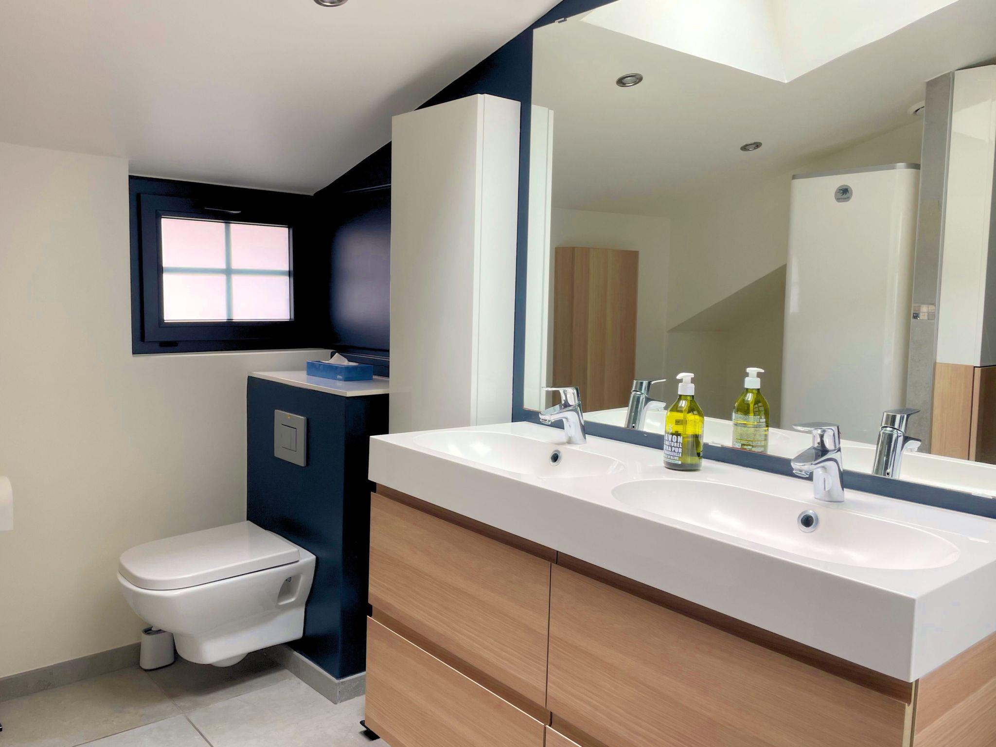 The first bedroom, on the 2nd floor, also has a bathroom with toilet, a large 160cm bed and plenty of storage space.