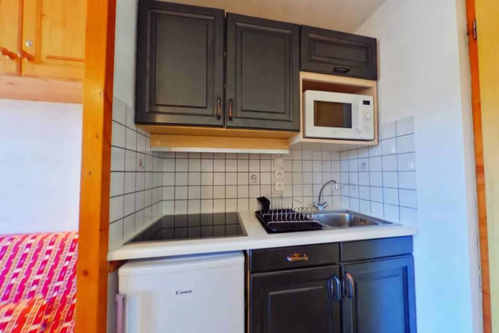 På toppen af ??hovedgaden i en charmerende alpelandsby tilbyder denne hyggelige 2-værelses alkovelejlighed et varmt og indbydende tilflugtssted for din bjergferie. Med udsigt mod syd mod den majestætiske Mont Bisanne nyder boligen rigeligt med sollys og en betagende udsigt, hvilket gør den til det perfekte sted at slappe af efter en dag med alpine eventyr. Solterrassen tilbyder et roligt sted at nyde den friske bjergluft og beundre det fantastiske landskab. \n\nLejligheden er beliggende i den hævede stueetage (tilgængelig via en halv trappe) og er omhyggeligt designet til komfort og bekvemmelighed. Den har et fuldt udstyret tekøkken, en indbydende stue, et soveværelse med en komfortabel dobbeltseng og en alkove med to køjesenge - ideelt for familier eller små grupper. Badeværelset har et separat toilet for ekstra privatliv. Bemærk venligst, at den øverste køjeseng ikke er egnet til børn under seks år. \n\nBoligen er perfekt beliggende ved siden af ??skiliftbroen og tilbyder nem adgang til pisterne og nærliggende faciliteter. Uanset om du er her for at stå på ski, vandre eller bare slappe af, finder du alt, hvad du behøver, lige i nærheden. Den sydvendte beliggenhed sikrer masser af naturligt lys hele dagen, hvilket skaber en varm og munter atmosfære. \n\nUanset om du søger spændende udendørsaktiviteter eller et fredeligt tilflugtssted omgivet af natur, er denne lejlighed den ideelle base for din alpine flugt. Med sin førsteklasses beliggenhed og komfortable faciliteter lover den et mindeværdigt ophold i hjertet af de franske alper.