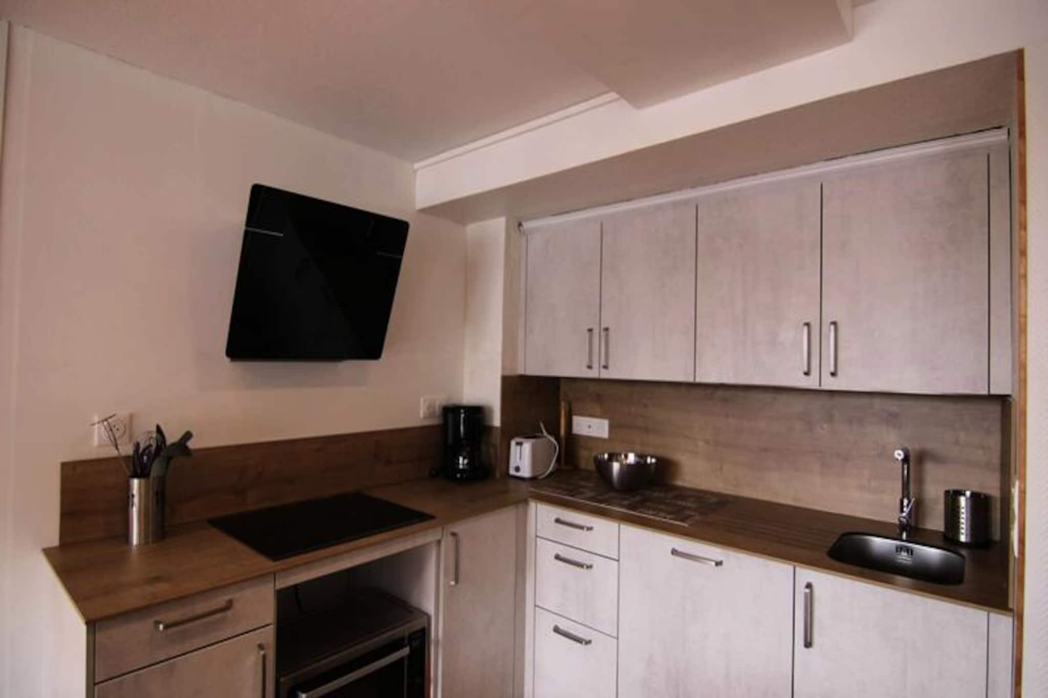 I hjertet af Albertvilles travle shoppingdistrikt tilbyder denne charmerende 2-værelses lejlighed et hyggeligt tilflugtssted for rejsende, der søger bekvemmelighed og komfort. Ejendommen ligger i den hævede stueetage i en beboelsesejendom og kan prale af en sydvendt balkon, hvor du kan slappe af og nyde den alpine atmosfære. Mens de pulserende omgivelser byder på bekvemmeligheden ved nærliggende butikker og bagerier, bør gæsterne være opmærksomme på muligheden for støj sent om aftenen på grund af dens centrale beliggenhed. \n\nLejligheden er omhyggeligt designet til at rumme op til seks gæster. Den har et fuldt udstyret køkken, der er ideelt til at tilberede måltider efter en dag med udforskning, en stue med en komfortabel dobbeltsovesofa, et soveværelse uden vinduer med en dobbeltseng og en hyggelig alkove med to køjesenge. Badeværelset har et toilet, og der er et ekstra separat toilet for ekstra bekvemmelighed. Familier med små børn bør være opmærksomme på, at den øverste køjeseng ikke er egnet til børn under seks år. \n\nAlbertvilles centrale beliggenhed gør det til en fremragende base for at udforske den omkringliggende region. Uanset om du er her for at nyde vintersport på de nærliggende skisportssteder eller for at opdage skønheden i de franske alper om sommeren, er alt inden for rækkevidde. Lejlighedens nærhed til butikker, bagerier og lokale faciliteter sikrer et problemfrit ophold. \n\nDenne ejendom, der er klassificeret som en 2-stjernet møbleret turistindkvartering, kombinerer praktisk anvendelighed med et strejf af alpin charme, hvilket gør den til et perfekt valg for familier eller små grupper, der ønsker at opleve det bedste af Albertville og dens omgivelser.