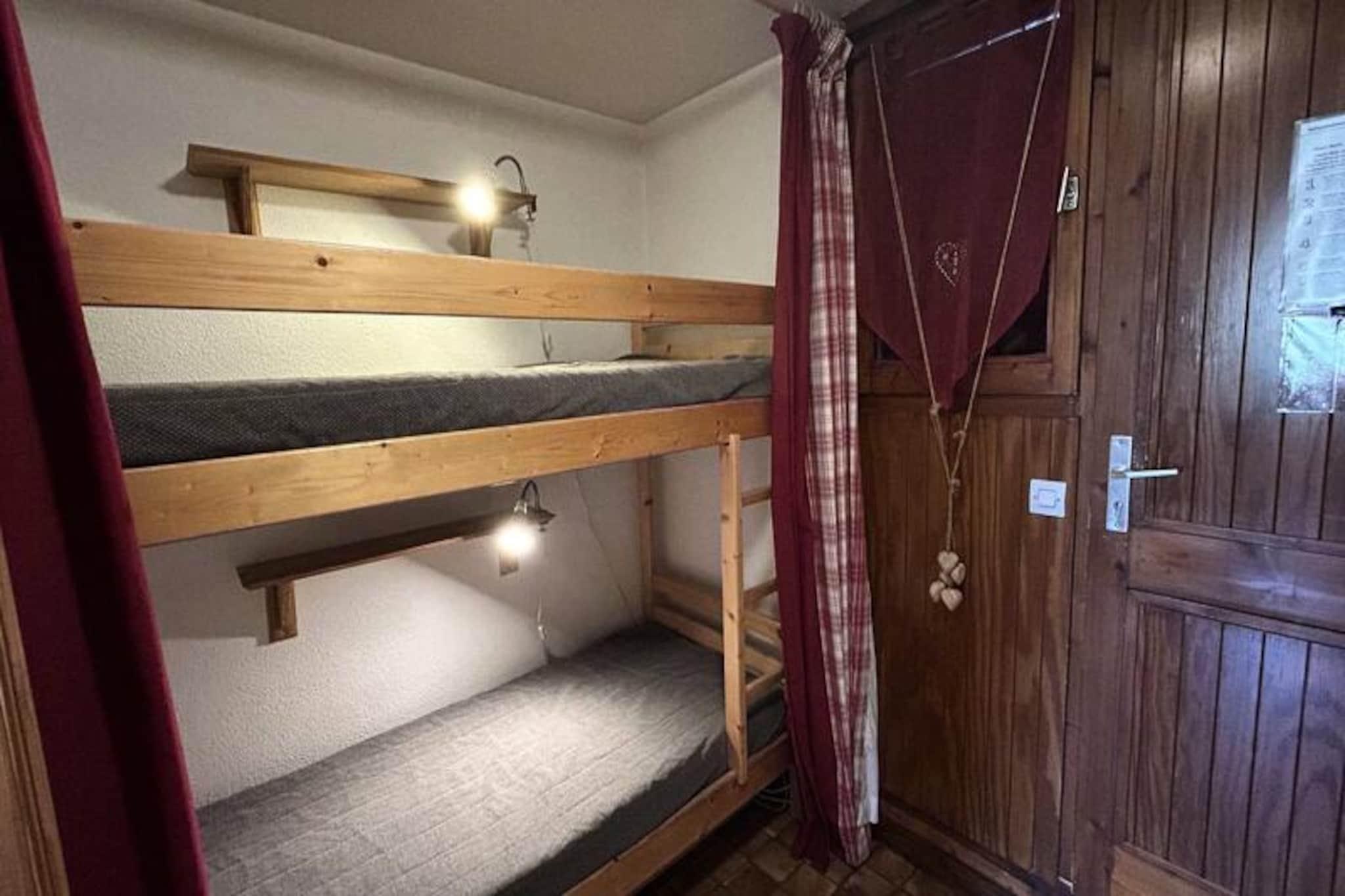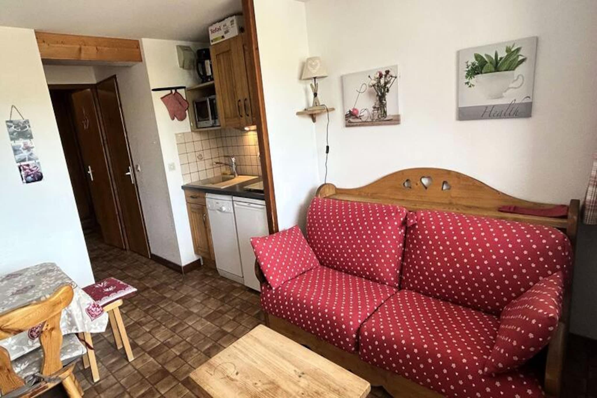 Denne charmerende studiolejlighed, der soler sig i de franske alpers gyldne glød, tilbyder et hyggeligt tilflugtssted med en betagende udsigt over Mont Bisanne. Beliggende på anden sal i en sydvendt bolig, inviterer den dig til at vågne op til bjergenes fredfyldte skønhed og nyde bekvemmeligheden ved at være tæt på feriestedets centrum og lokale butikker. Uanset om du besøger stedet for en vinterferie eller en sommerferie, er denne ejendom den perfekte base for dine alpine eventyr. \n\nLejligheden er omhyggeligt designet til at maksimere komfort og funktionalitet. Den har et fuldt udstyret tekøkken, ideelt til at tilberede solide måltider efter en dag med udforskning. Stuen har en komfortabel dobbeltsovesofa, mens alkoven tilbyder to køjesenge, hvilket gør den velegnet til familier eller små grupper (bemærk venligst, at den øverste køje ikke anbefales til børn under seks år). Et moderne brusebad og separat toilet bidrager til bekvemmeligheden, og den private balkon er perfekt til at nyde bjergluften og den fantastiske udsigt. \n\nBeliggende kun en kort gåtur fra feriestedets centrum har du nem adgang til butikker, restauranter og andre faciliteter. Om vinteren forvandles området til et snedækket eventyrland med skiløjper og lifter i nærheden, mens sommeren byder på muligheder for vandreture, cykling og udforskning af de frodige alpine landskaber. Boligens sydvendte beliggenhed sikrer masser af sollys og skaber en varm og indbydende atmosfære året rundt. \n\nUanset om du søger spændende udendørsaktiviteter eller et fredeligt tilflugtssted i naturen, tilbyder denne studiolejlighed et uforglemmeligt ophold i hjertet af de franske alper. Lad den majestætiske Mont Bisanne være baggrunden for din perfekte ferie.