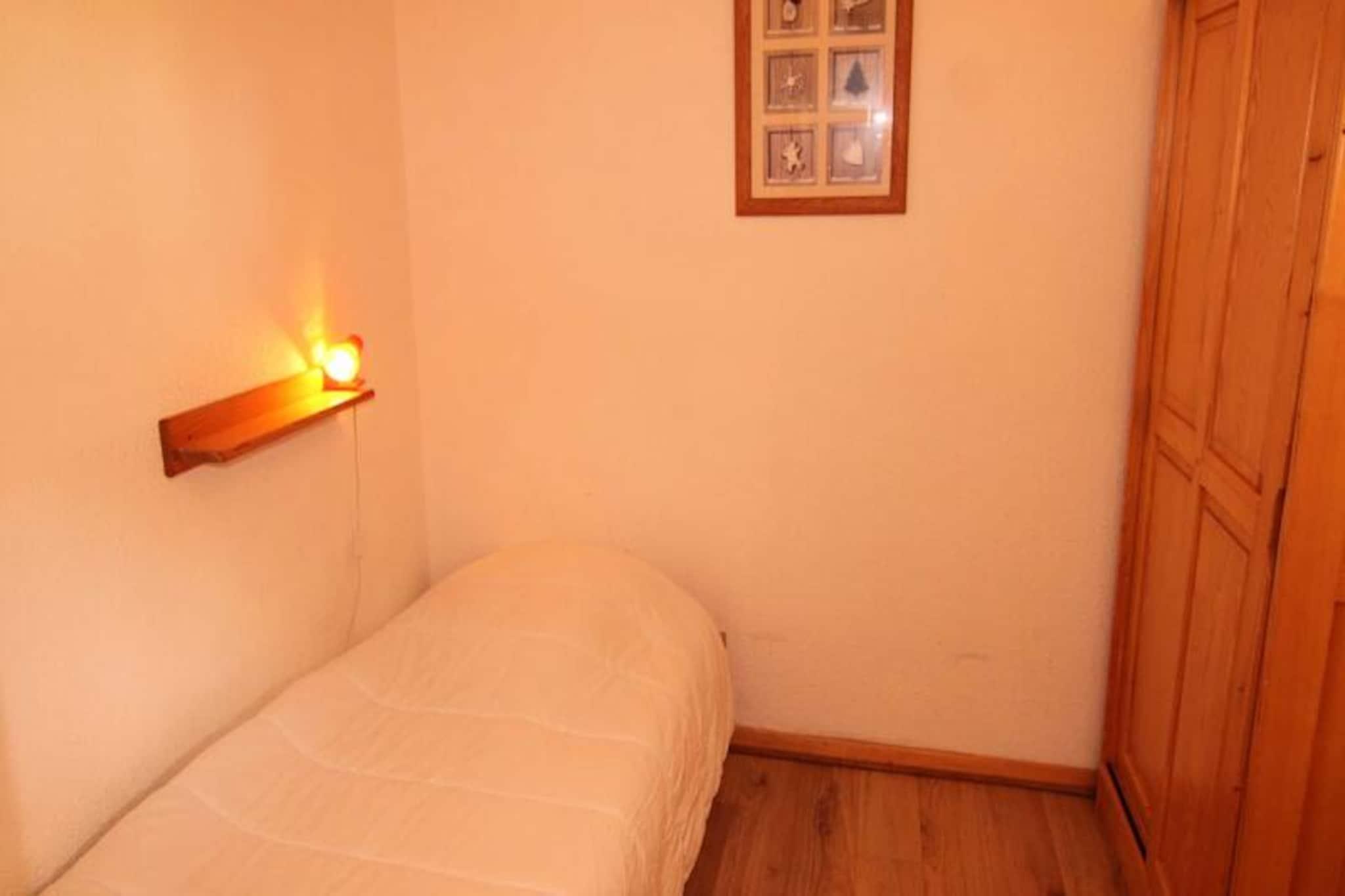 Denne charmerende studiolejlighed, der soler sig i de franske alpers varme, tilbyder et hyggeligt tilflugtssted til din bjergferie. Beliggende på pisterne og kun en kort afstand fra feriestedets centrum, tilbyder den den perfekte balance mellem bekvemmelighed og ro. Fra den sydvendte balkon kan du nyde den betagende udsigt over Mont Bisanne og den majestætiske Beaufortain-bjergkæde, et panorama, der vil inspirere dig ved hvert blik. Uanset om du er her for vintersport eller sommereventyr, placerer denne bolig dig i hjertet af alpin skønhed. \n\nLejligheden ligger på første sal i boligen, tilgængelig direkte fra indgangen, og har en gennemtænkt planløsning til at rumme op til seks gæster. Opholdsstuen inkluderer en komfortabel dobbeltsovesofa, mens to sovealkover giver yderligere muligheder med en enkeltseng, en udtræksseng og et sæt køjesenge (bemærk: den øverste køje er ikke egnet til børn under 6 år). Et fuldt udstyret tekøkken inviterer dig til at tilberede lækre måltider, og det separate badeværelse og toilet sikrer privatliv og bekvemmelighed for alle. Denne ejendom, der er vurderet som en 2-stjernet møbleret turistindkvartering, kombinerer enkelhed med alle de nødvendige faciliteter til et afslappende ophold. \n\nResidensens førsteklasses beliggenhed giver dig mulighed for at træde direkte ud på pisterne, hvilket gør det til et ideelt valg for skientusiaster. I de varmere måneder forvandles det omkringliggende område til et paradis for vandrere og naturelskere med stier, der snor sig gennem frodige alpine enge og tilbyder fantastiske udsigter. Det nærliggende feriestedscenter giver adgang til butikker, restauranter og underholdning, hvilket sikrer, at alt hvad du behøver er inden for rækkevidde. \n\nUanset om du søger spændende udendørsaktiviteter eller en fredelig flugt omgivet af naturen, er denne studiolejlighed din port til uforglemmelige øjeblikke i de franske alper. Lad den fredfyldte bjergudsigt og charmen i dette hyggelige tilflugtssted skabe minder, der vil vare hele livet.