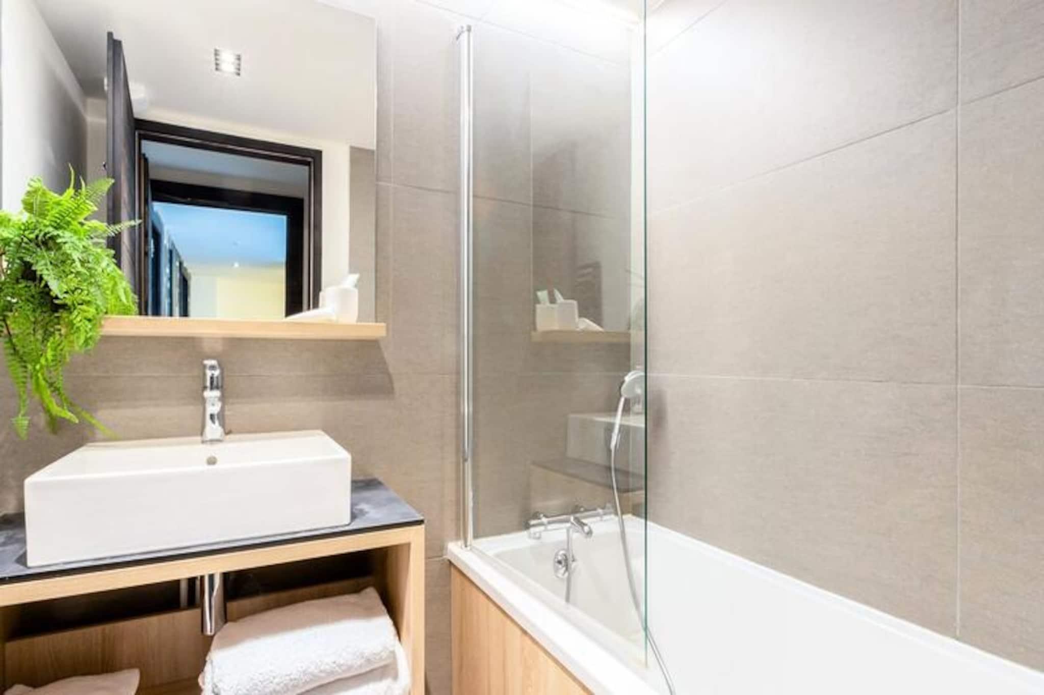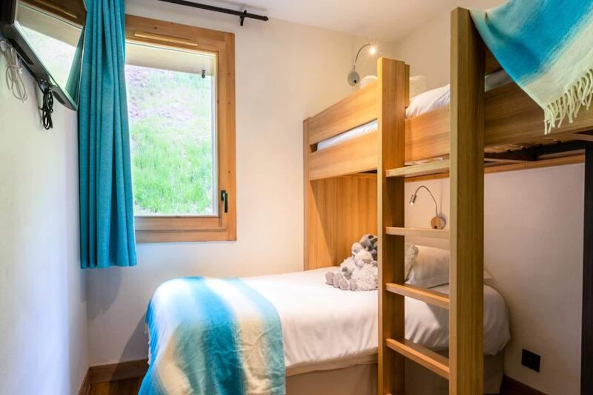 I de fredfyldte højder i Haut Lieux inviterer denne luksuriøse 4-stjernede residens dig til at fordybe dig i den betagende skønhed i Beaufortain-massivet og Mont Bisanne. Kun 500 meter fra feriestedets centrum tilbyder denne sydvestvendte lejlighed et roligt tilflugtssted med panoramaudsigt og direkte adgang til Chenavelles blå skipiste, der ligger kun 50 meter væk. Uanset om du er her for vintersport eller sommerens alpine eventyr, lover denne ejendom et uforglemmeligt ophold i hjertet af de franske alper. Elegant designet med smagfuld indretning kombinerer lejligheden moderne komfort med alpin charme. Den rummelige planløsning inkluderer et fuldt udstyret køkken, der åbner ud til en hyggelig stue med en sovesofa og en ekstra seng. Tre soveområder giver fleksibel indkvartering: to med to enkeltsenge og et med køjesenge, alle med rigelig opbevaringsplads. Det ensuite brusebad, det ekstra badeværelse med badekar og to separate toiletter sikrer bekvemmelighed for familier eller grupper. Træd ud på den vestvendte terrasse eller sydvendte balkon for at nyde solen og bjergluften. Gæsterne har eksklusiv adgang til boligens wellness-område med pool med massagedyser, hammam, sauna og nordisk bad. Efter en dag på pisterne eller med at udforske stierne kan du slappe af i denne fredfyldte spa-oase. I nærheden finder du et gratis shuttlebusstoppested, dagligvare- og sportsbutikker samt den berømte restaurant