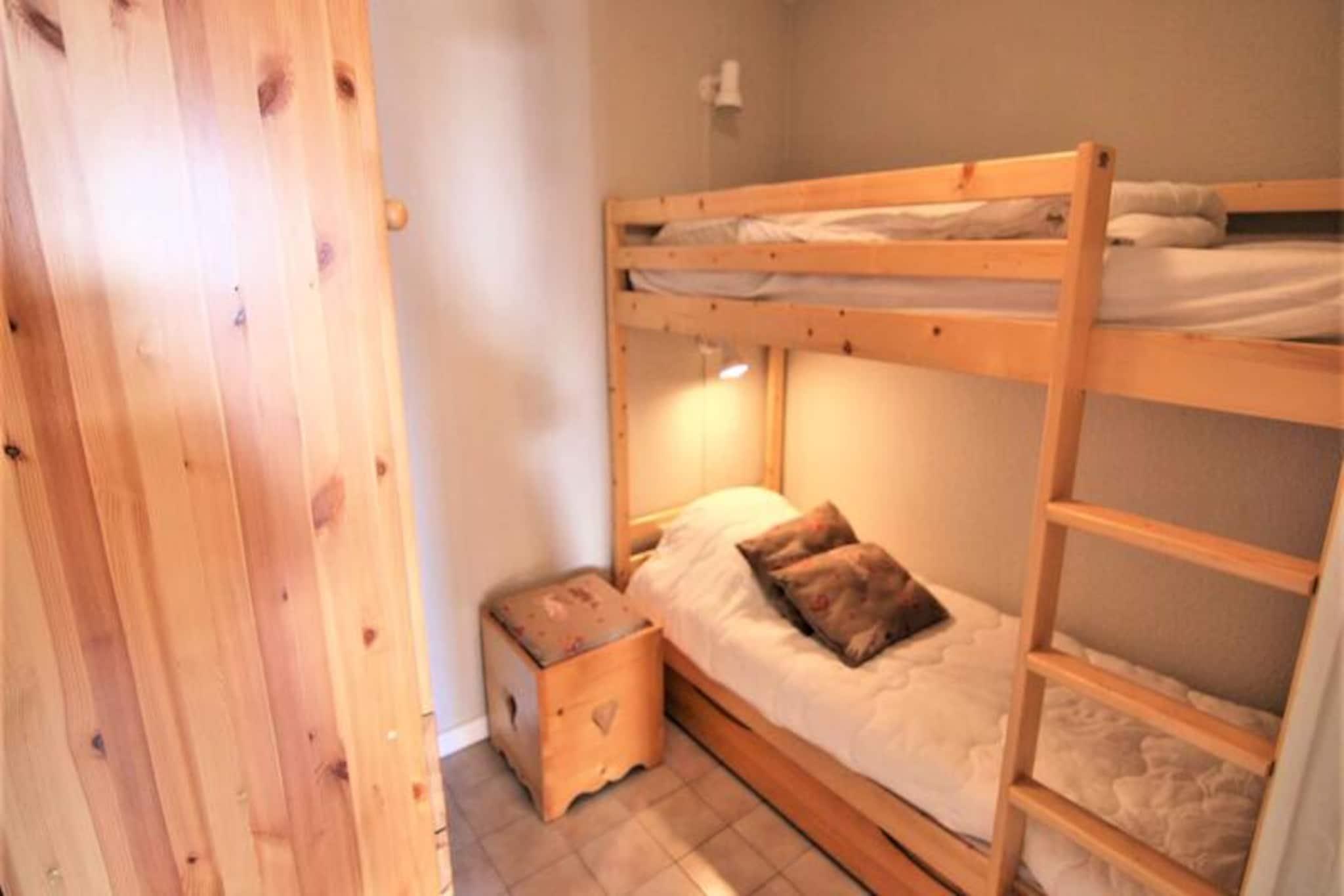 I hjertet af den pulserende, nedre del af skisportsstedet tilbyder denne charmerende 4-værelses lejlighed et hyggeligt alpint tilflugtssted med nem adgang til Carrets-stoleliftene og ESF-skiskolens mødesteder. Her er du omgivet af pisterne med livlig energi, med sportsbutikker og et minimarked kun få skridt væk, hvilket sikrer, at alle fornødenheder er inden for rækkevidde. De sydvendte altaner inviterer dig til at nyde solen og beundre den fredfyldte udsigt over bjergene, hvilket skaber en perfekt baggrund for din ferie. Uanset om du søger spændende skieventyr eller rolige øjeblikke, henvender denne bolig sig til ethvert humør. \n\nIndenfor er lejligheden omhyggeligt designet til at rumme op til otte gæster, hvilket gør den ideel til familier eller vennegrupper. Stuen har en indbydende opholdsstue og et åbent tekøkken udstyret til at tilberede solide måltider efter en dag på pisterne. Sovepladserne omfatter et soveværelse med en dobbeltseng, en hyggelig kahyt med køjesenge (bemærk: den øverste køjeseng er ikke egnet til børn under seks år) og en mezzanin med en dobbelt sovesofa. Ovenpå sikrer et andet soveværelse med en dobbeltseng privatliv og komfort for alle. Med to badeværelser, et brusebad og separate toiletter er bekvemmelighed garanteret. \n\nUd over lejligheden tilbyder resortet et væld af aktiviteter og faciliteter. Fra skiløb og snowboarding til at udforske de maleriske stier om sommeren er der noget for enhver smag. Den nærliggende ESF-skiskole er perfekt for begyndere, mens erfarne skiløbere vil sætte pris på nærheden til Carrets-stoleliftene. Efter en dag med eventyr kan du slappe af på de lokale restauranter eller kigge i sportsbutikkerne for udstyr og souvenirs. \n\nDenne 2-stjernede turistindkvartering kombinerer praktisk anvendelighed med charme og tilbyder en privat garage for ekstra bekvemmelighed. Uanset om du besøger stedet for vintersport eller sommervandreture, er denne lejlighed den perfekte base for at skabe uforglemmelige minder i de franske alper.