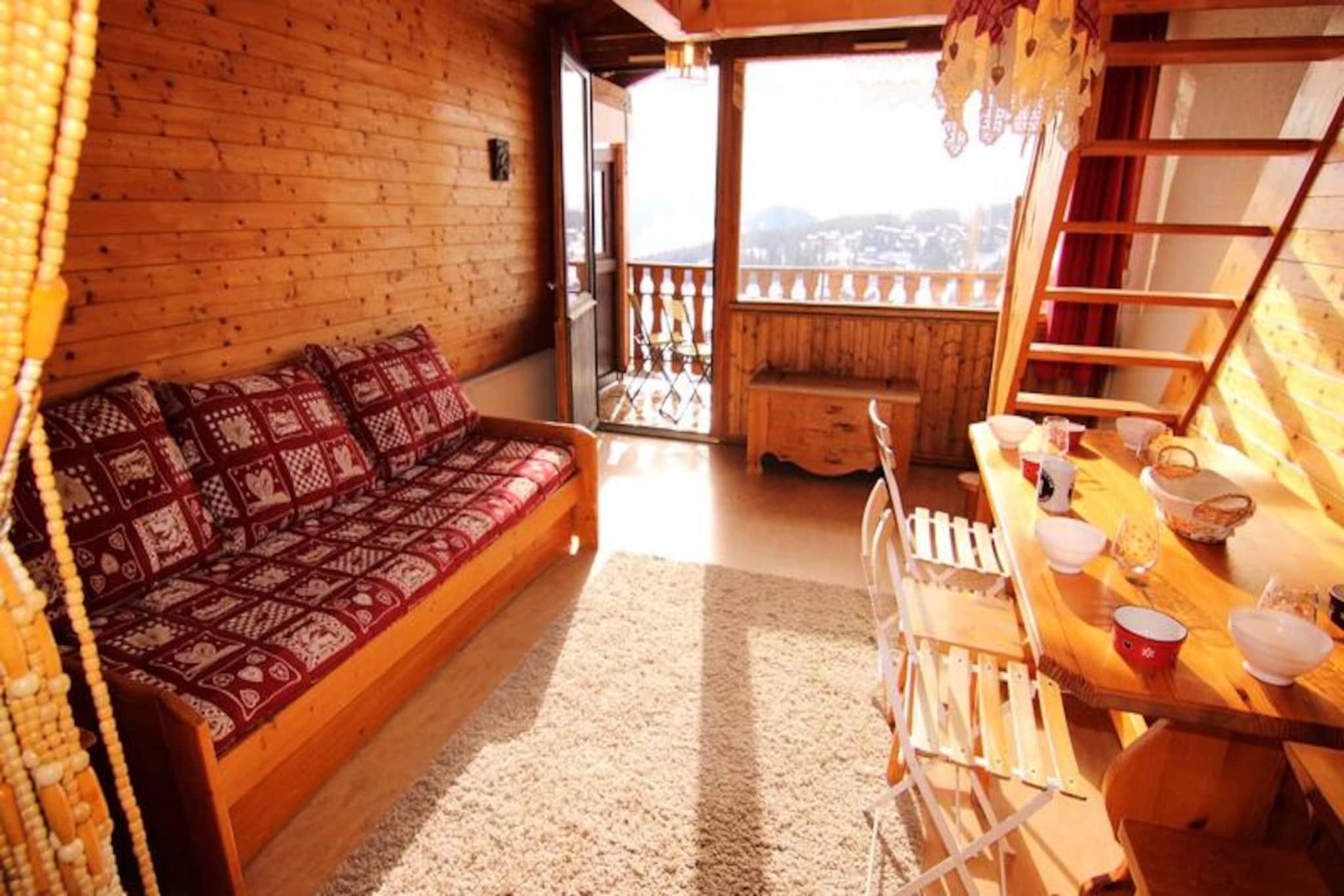 Højt over det charmerende feriested tilbyder denne hyggelige alpine lejlighed et idyllisk tilflugtssted med direkte adgang til Légerette-skiløjpen, hvor du ubesværet kan glide ned til Léger- og Carrets-liftene. Fra den sydvendte balkon kan du nyde det betagende panorama over Mont Bisanne og den majestætiske Beaufortain-bjergkæde, en udsigt der forvandler sig med årstiderne og byder på snedækket pragt om vinteren og frodig grøn om sommeren. Dette er et sted, hvor bjergro møder eventyr lige uden for døren. \n\nIndenfor udstråler lejligheden varme og praktisk anvendelighed. Den ligger på anden sal i boligen og har et skrånende loft, der bidrager til dens alpine charme. Opholdsstuen omfatter en komfortabel sovesofa, en hyggelig alkove med to enkeltsenge og et separat soveværelse med to enkeltsenge, hvilket gør den perfekt til familier eller små grupper. Det fuldt udstyrede tekøkken inviterer dig til at tilberede solide måltider efter en dag på pisterne, mens badeværelset og det separate toilet sikrer bekvemmelighed for alle gæster. Bemærk venligst, at alkovesengene ikke er egnet til børn under 6 år, og lejligheden er ikke tilgængelig for kørestolsbrugere. \n\nResidensens beliggenhed er en drøm for skientusiaster, med pisterne kun en kort gåtur væk. Ud over skiløb byder området på et væld af aktiviteter, lige fra vandrestier, der snor sig gennem Beaufortain-bjergkæden, til maleriske landsbyer, hvor du kan nyde lokale delikatesser. Uanset om du er her for spændingen ved pisterne eller roen i bjergene, er denne lejlighed en perfekt base for dine alpine eventyr. \n\nMed sin fantastiske udsigt, praktiske faciliteter og uovertrufne beliggenhed inviterer denne bolig dig til at skabe uforglemmelige minder i hjertet af de franske alper.