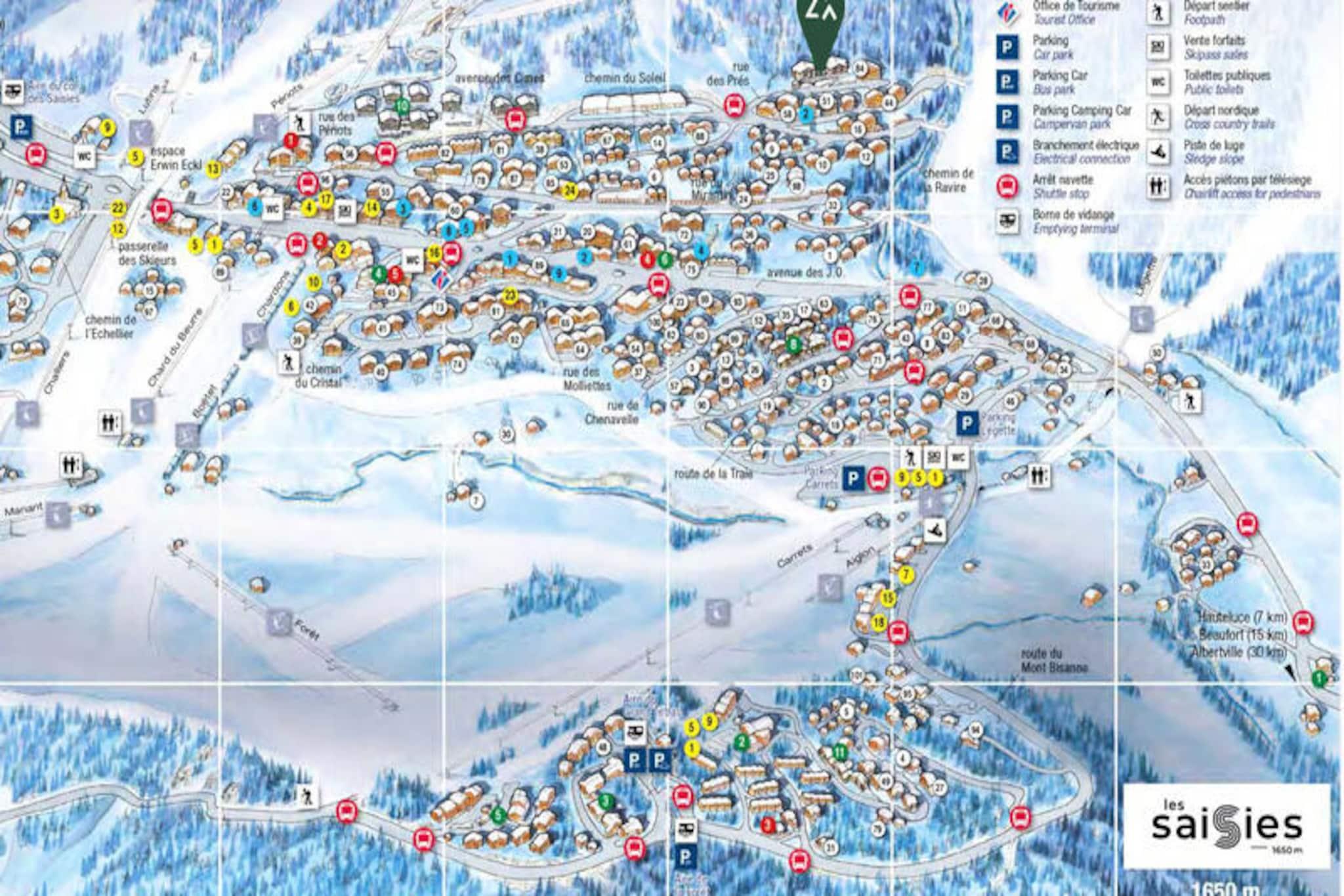 Denne rummelige lejlighed, ideel til op til 6 g?ster, tilbyder et komfortabelt og moderne ophold. Det har en stue med en stor sydvestvendt balkon, perfekt til at nyde panoramaudsigten over de omkringliggende bjerge. Lejligheden indeholder et fuldt udstyret k?kken, en spiseplads og tre sovev?relser: et med k?jesenge, et andet med enkeltsenge og et en-suite sovev?relse med eget badev?relse. Yderligere faciliteter omfatter opvarmede skiskabe og en overd?kket parkeringsplads. Bem?rk venligst, at lejligheden ikke er tilg?ngelig for g?ster med nedsat mobilitet, og k?ledyr er ikke tilladt. Denne ejendom ligger kun 50 meter fra Chenavelle-bakken og giver direkte adgang til skil?b og udend?rsaktiviteter. G?sterne kan nyde det smukke feriested Les Saisies og dets maleriske omgivelser. Lejligheden byder p? et roligt milj?, ideelt til at slappe af efter en dag med eventyr. Resortet har ogs? en r?kke caf?er, restauranter og butikker, hvilket sikrer bekvemmelighed og nydelse under dit ophold. Lejligheden er fuldt udstyret til et ophold med egen forplejning med et moderne k?kken, badev?relse med bruser og separat toilet. Senget?j og h?ndkl?der er inkluderet, og senge er redt ved ankomst. Wellness-omr?det, som har en pool med massagedyser, en sauna, et hammam og et nordisk bad, giver den perfekte afslapning efter en dag udend?rs. Andre tjenester omfatter slutreng?ring og badev?relsesprodukter. Ladestationer til elbiler er ogs? tilg?ngelige p? stedet.